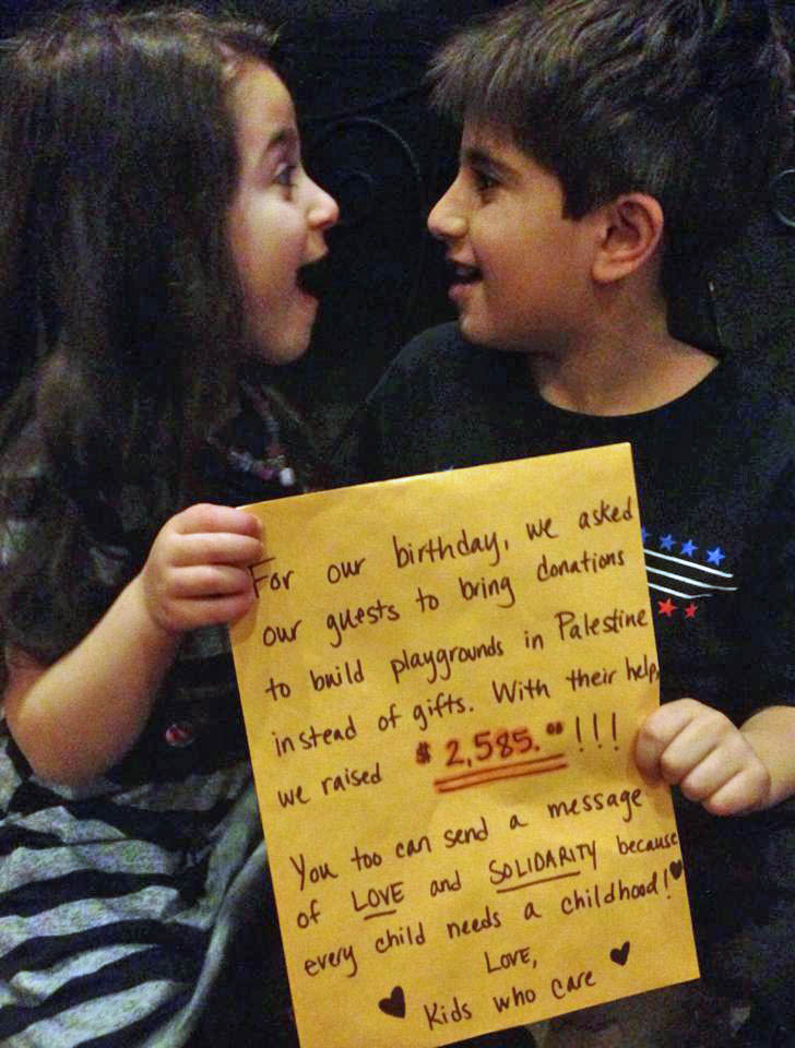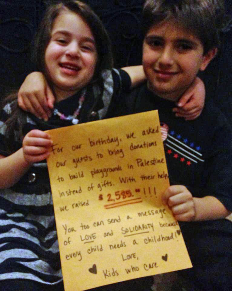 Meet the youngest members of our Playgrounds for Palestine fundraising team! Adam and Milan generously donated their birthday money – over $2,000!!!- to PfP so that Palestinian children living under military occupation could regain their right to play! PfP is proud to be honoring them at our March 29th Gala! Thank you Adam and Milan for your thoughtful gift!