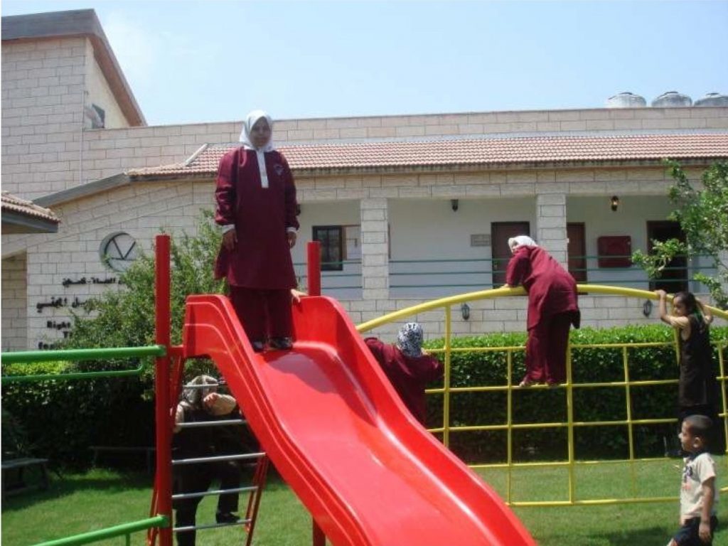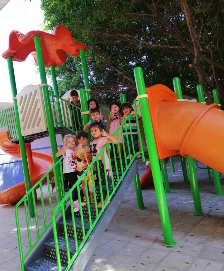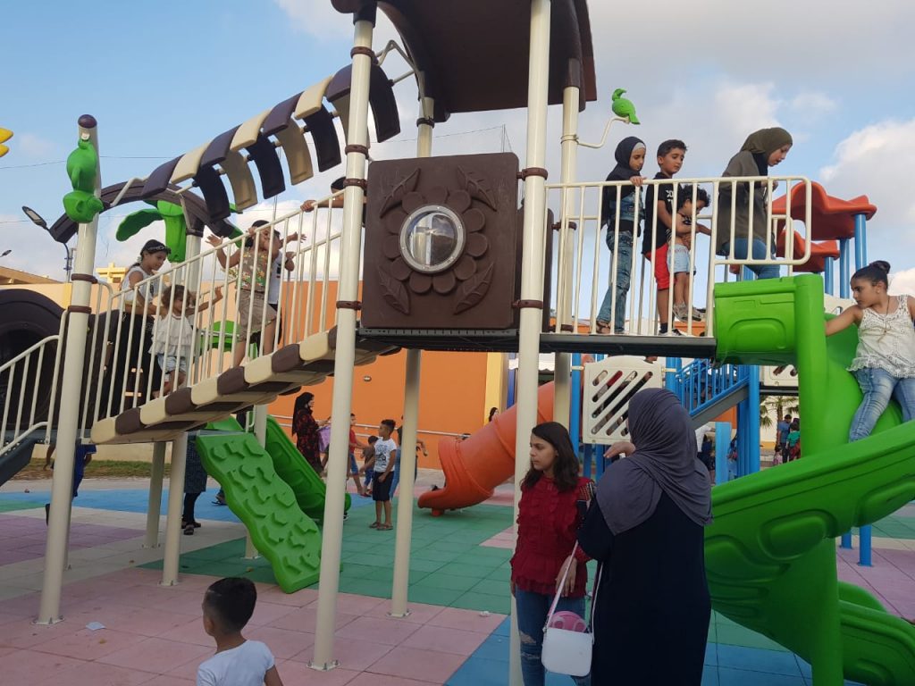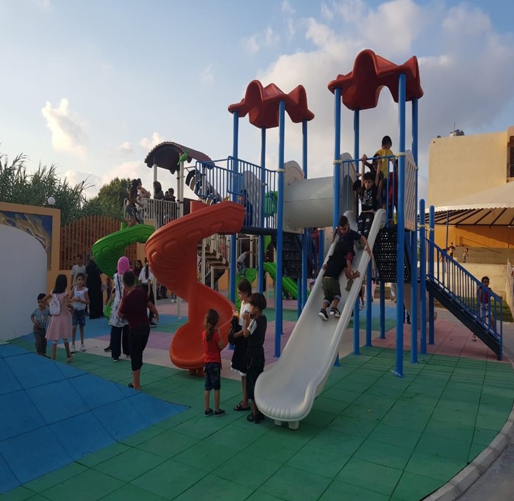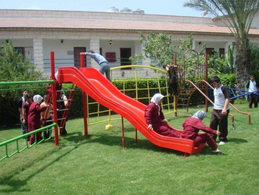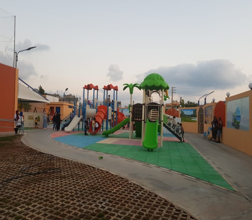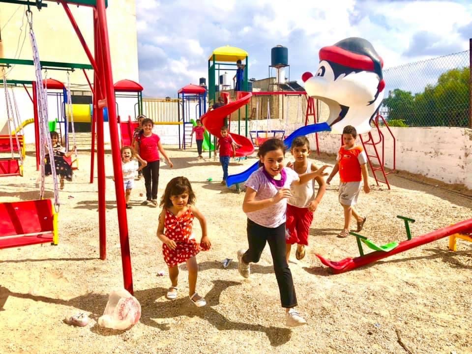 This playground was built in partnership with UNRWA at the Baraaem Kindergarten in the Mia Mieh refugee camp is located south of the city of Saida. The camp was established in 1954 and extends over an area of 54,000 sq m.  The camp survived a series of major events in 1982, when the Israeli invasion destroyed many of the camp’s shelters. These shelters were not rebuilt and alternative shelters were built instead along the southern border of the camp.