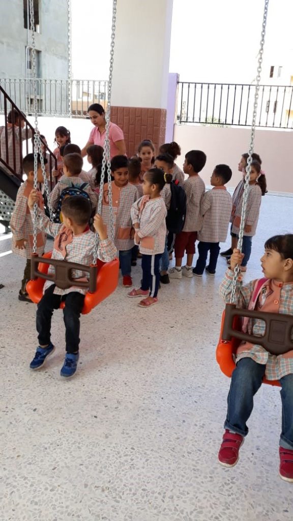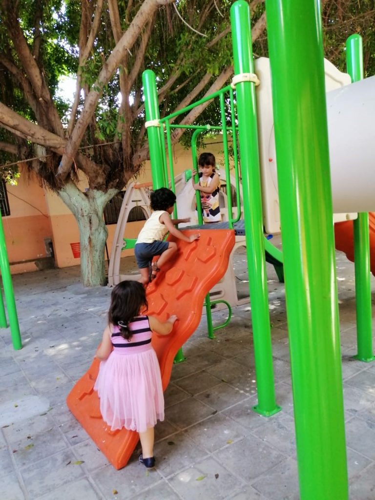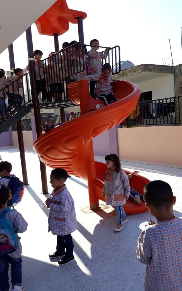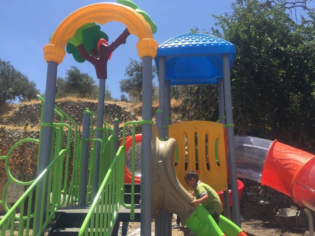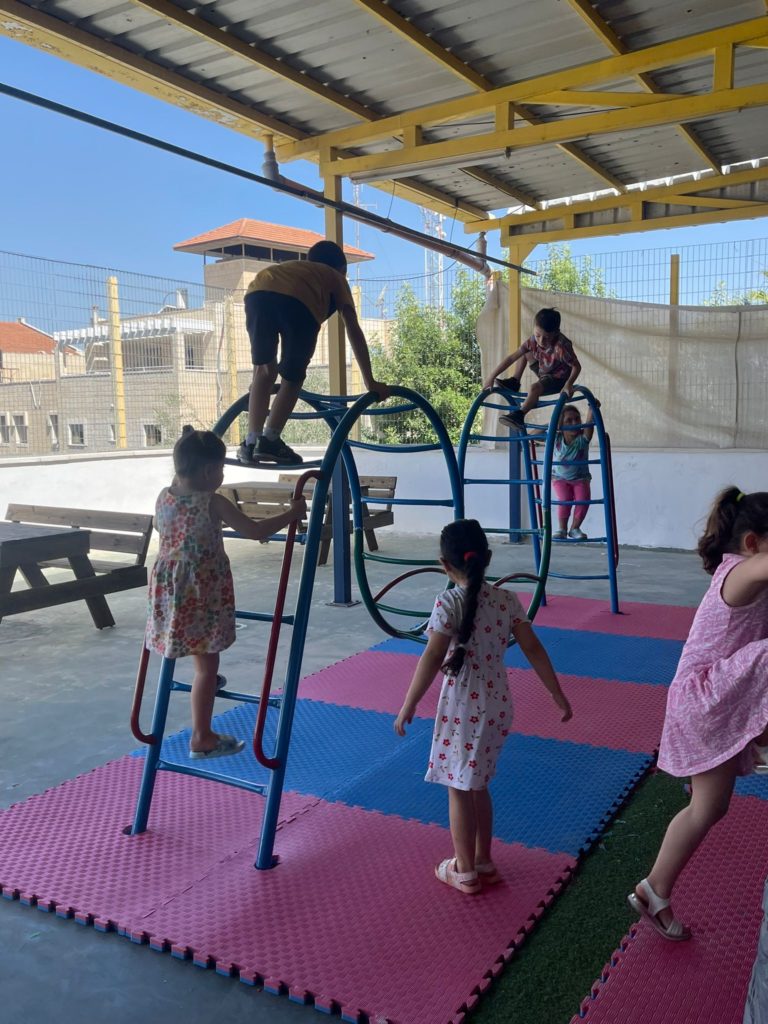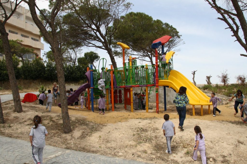 This playground was built in partnership with UNRWA at the Baraaem Kindergarten in the Mia Mieh refugee camp is located south of the city of Saida. The camp was established in 1954 and extends over an area of 54,000 sq m.  The camp survived a series of major events in 1982, when the Israeli invasion destroyed many of the camp’s shelters. These shelters were not rebuilt and alternative shelters were built instead along the southern border of the camp.