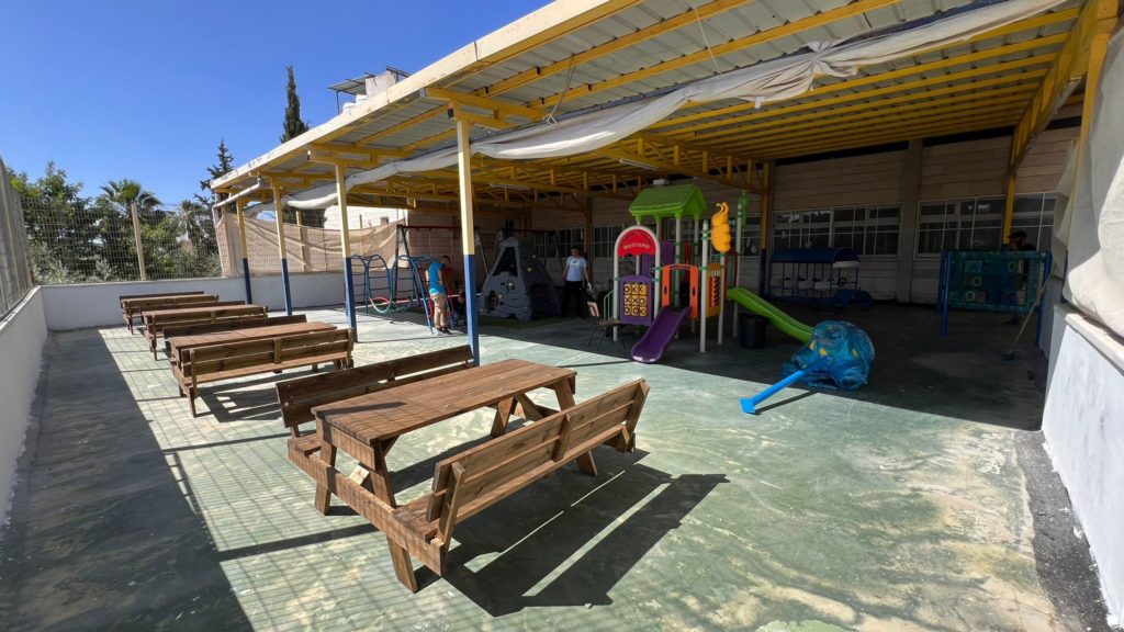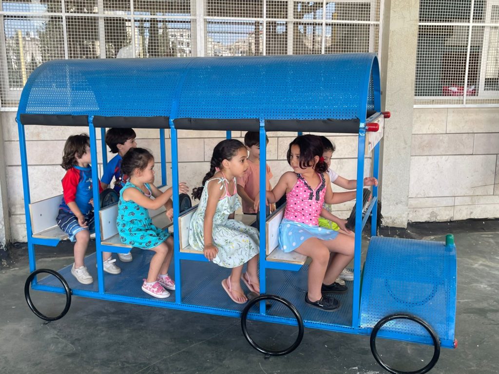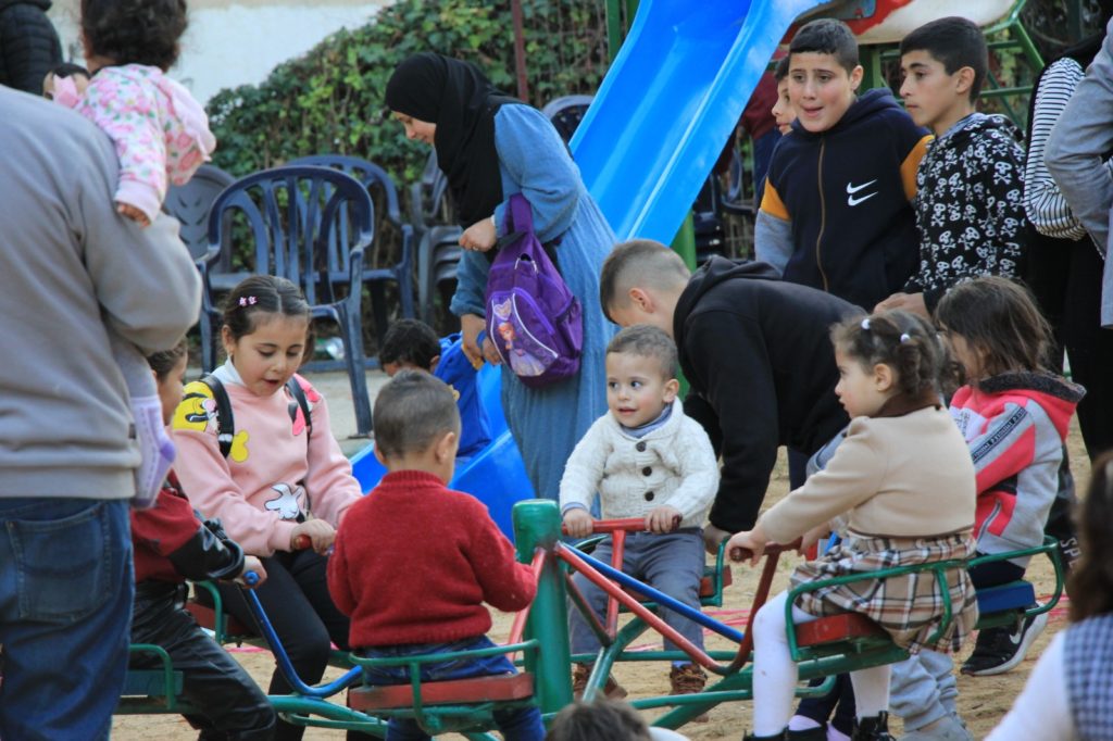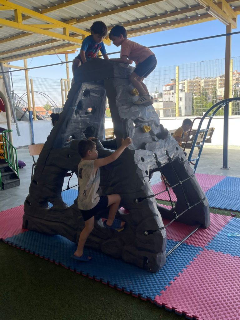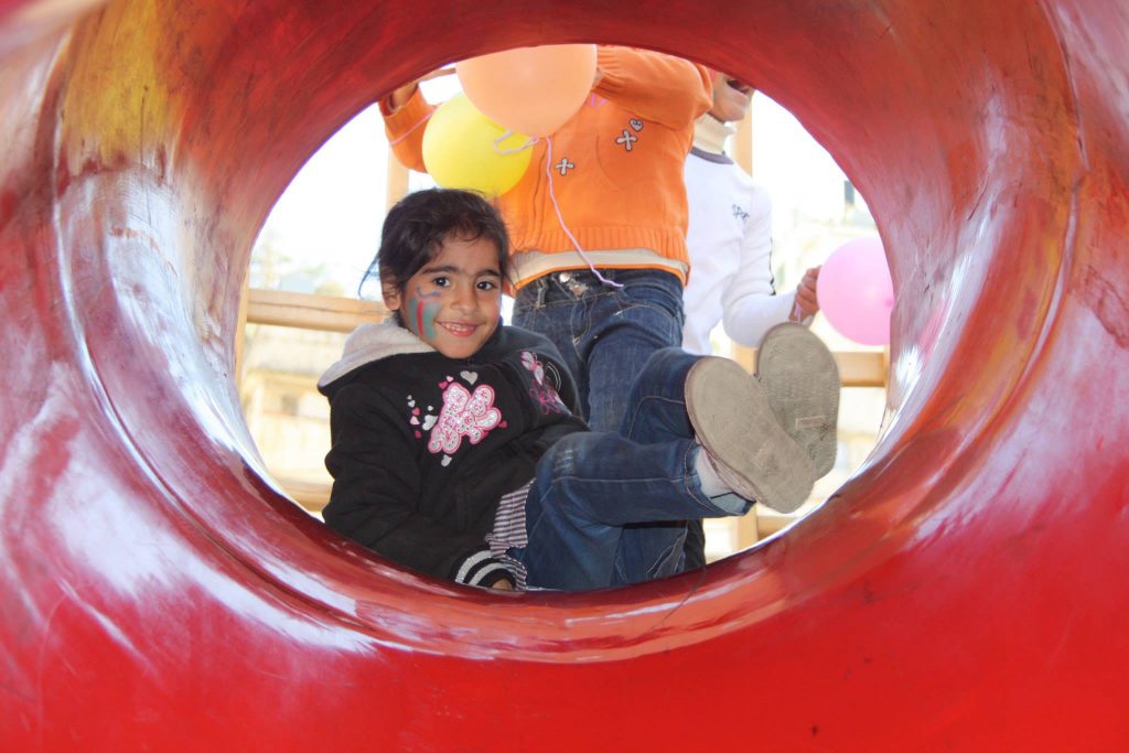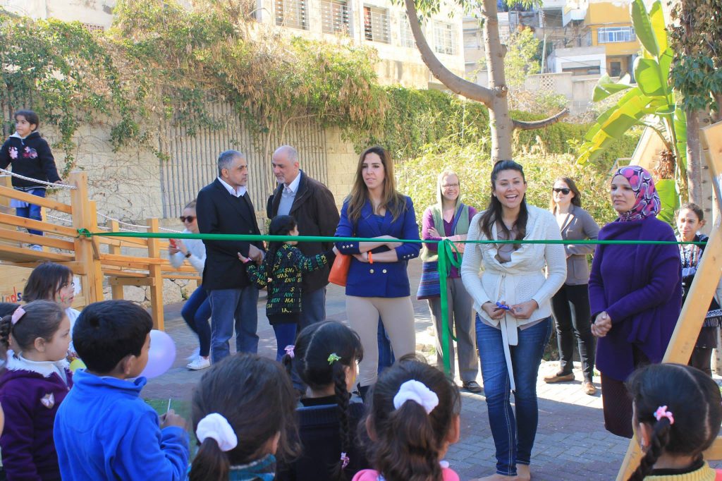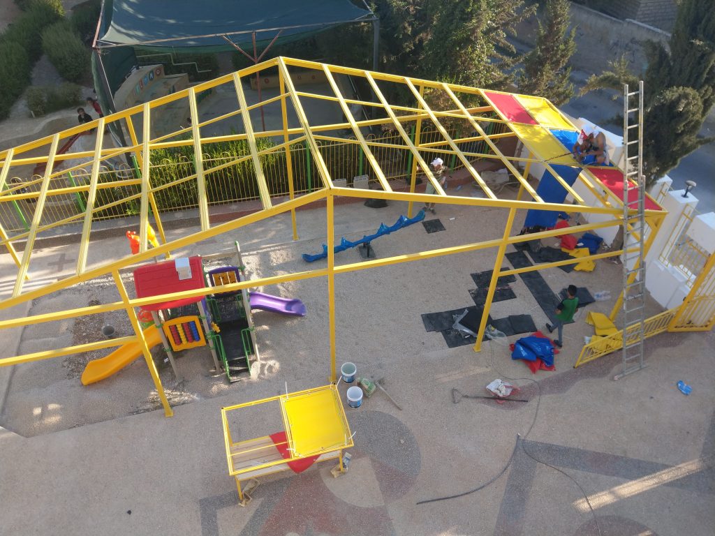 This playground was built in partnership with UNRWA at the Baraaem Kindergarten in the Mia Mieh refugee camp is located south of the city of Saida. The camp was established in 1954 and extends over an area of 54,000 sq m.  The camp survived a series of major events in 1982, when the Israeli invasion destroyed many of the camp’s shelters. These shelters were not rebuilt and alternative shelters were built instead along the southern border of the camp.
