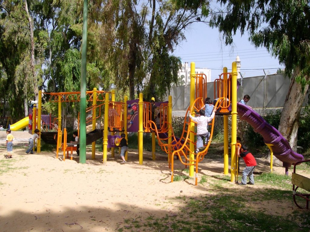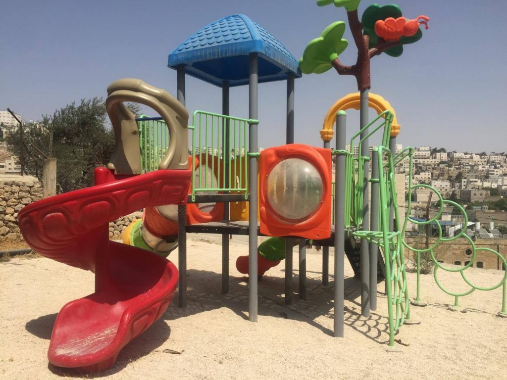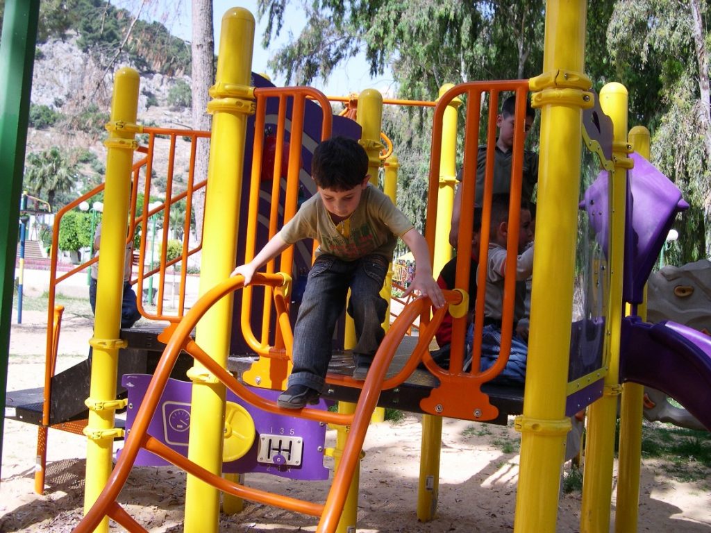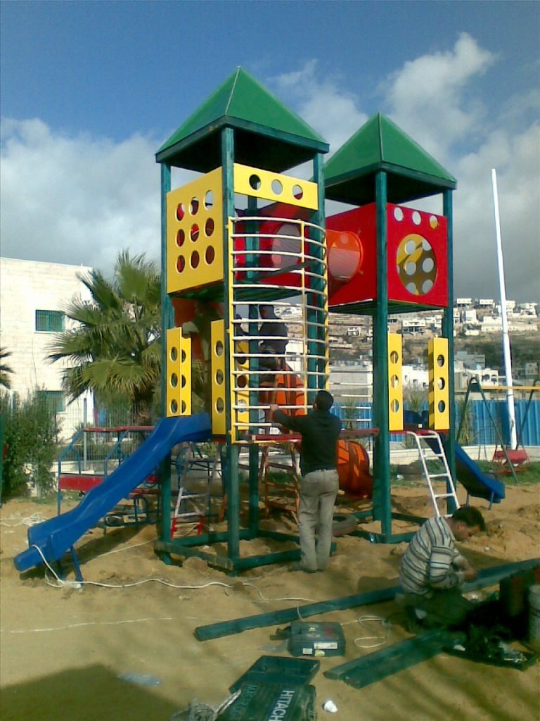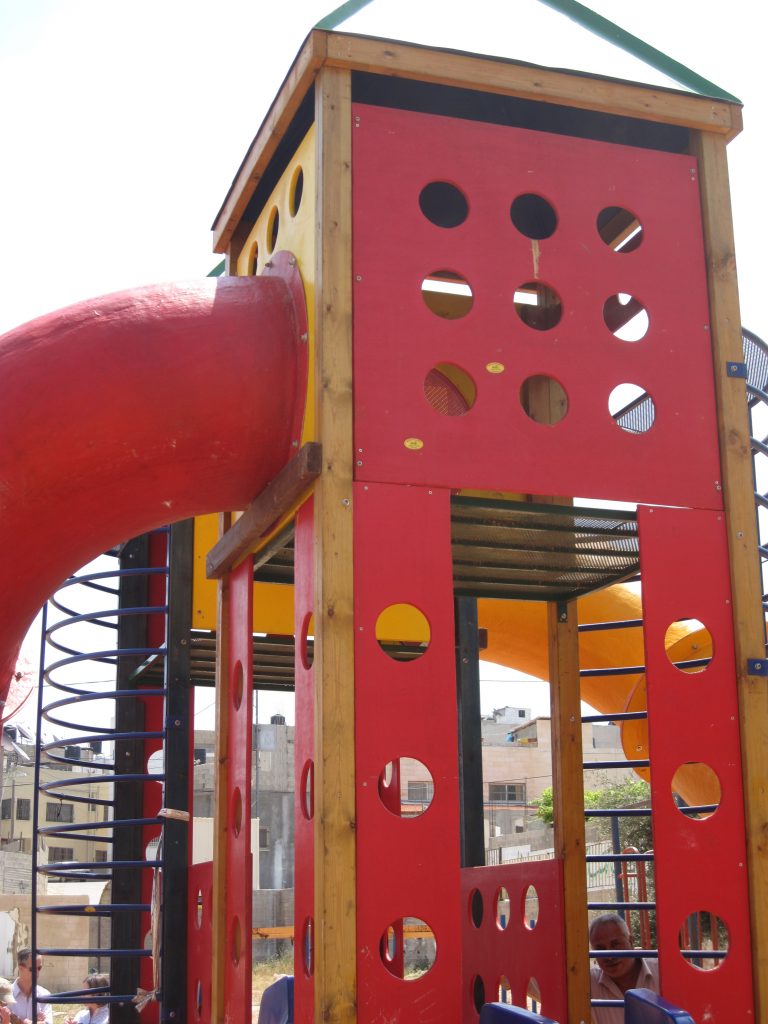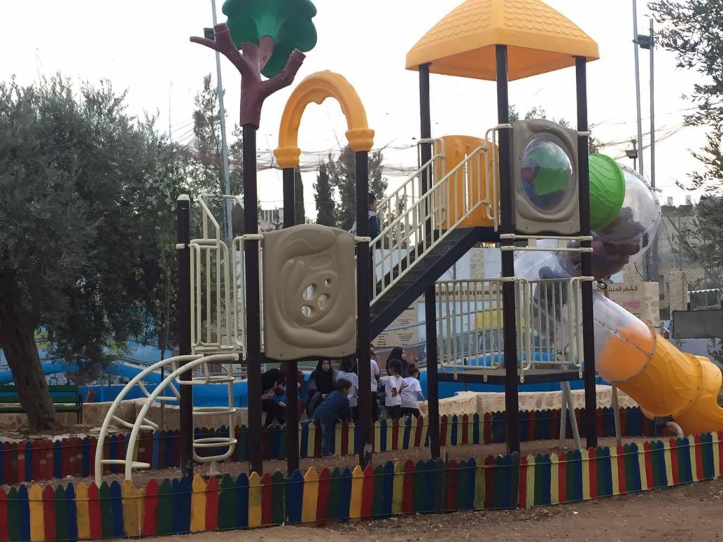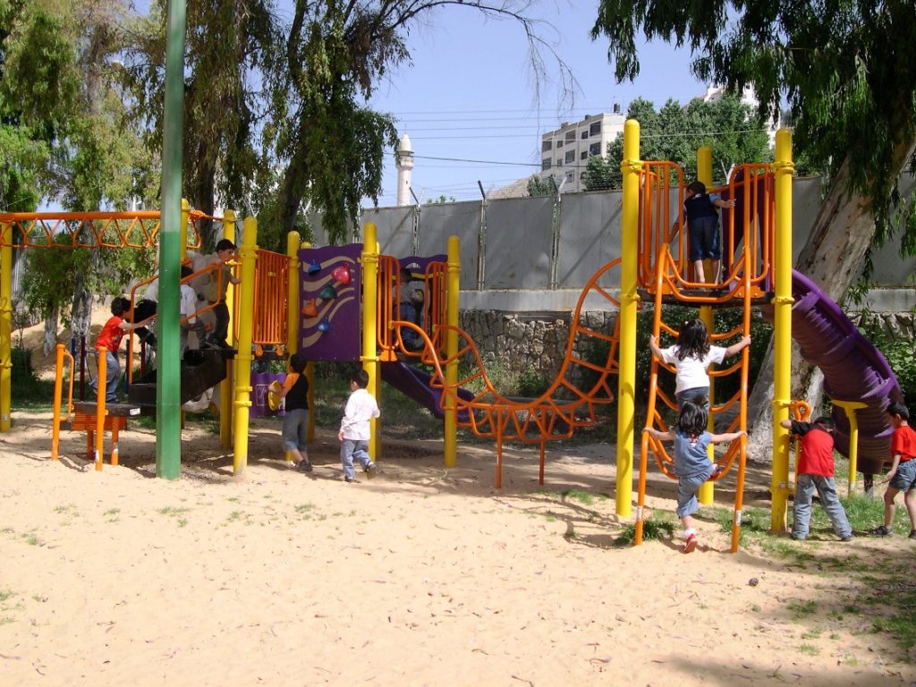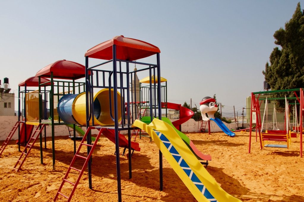 Playgrounds for Palestine’s Nablus playground is located in the King Faisal park, a public park that is part of the Nablus Happiness Childhood Center, which serves thousands of children in this Biblical Palestinian city, home to over 126,000 residents, several institutions of higher learning, and the famous Palestinian pastry, Knafe, as well as Palestinian olive oil soap.