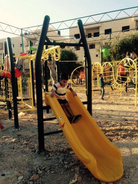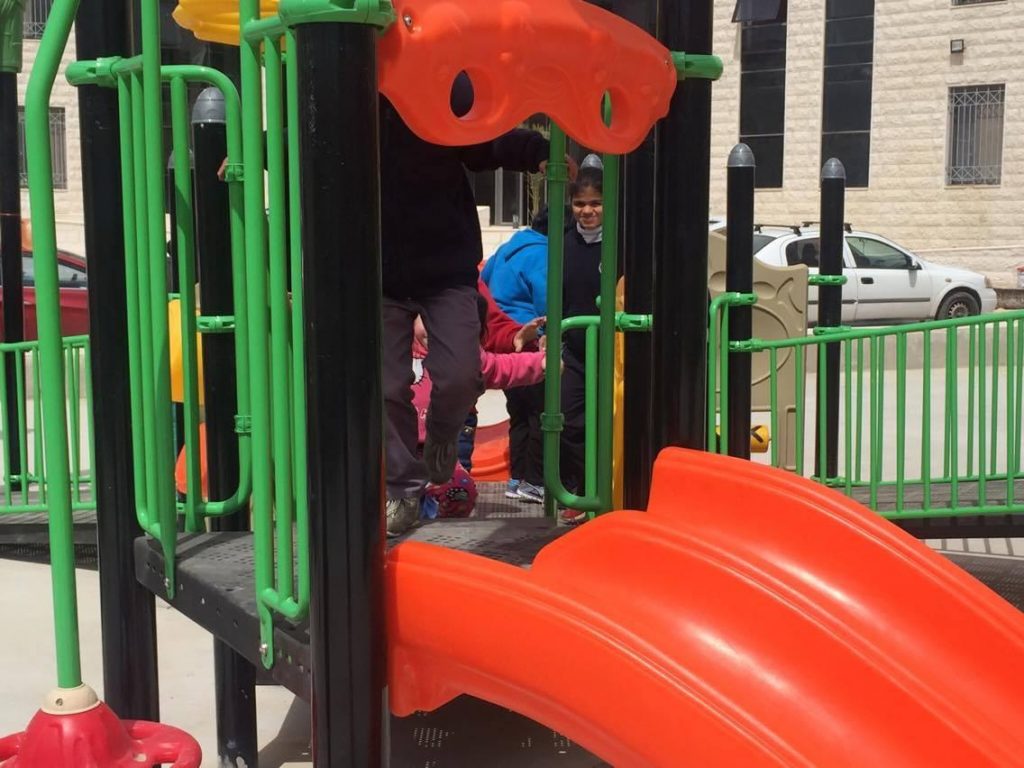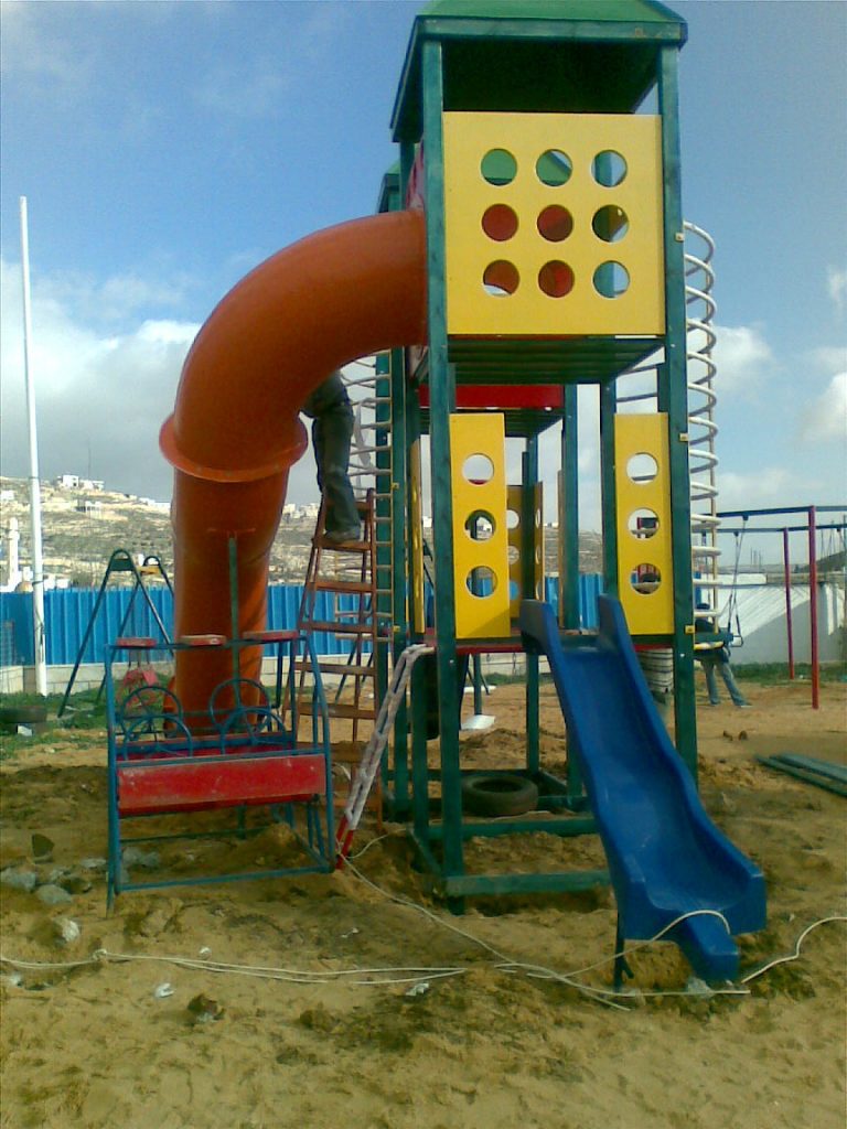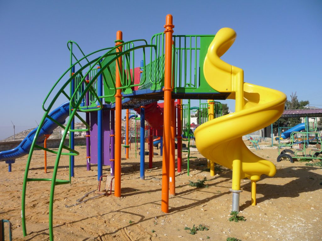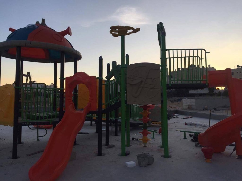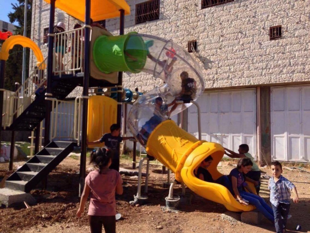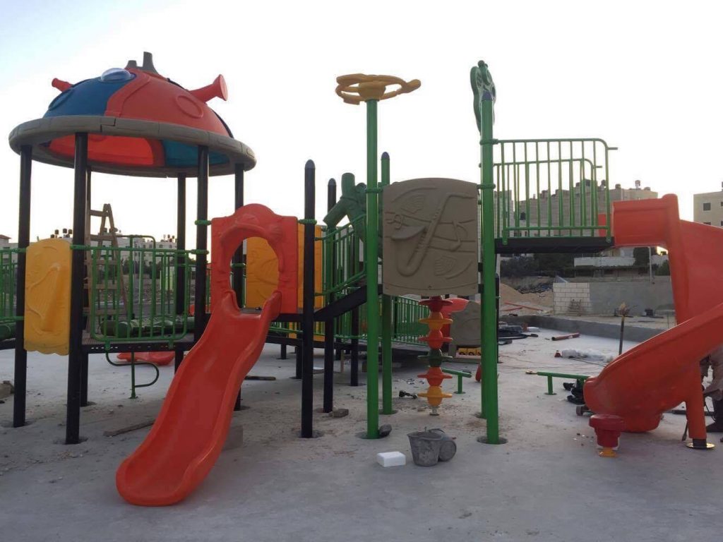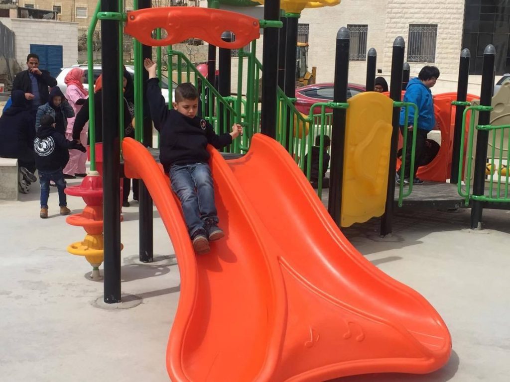 Playgrounds for Palestine’s Nablus playground is located in the King Faisal park, a public park that is part of the Nablus Happiness Childhood Center, which serves thousands of children in this Biblical Palestinian city, home to over 126,000 residents, several institutions of higher learning, and the famous Palestinian pastry, Knafe, as well as Palestinian olive oil soap.