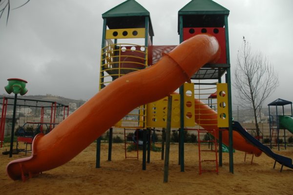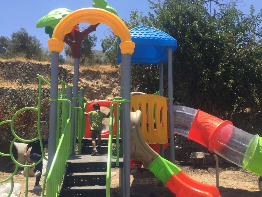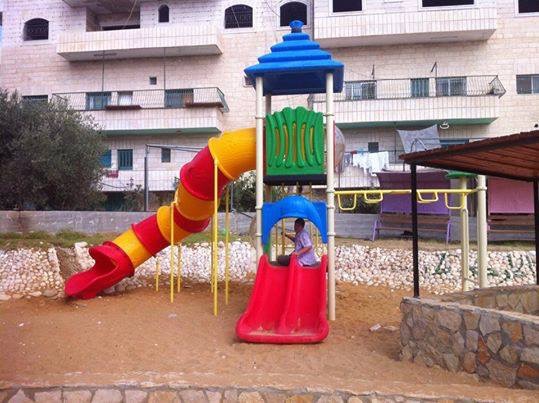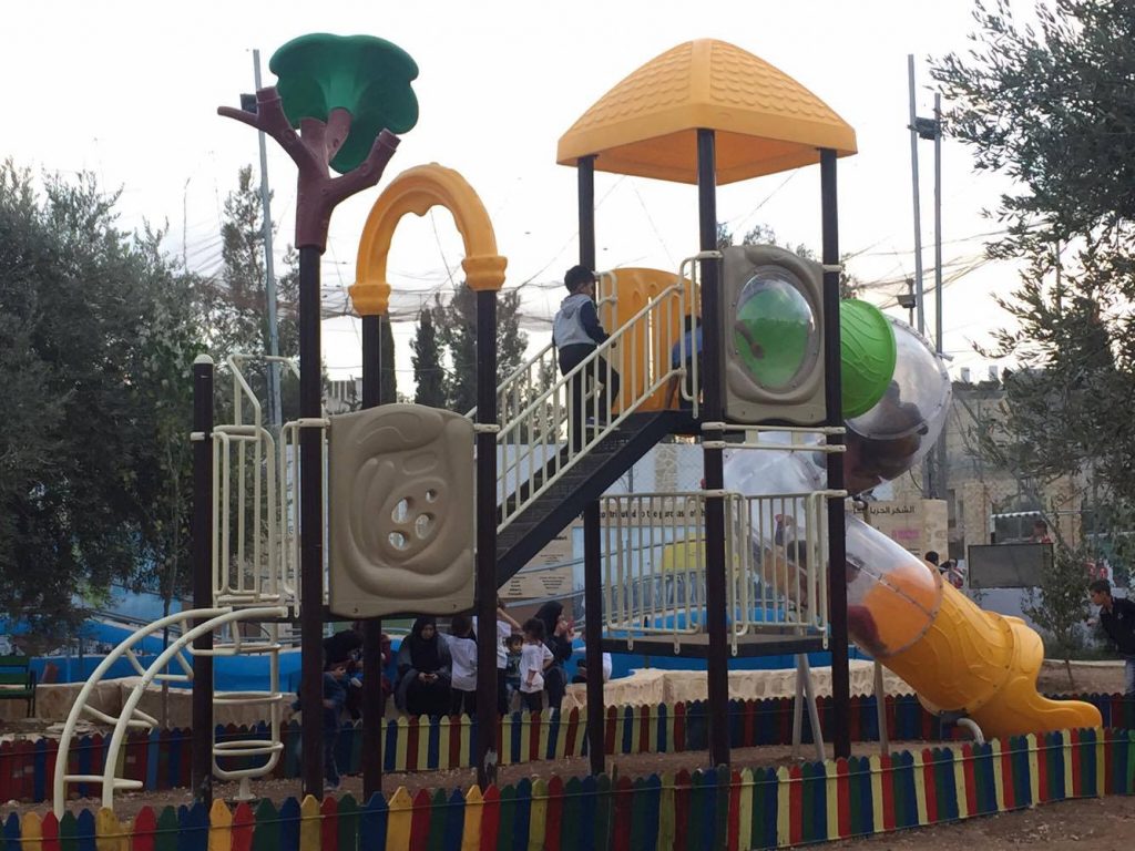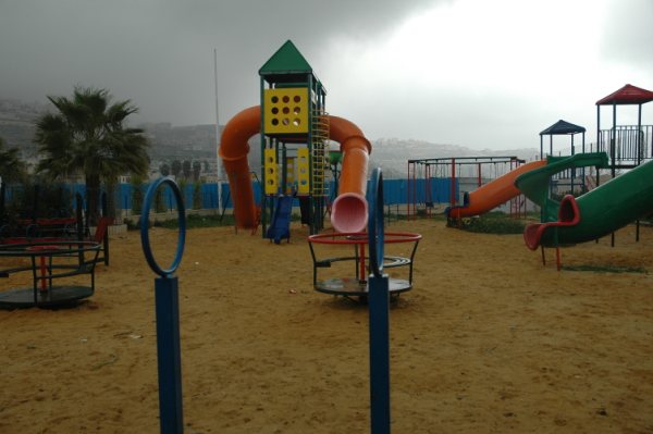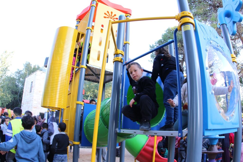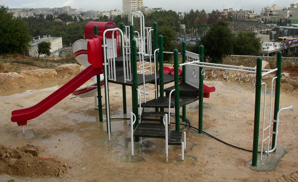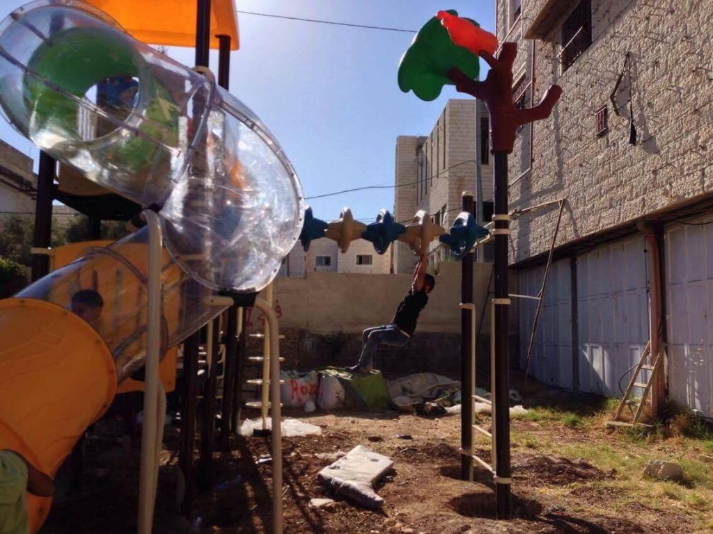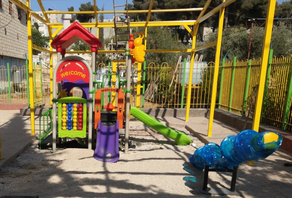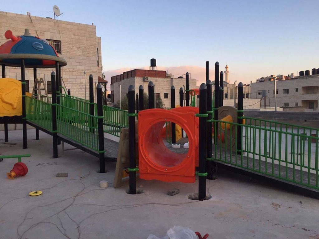 Playgrounds for Palestine’s Nablus playground is located in the King Faisal park, a public park that is part of the Nablus Happiness Childhood Center, which serves thousands of children in this Biblical Palestinian city, home to over 126,000 residents, several institutions of higher learning, and the famous Palestinian pastry, Knafe, as well as Palestinian olive oil soap.