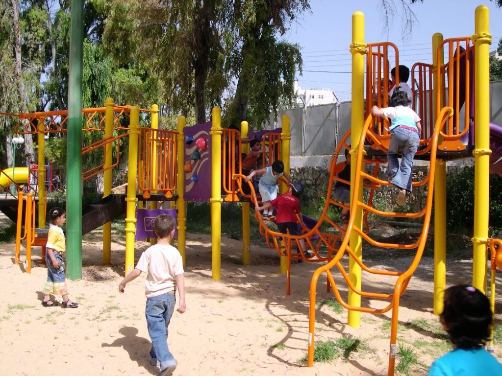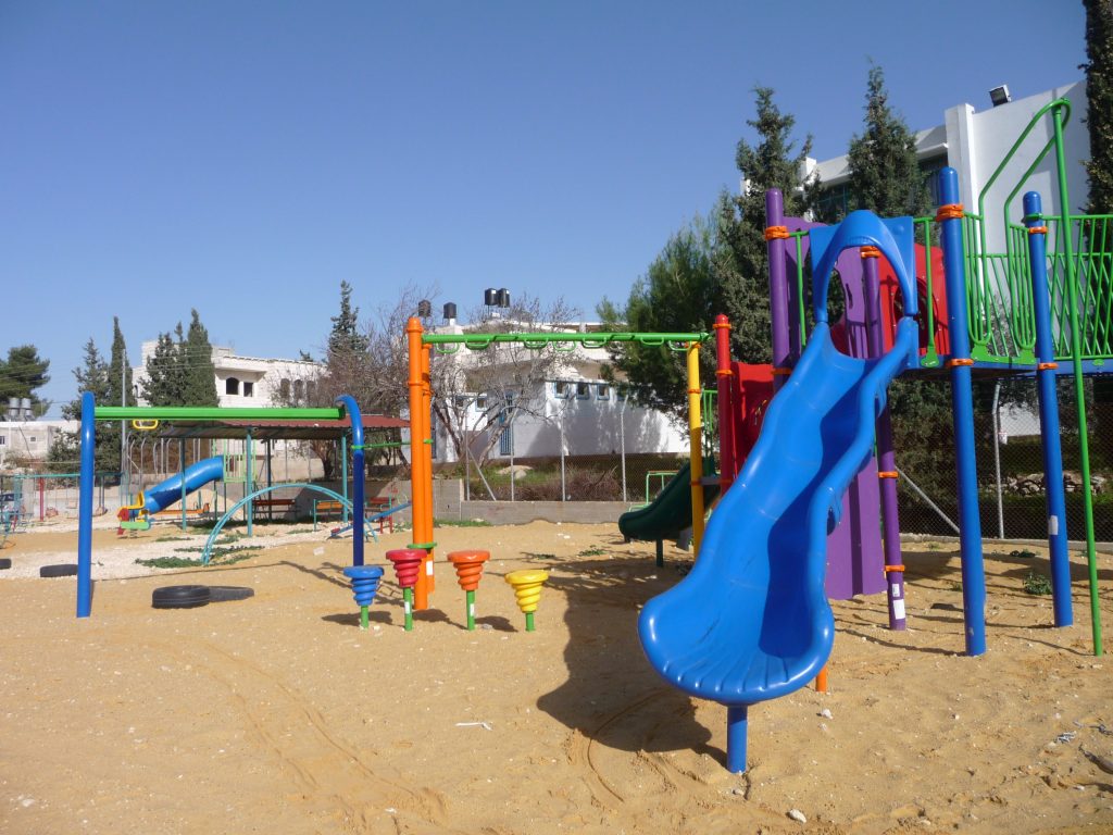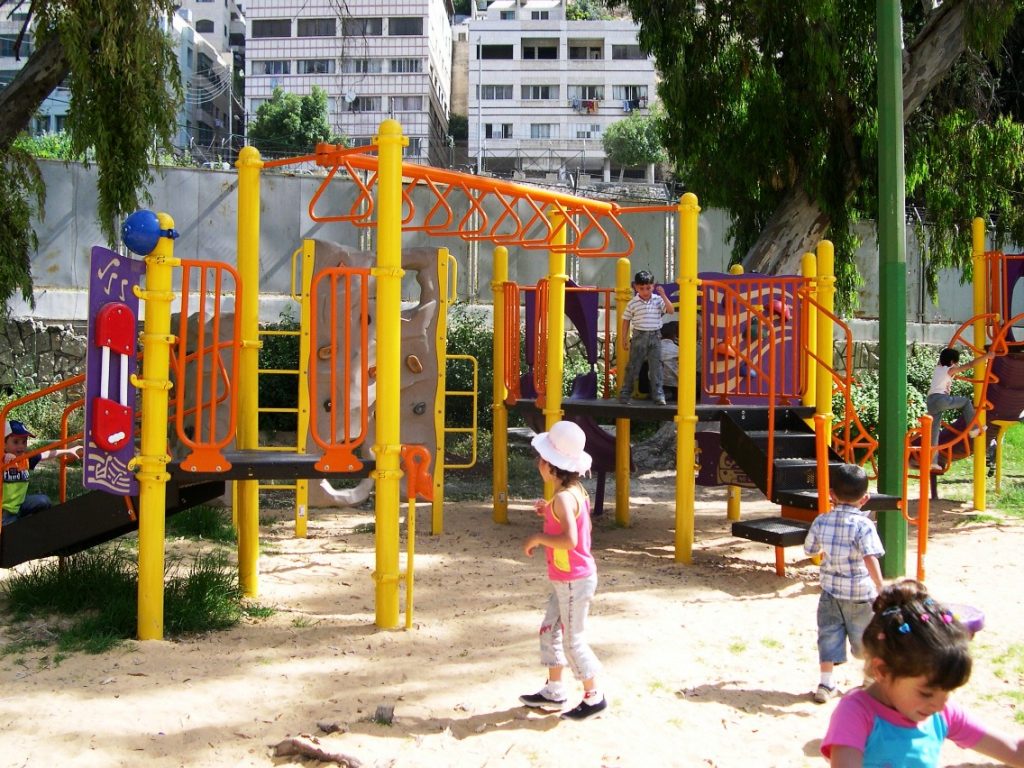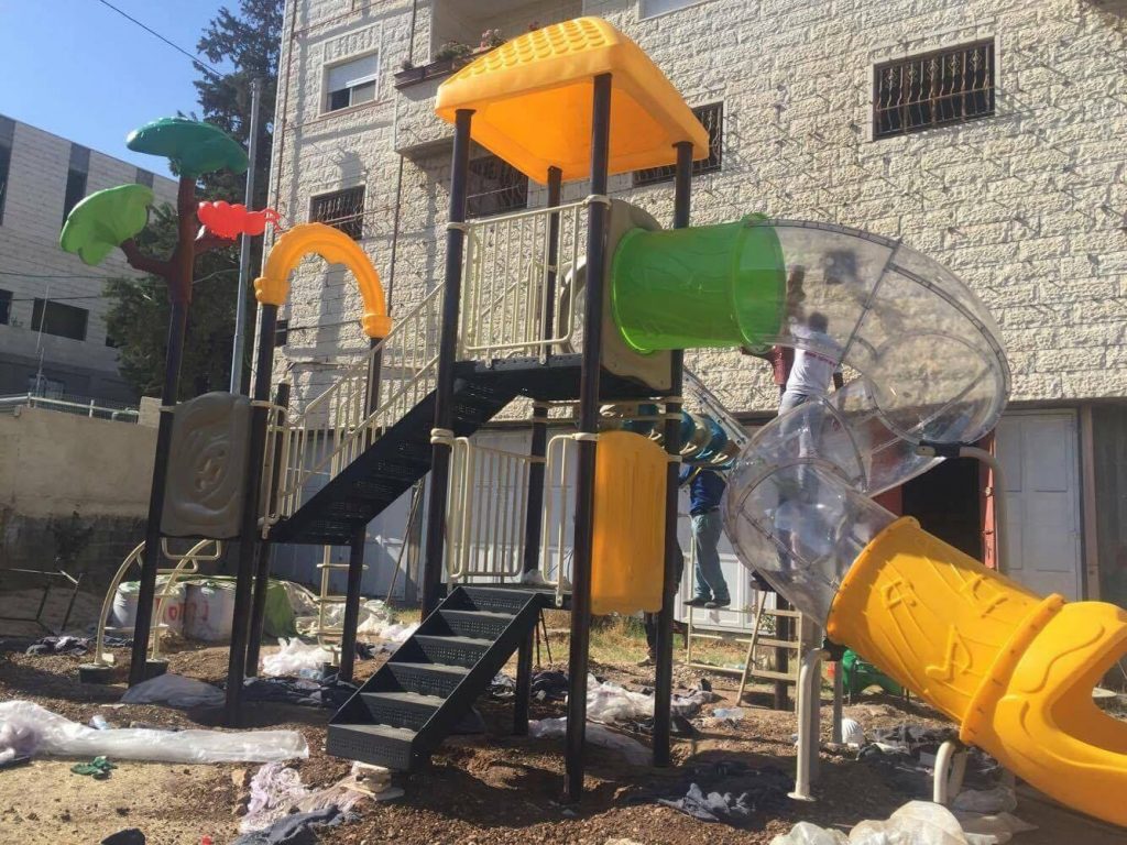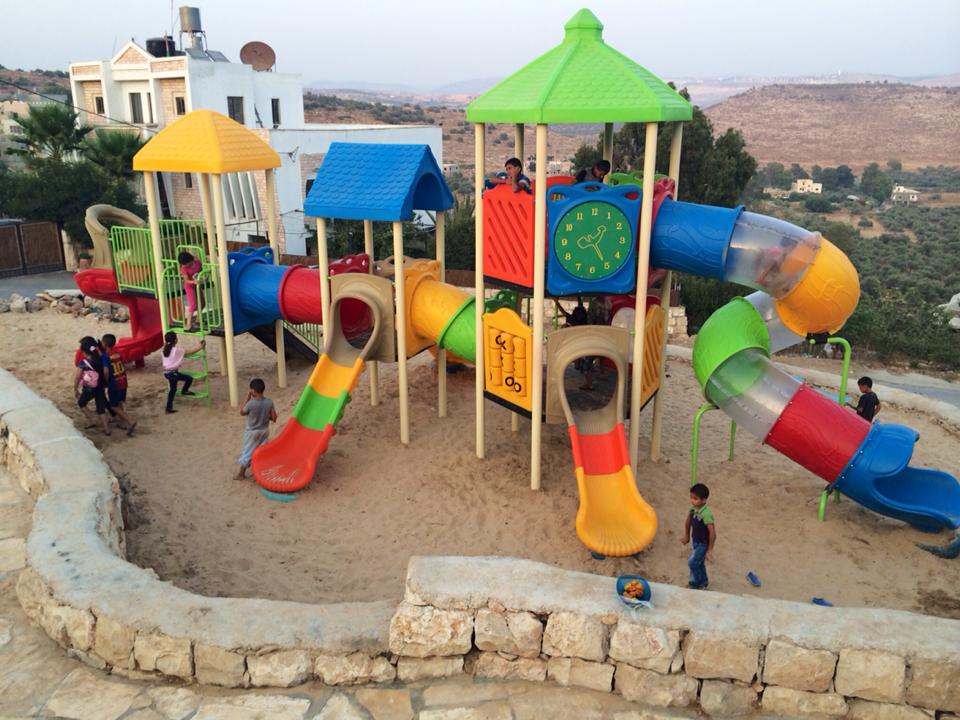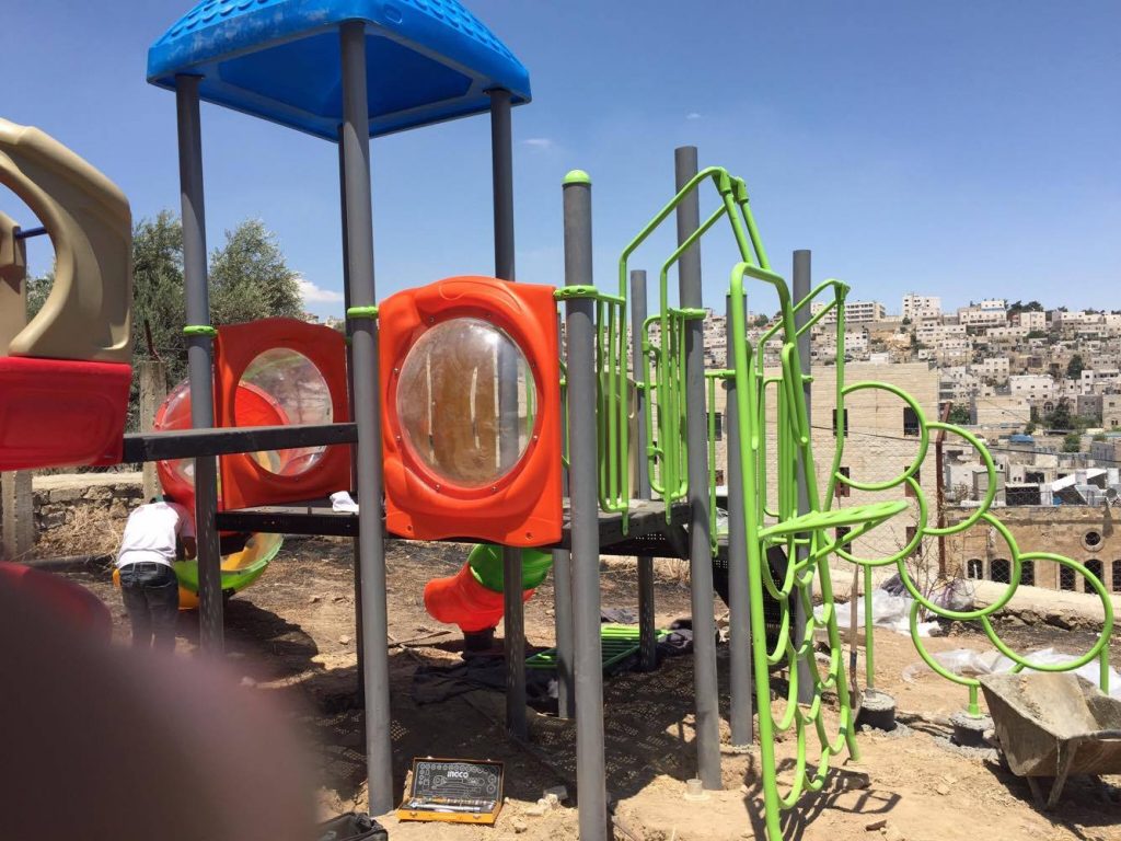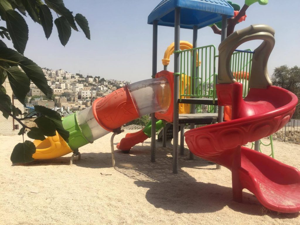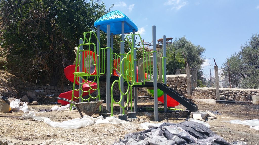 Playgrounds for Palestine’s Nablus playground is located in the King Faisal park, a public park that is part of the Nablus Happiness Childhood Center, which serves thousands of children in this Biblical Palestinian city, home to over 126,000 residents, several institutions of higher learning, and the famous Palestinian pastry, Knafe, as well as Palestinian olive oil soap.