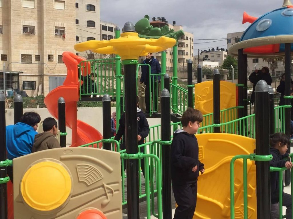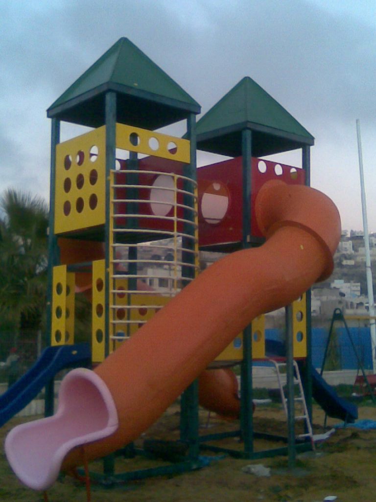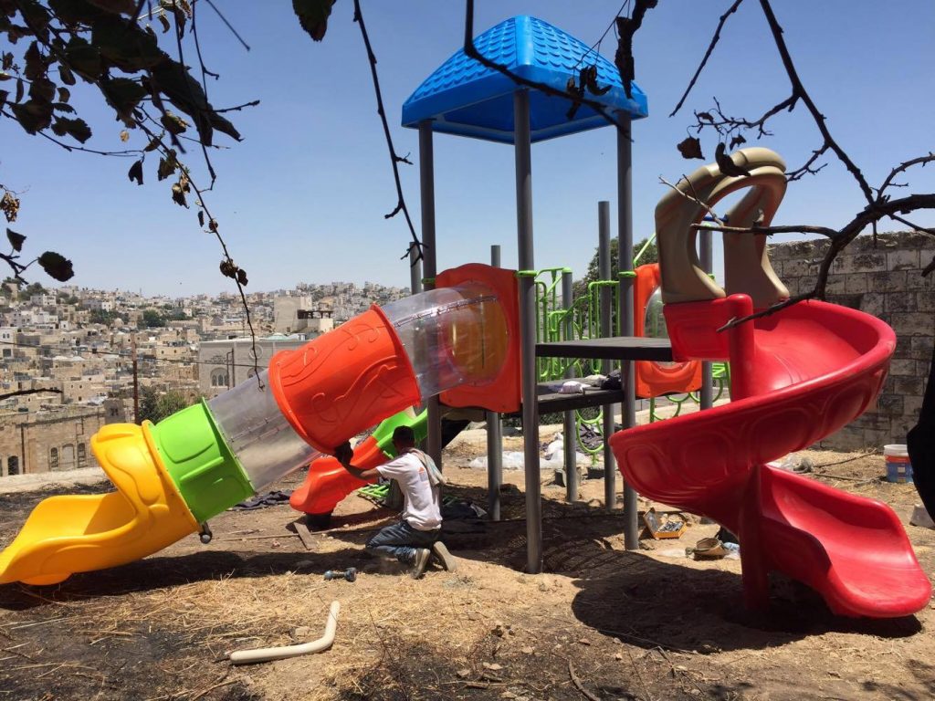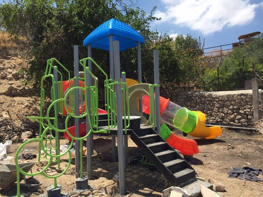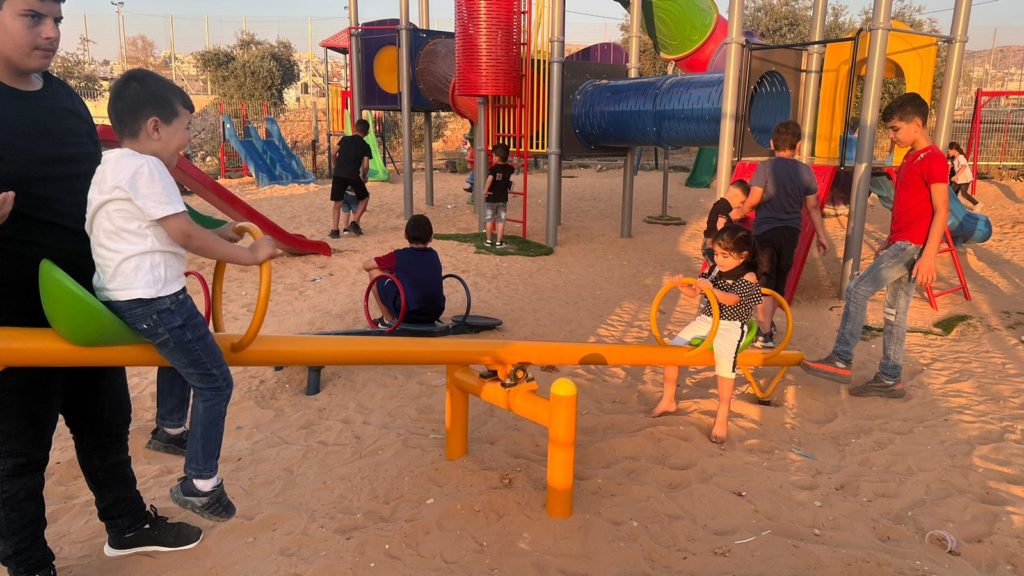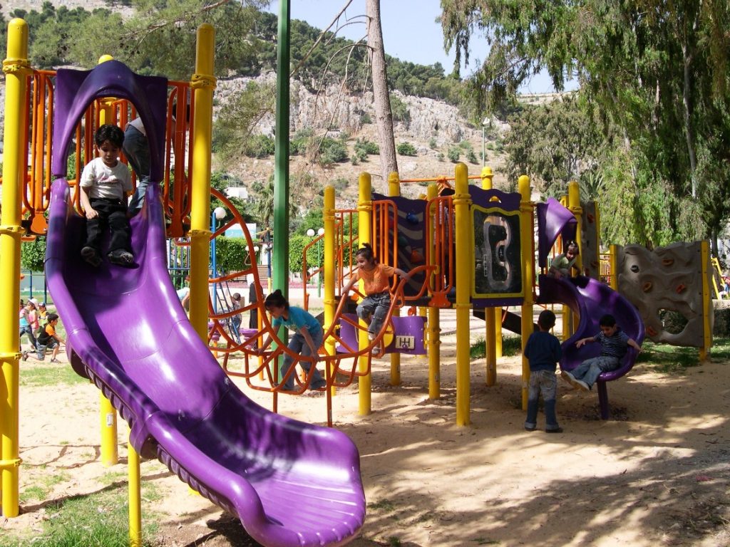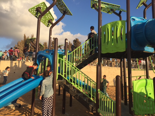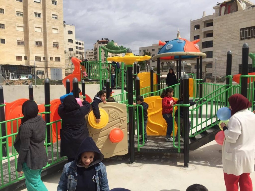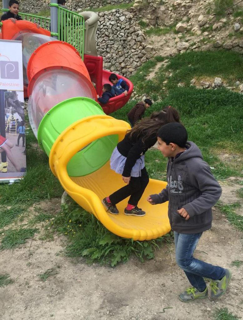 Playgrounds for Palestine’s Nablus playground is located in the King Faisal park, a public park that is part of the Nablus Happiness Childhood Center, which serves thousands of children in this Biblical Palestinian city, home to over 126,000 residents, several institutions of higher learning, and the famous Palestinian pastry, Knafe, as well as Palestinian olive oil soap.