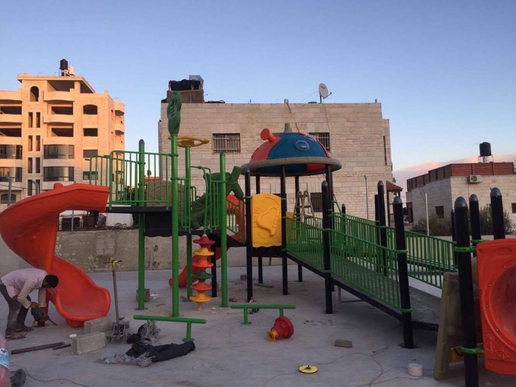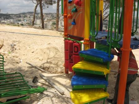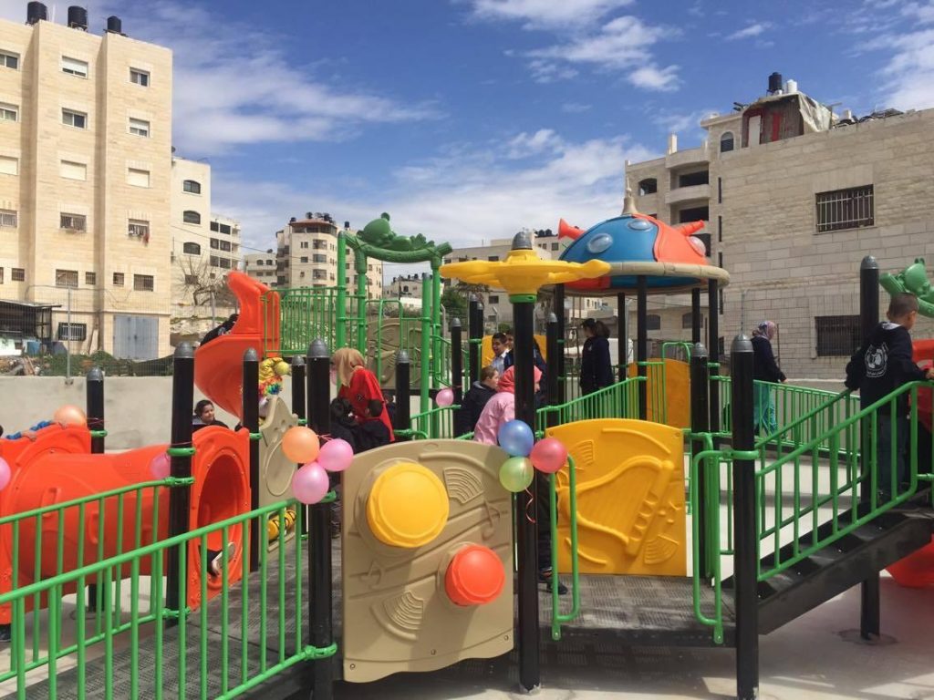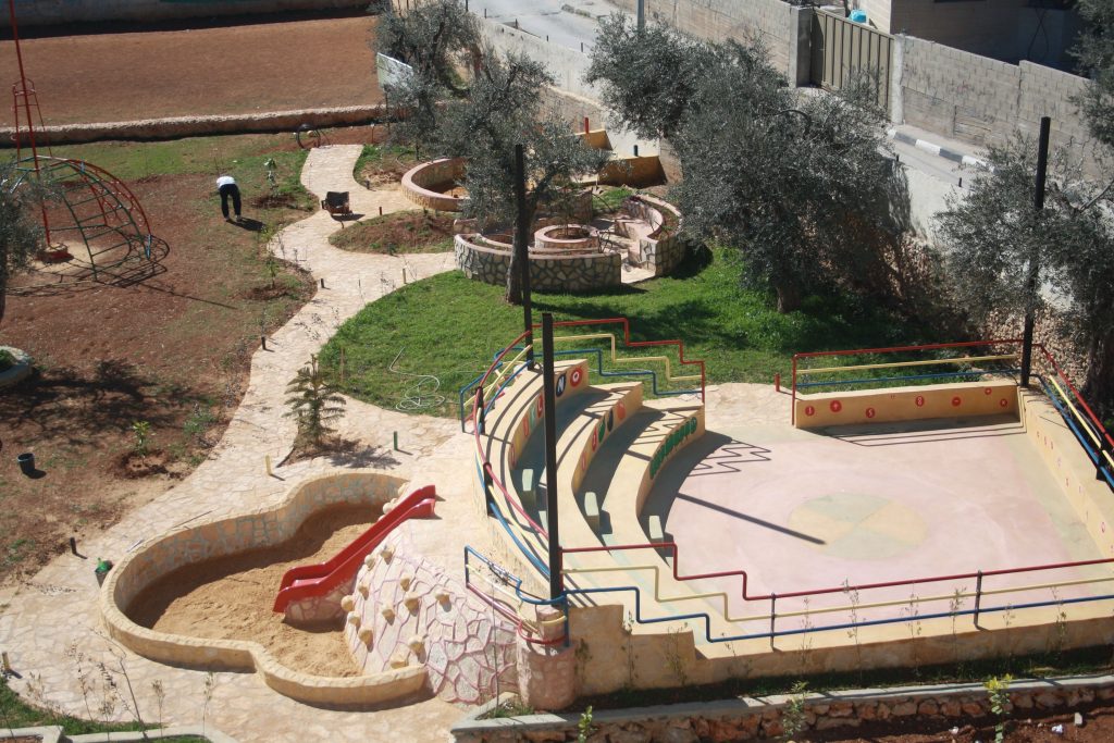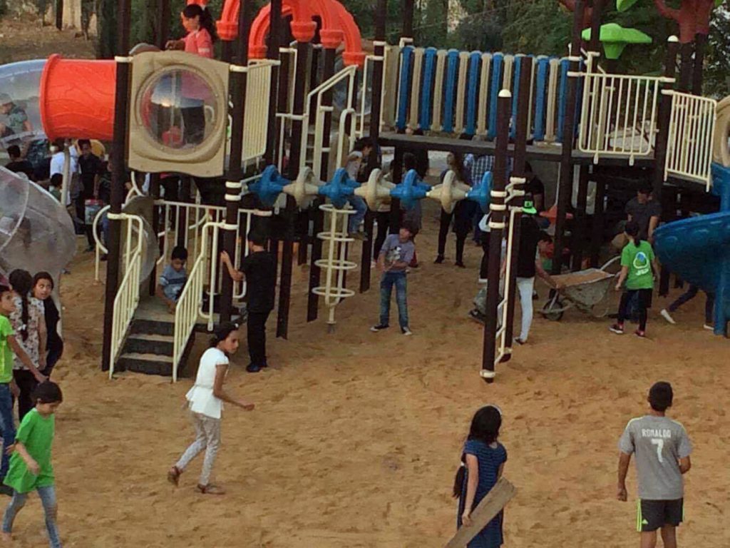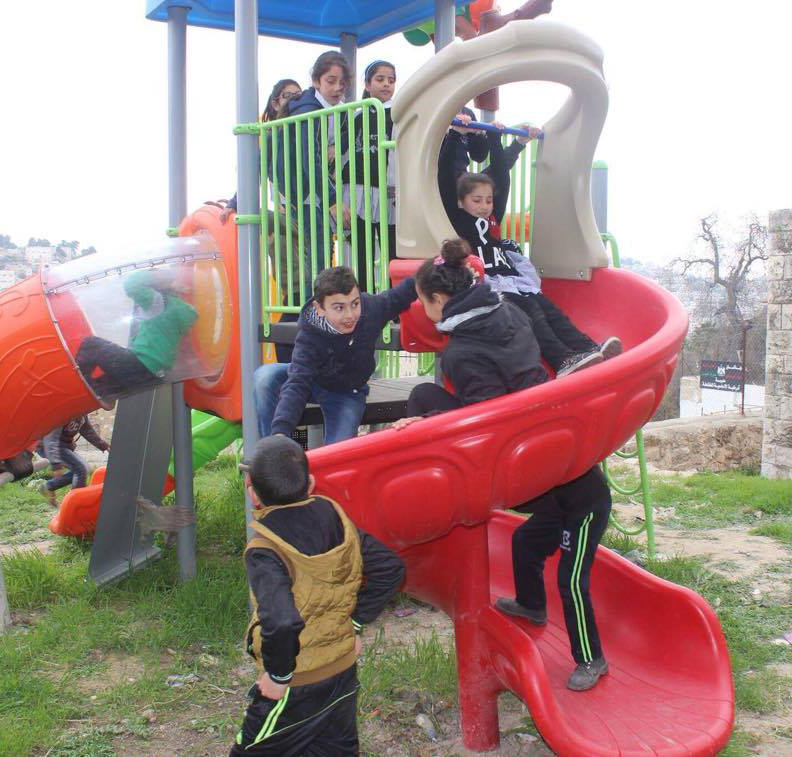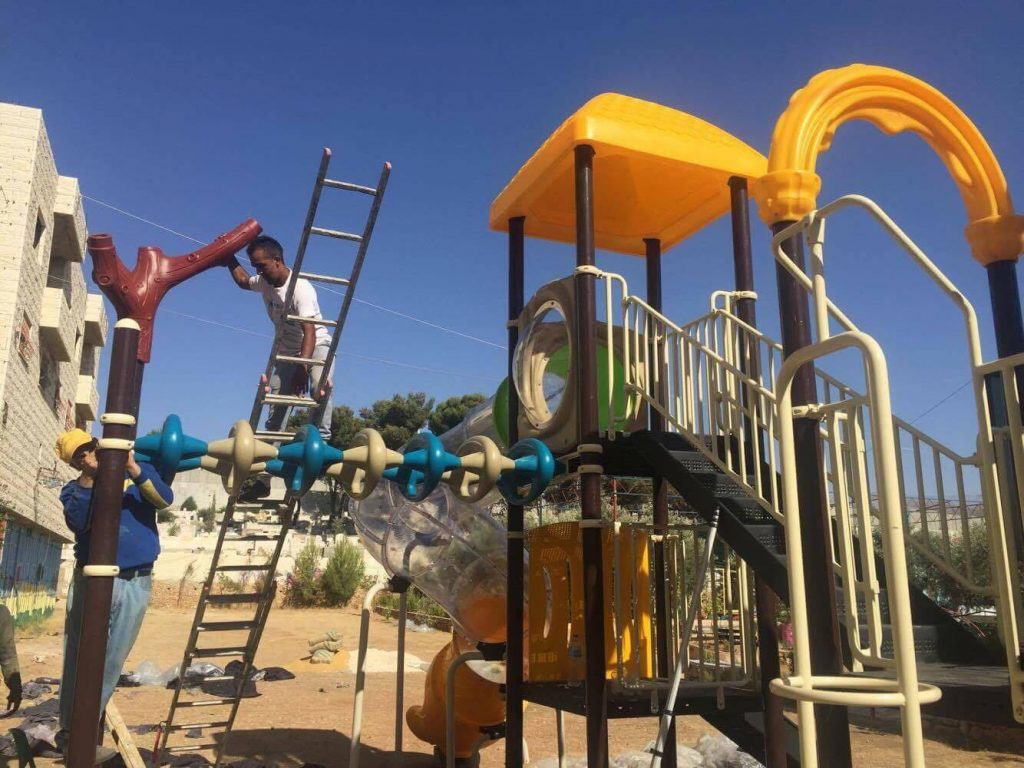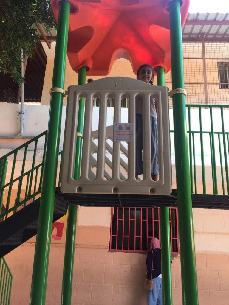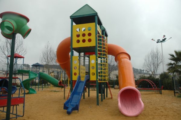 Playgrounds for Palestine’s Nablus playground is located in the King Faisal park, a public park that is part of the Nablus Happiness Childhood Center, which serves thousands of children in this Biblical Palestinian city, home to over 126,000 residents, several institutions of higher learning, and the famous Palestinian pastry, Knafe, as well as Palestinian olive oil soap.