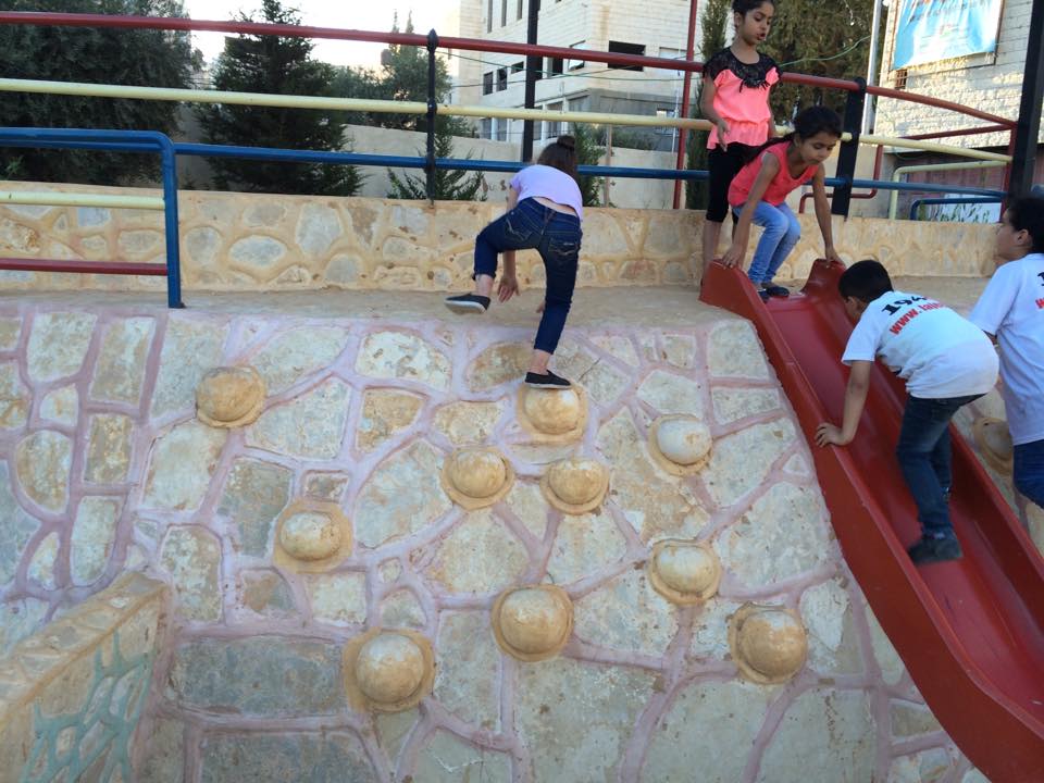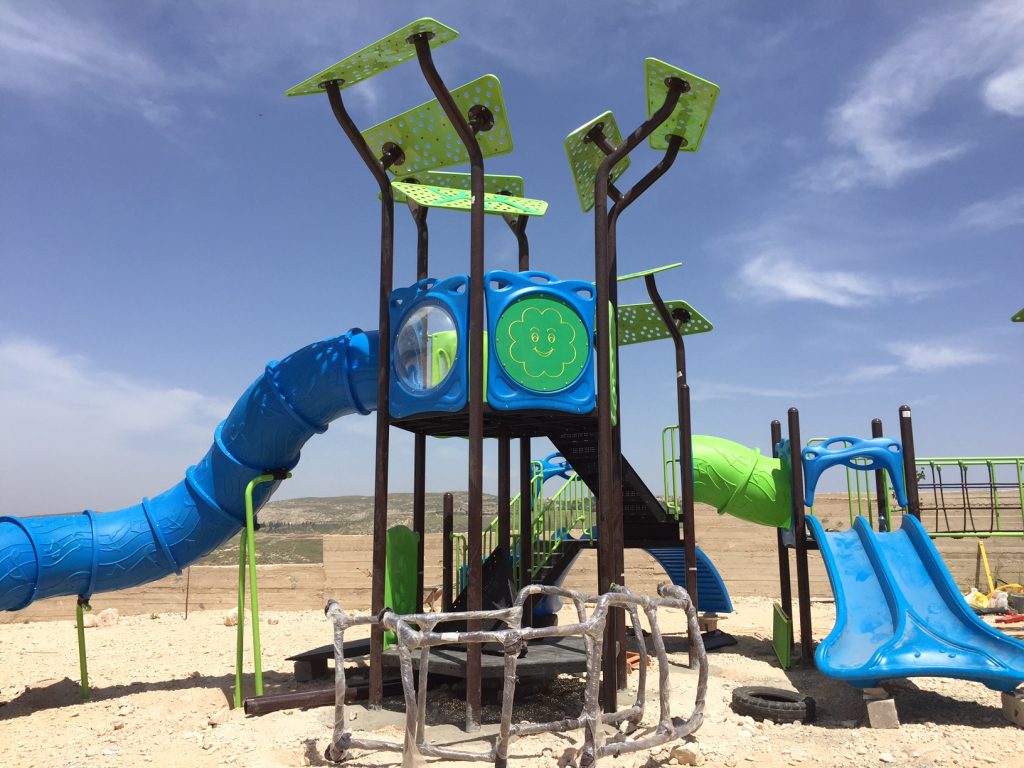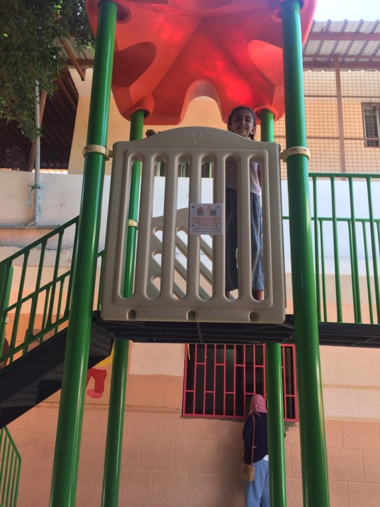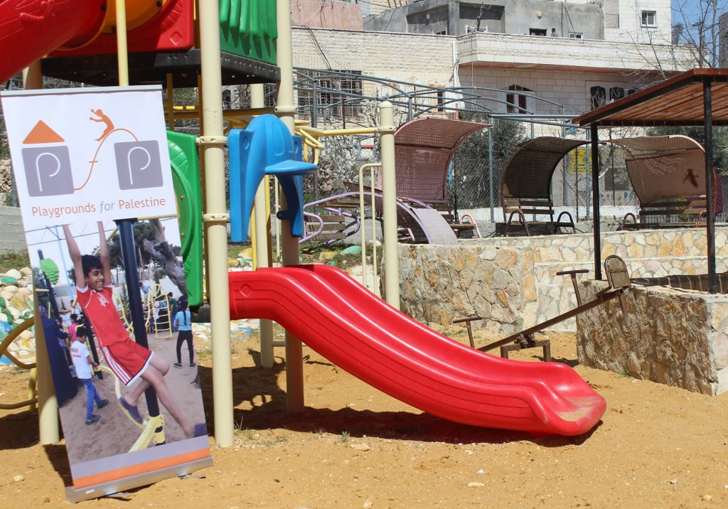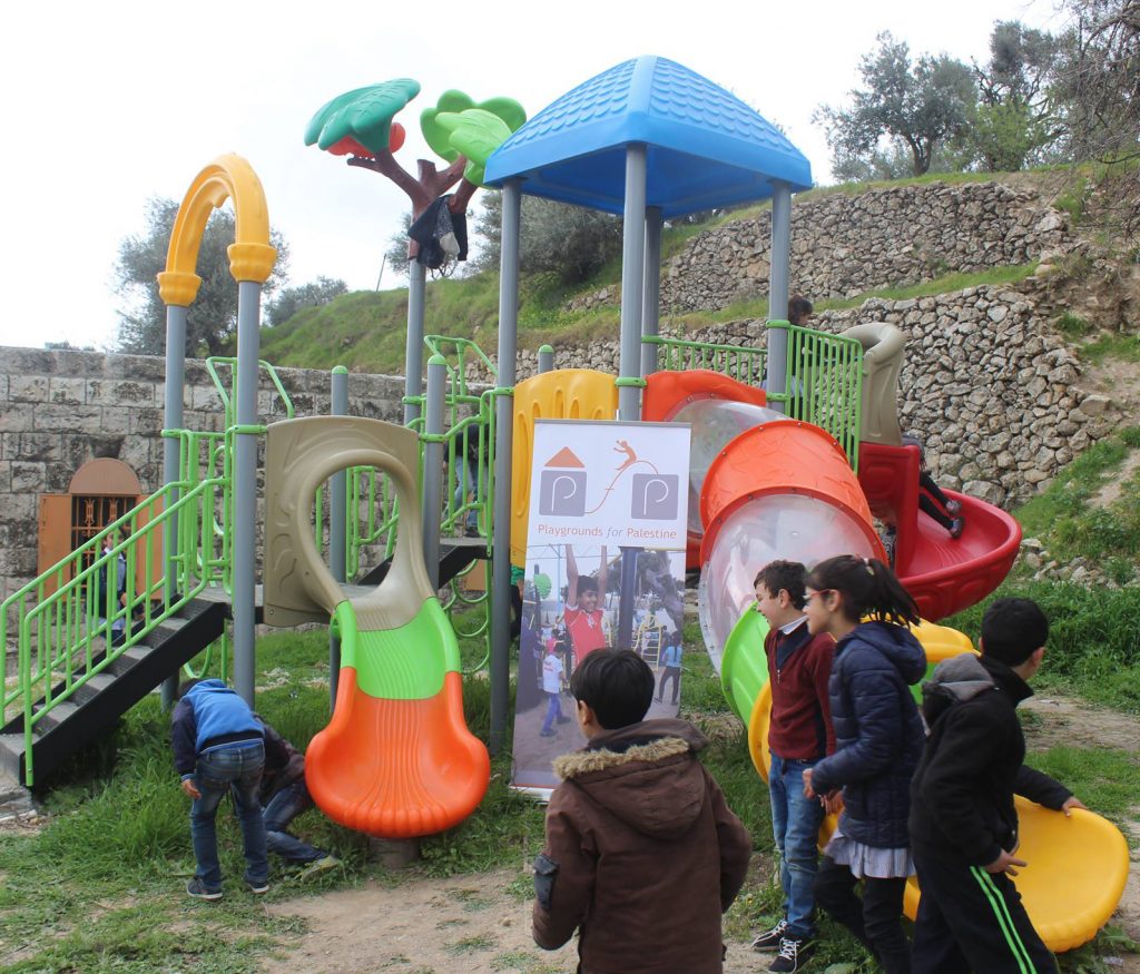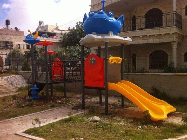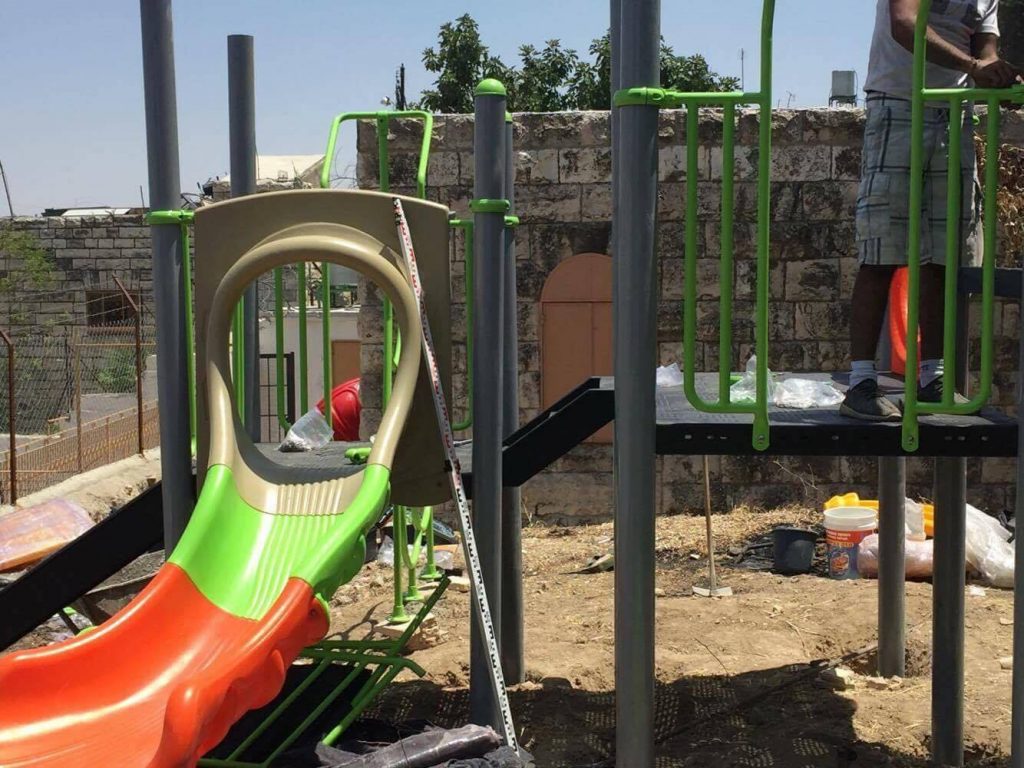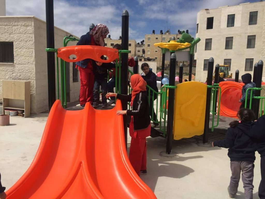 Playgrounds for Palestine’s Nablus playground is located in the King Faisal park, a public park that is part of the Nablus Happiness Childhood Center, which serves thousands of children in this Biblical Palestinian city, home to over 126,000 residents, several institutions of higher learning, and the famous Palestinian pastry, Knafe, as well as Palestinian olive oil soap.
