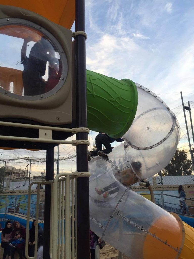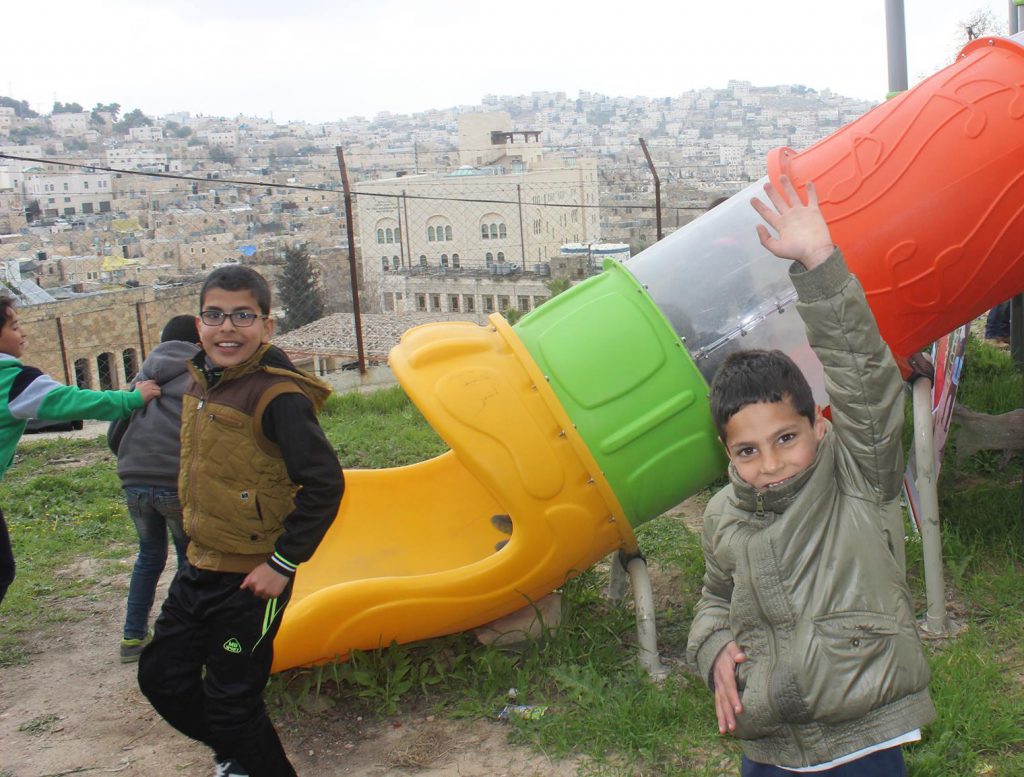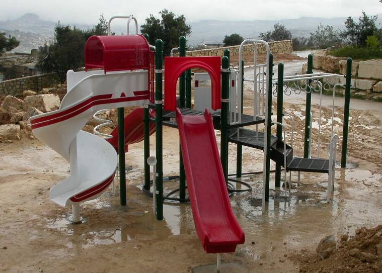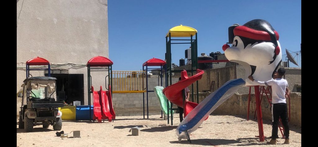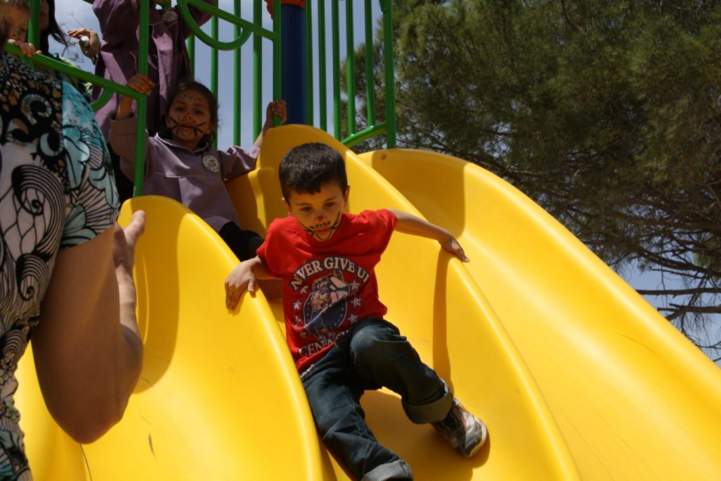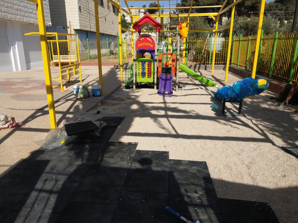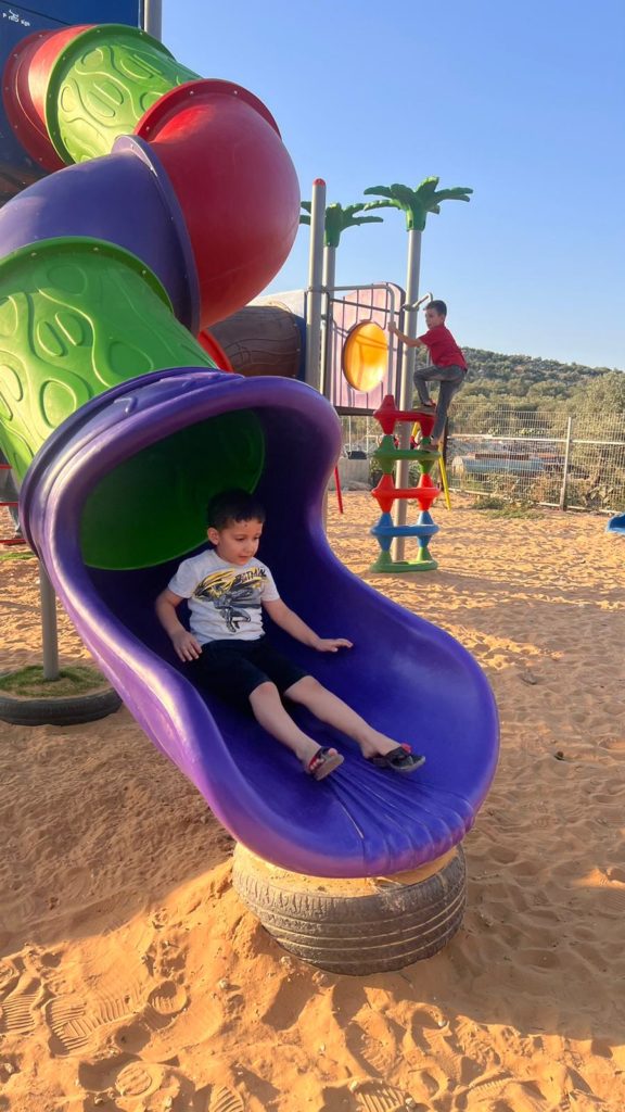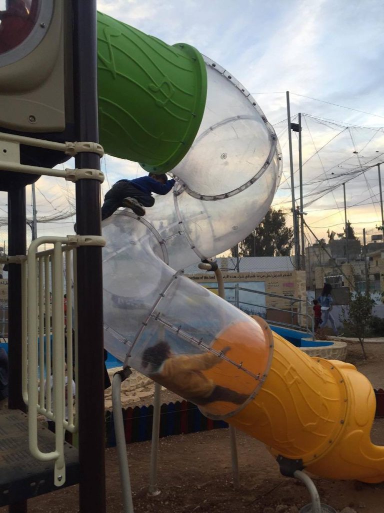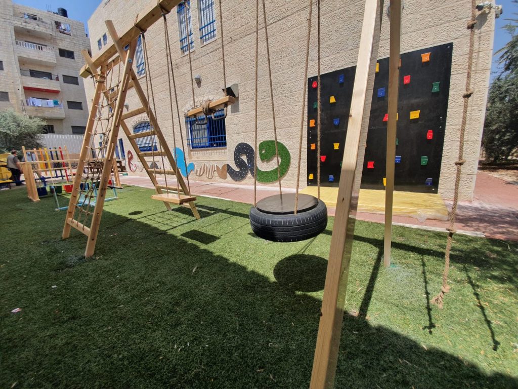 Playgrounds for Palestine’s Nablus playground is located in the King Faisal park, a public park that is part of the Nablus Happiness Childhood Center, which serves thousands of children in this Biblical Palestinian city, home to over 126,000 residents, several institutions of higher learning, and the famous Palestinian pastry, Knafe, as well as Palestinian olive oil soap.