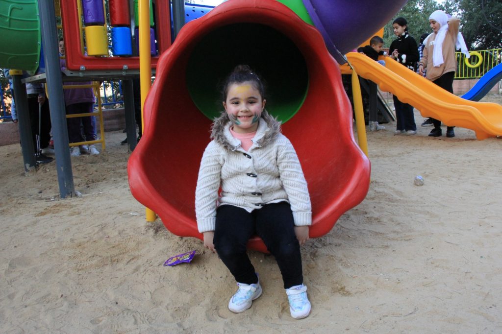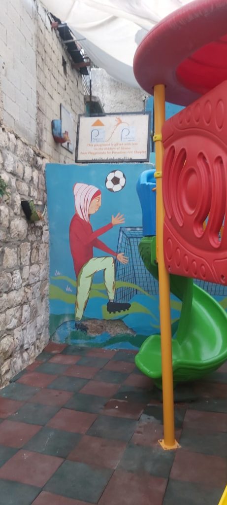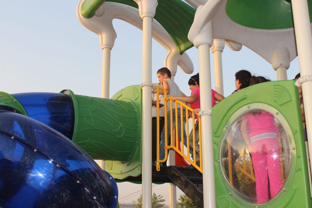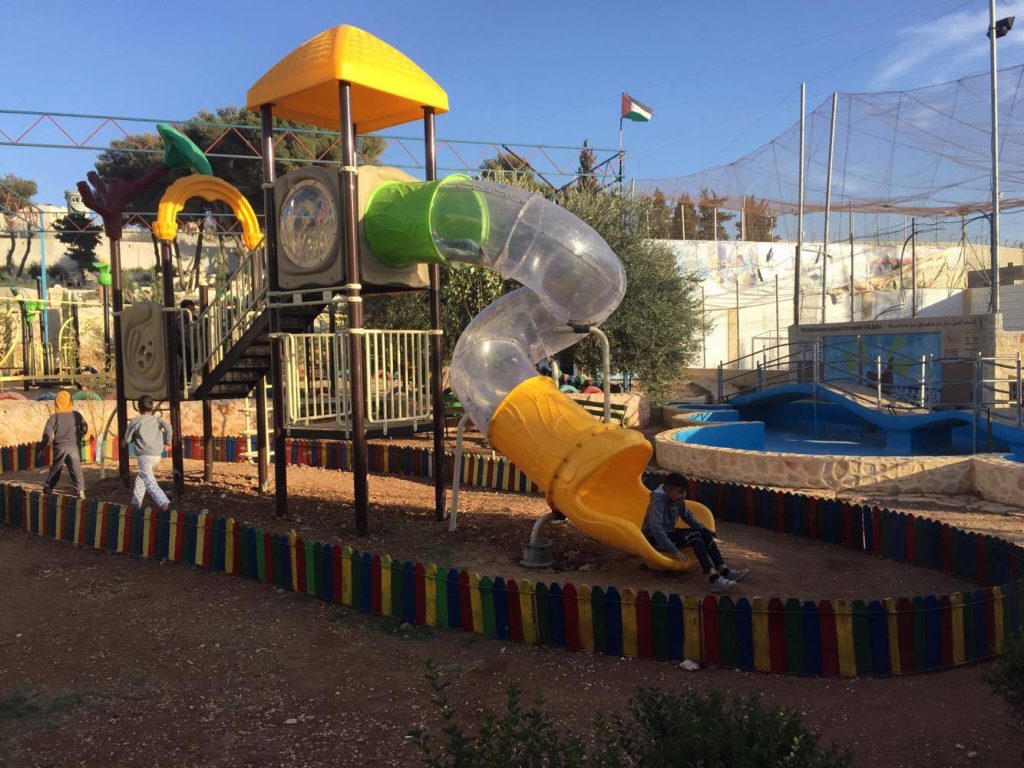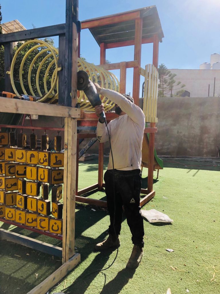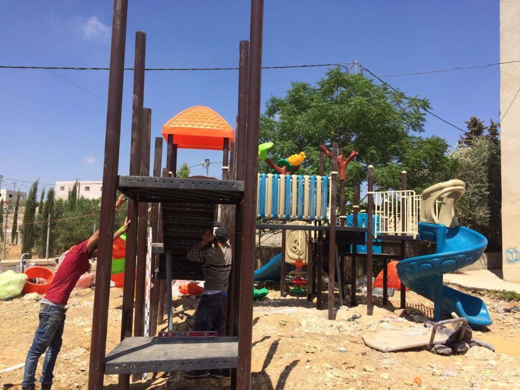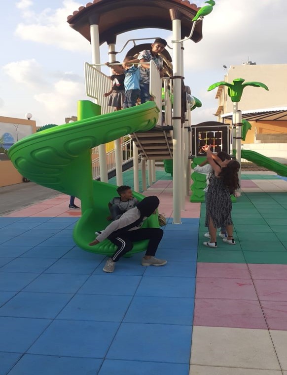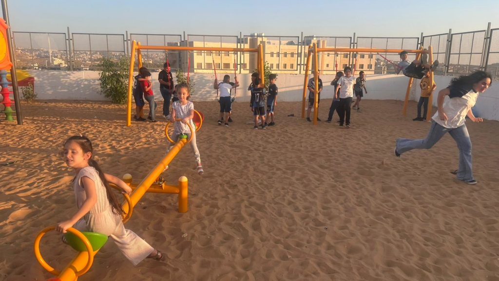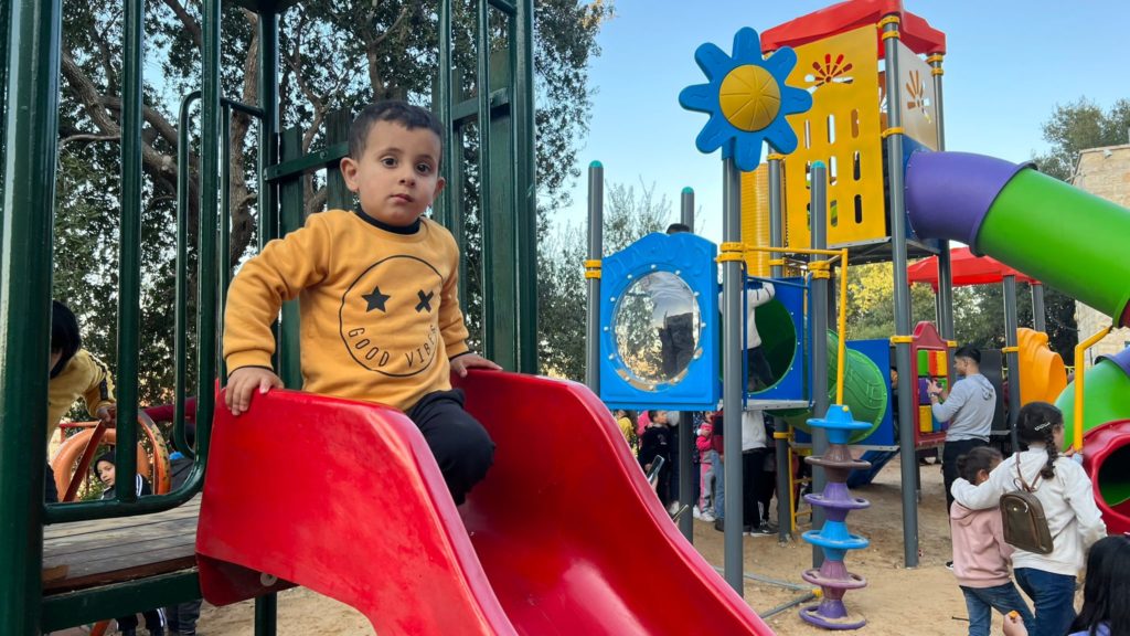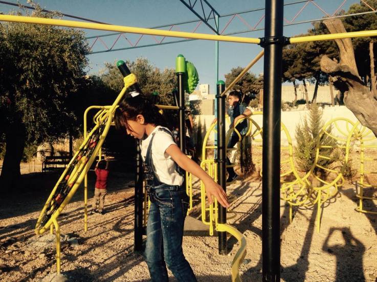 Playgrounds for Palestine’s Nablus playground is located in the King Faisal park, a public park that is part of the Nablus Happiness Childhood Center, which serves thousands of children in this Biblical Palestinian city, home to over 126,000 residents, several institutions of higher learning, and the famous Palestinian pastry, Knafe, as well as Palestinian olive oil soap.
