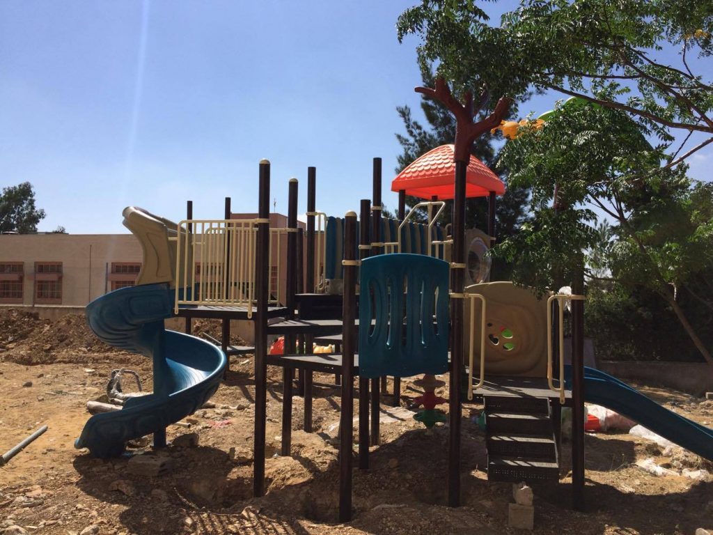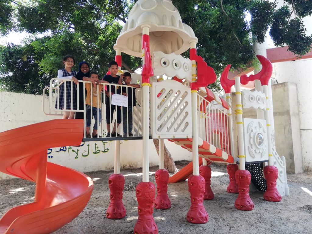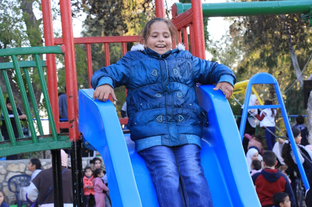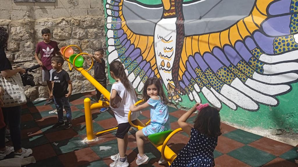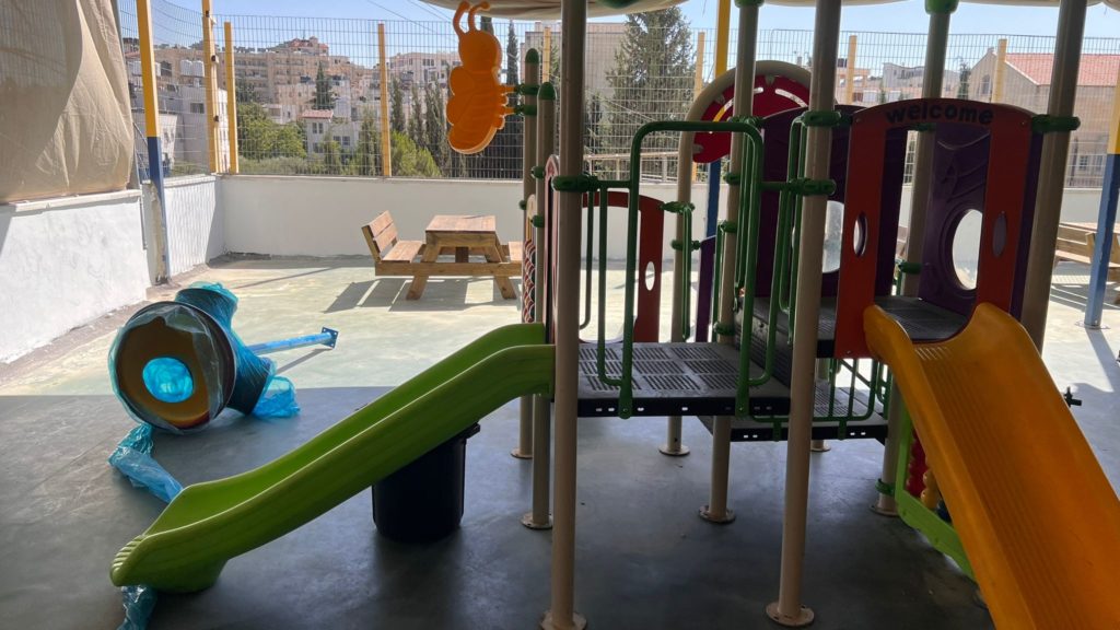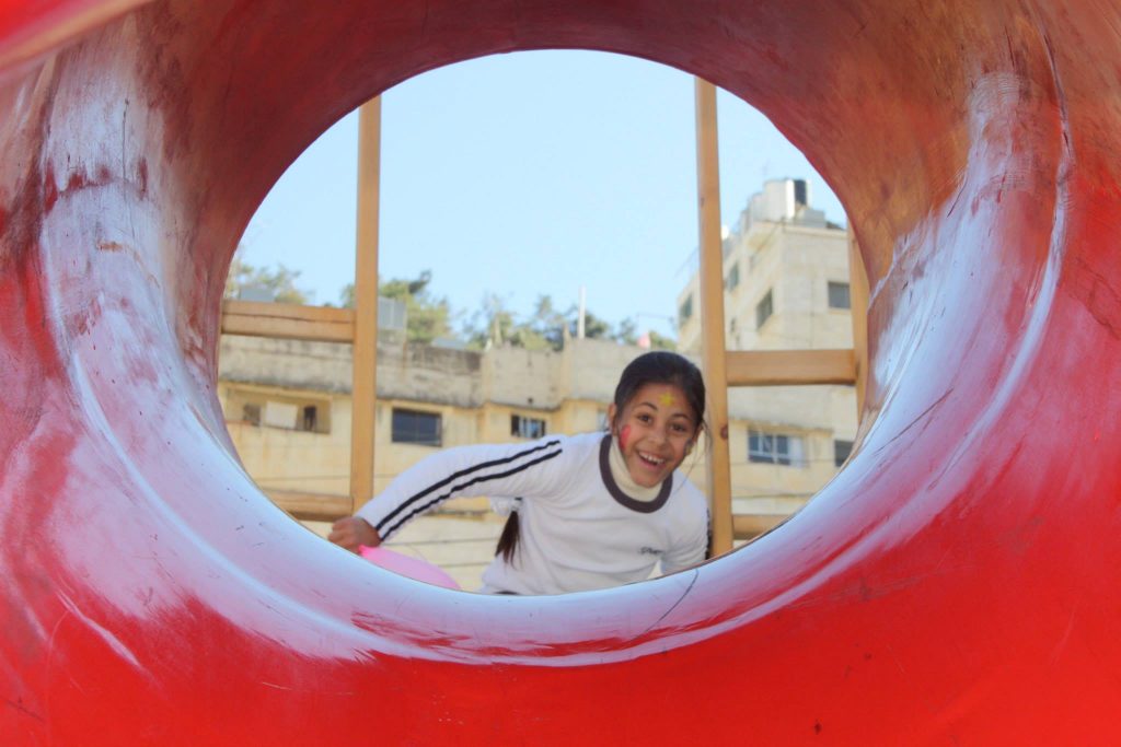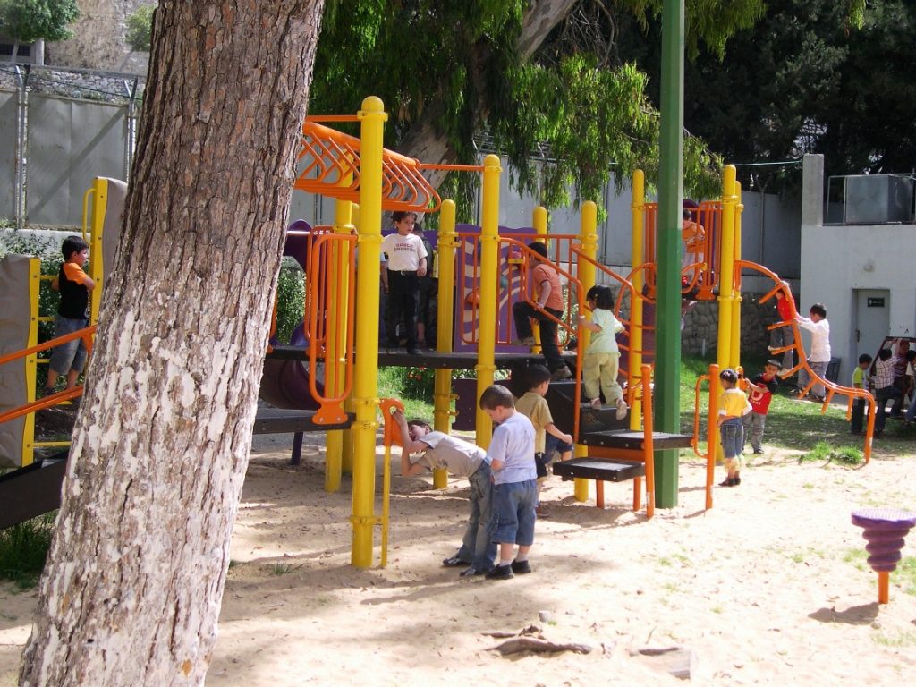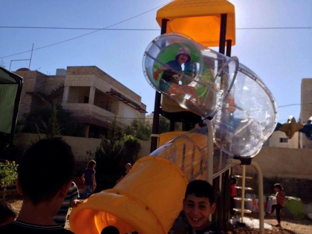 Playgrounds for Palestine’s Nablus playground is located in the King Faisal park, a public park that is part of the Nablus Happiness Childhood Center, which serves thousands of children in this Biblical Palestinian city, home to over 126,000 residents, several institutions of higher learning, and the famous Palestinian pastry, Knafe, as well as Palestinian olive oil soap.