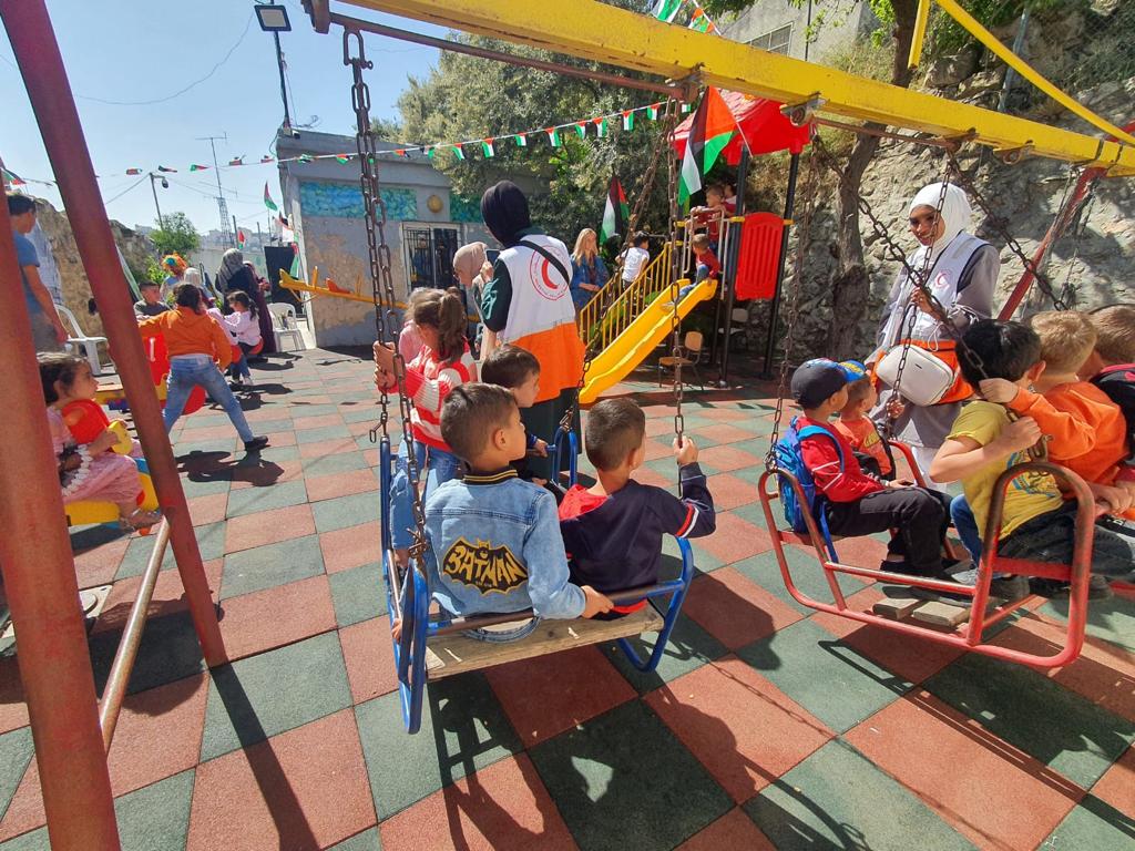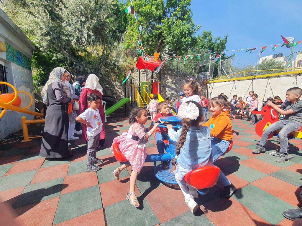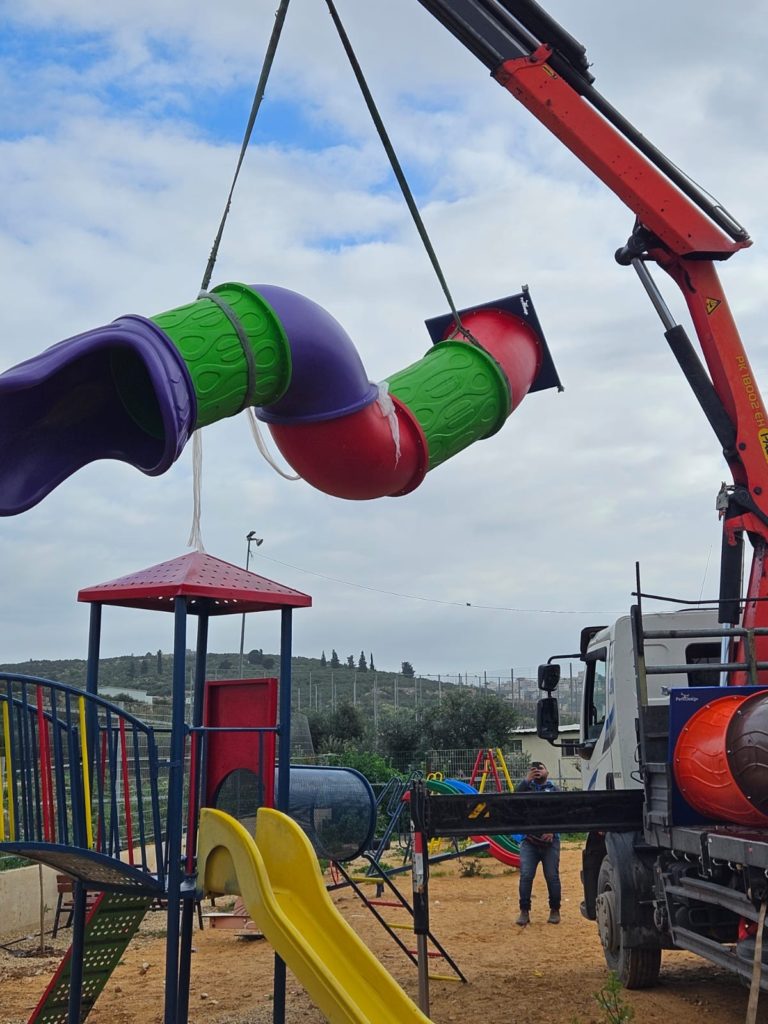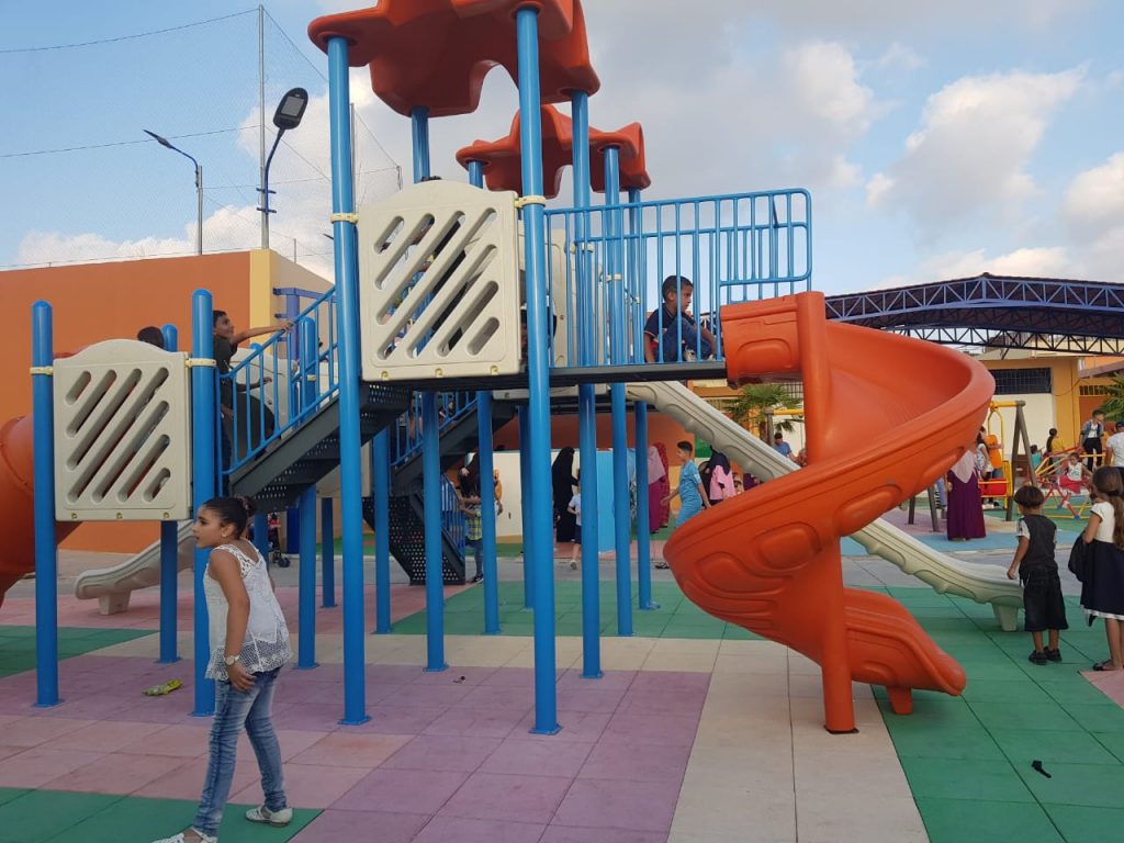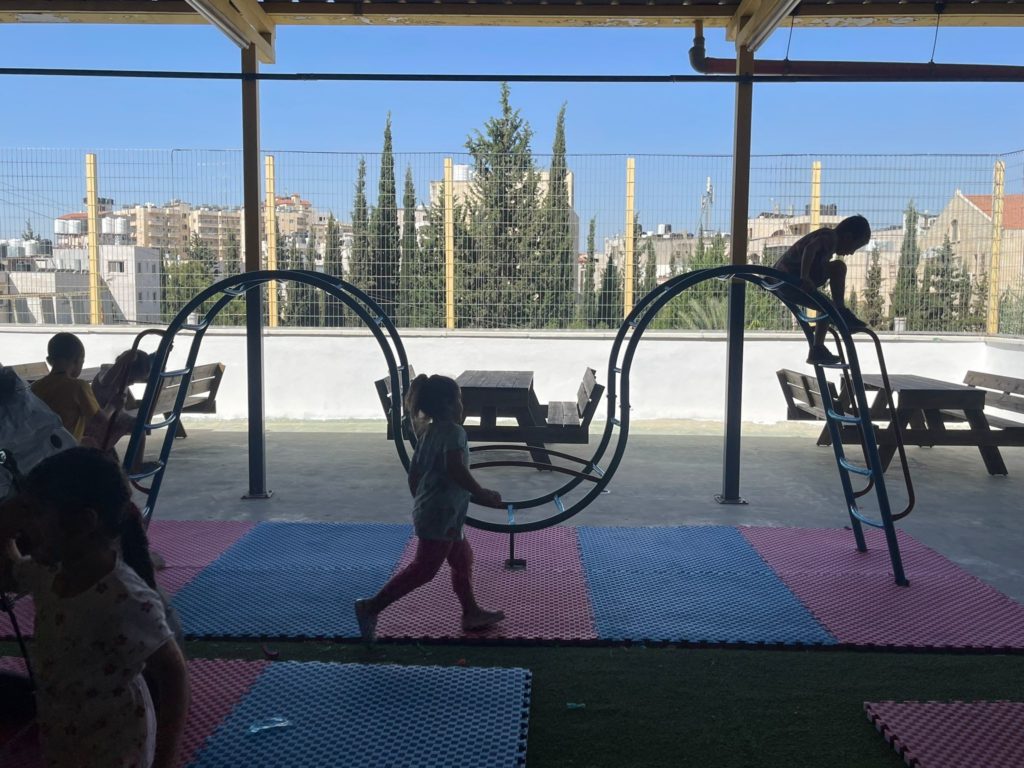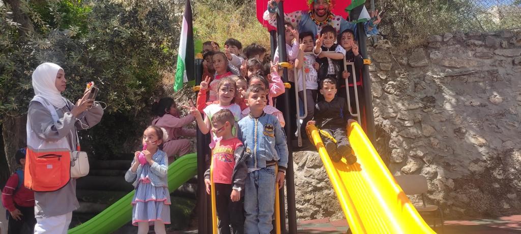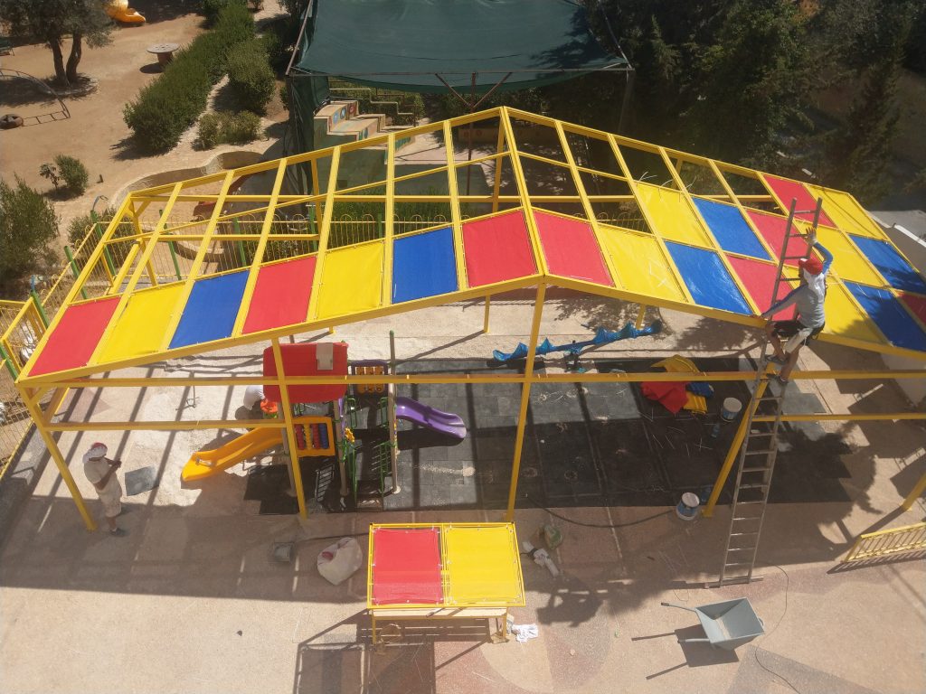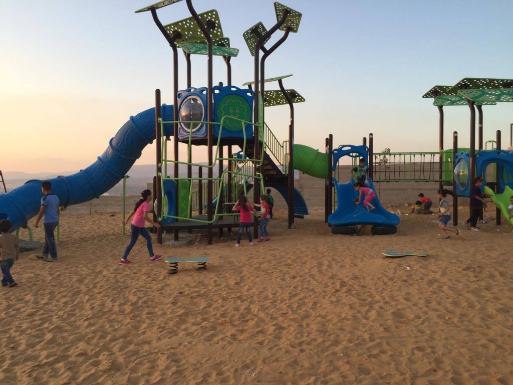 Playgrounds for Palestine’s Nablus playground is located in the King Faisal park, a public park that is part of the Nablus Happiness Childhood Center, which serves thousands of children in this Biblical Palestinian city, home to over 126,000 residents, several institutions of higher learning, and the famous Palestinian pastry, Knafe, as well as Palestinian olive oil soap.