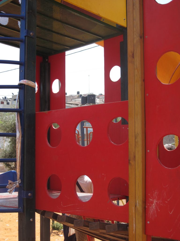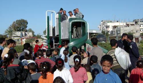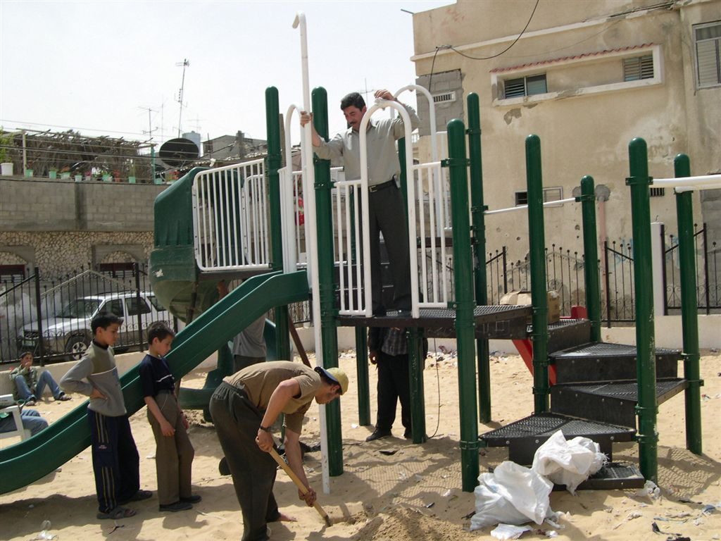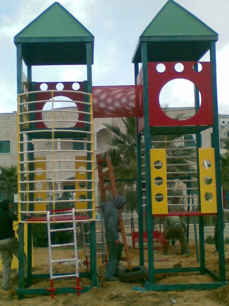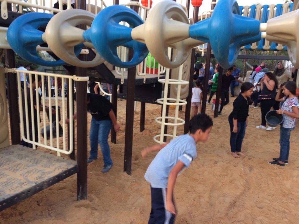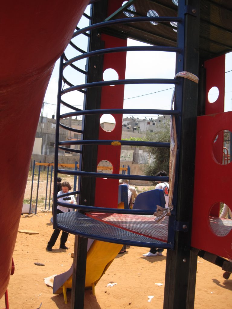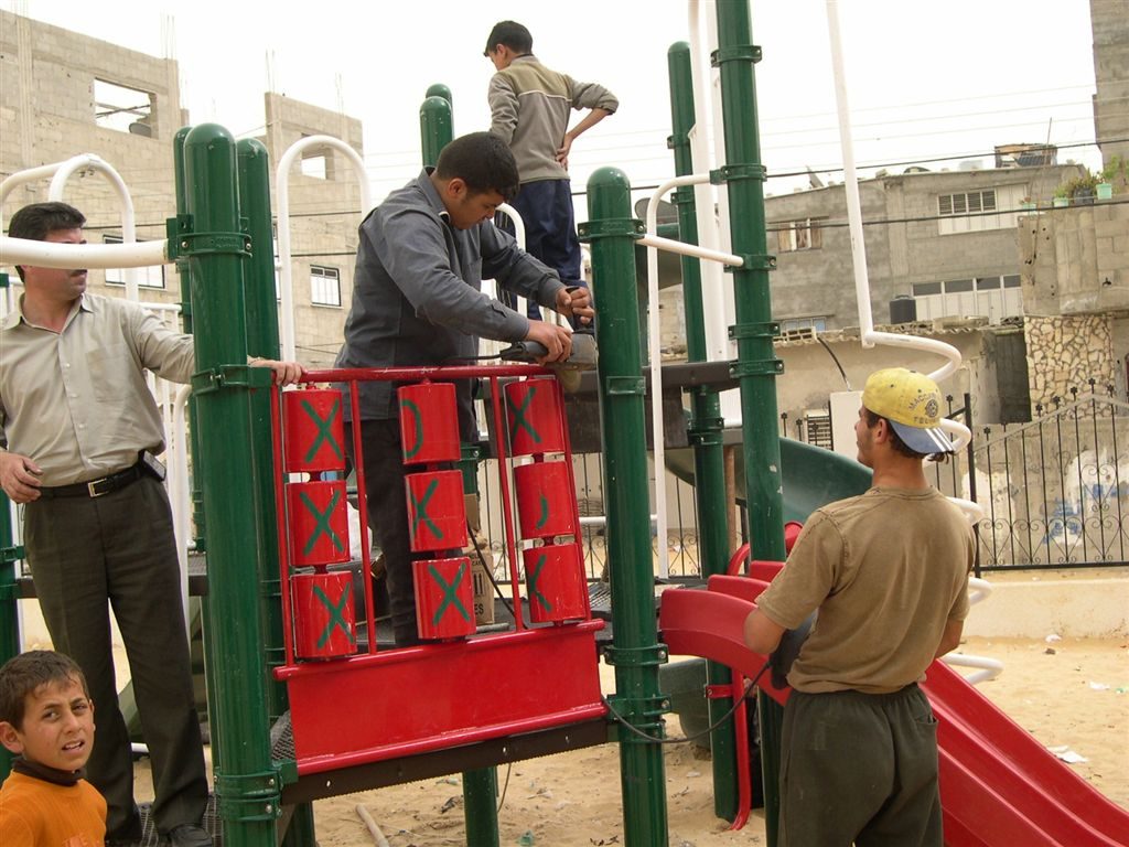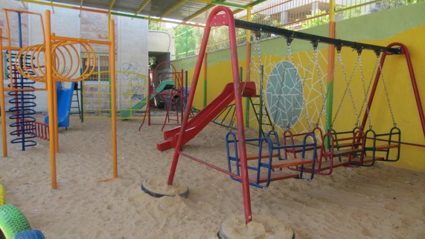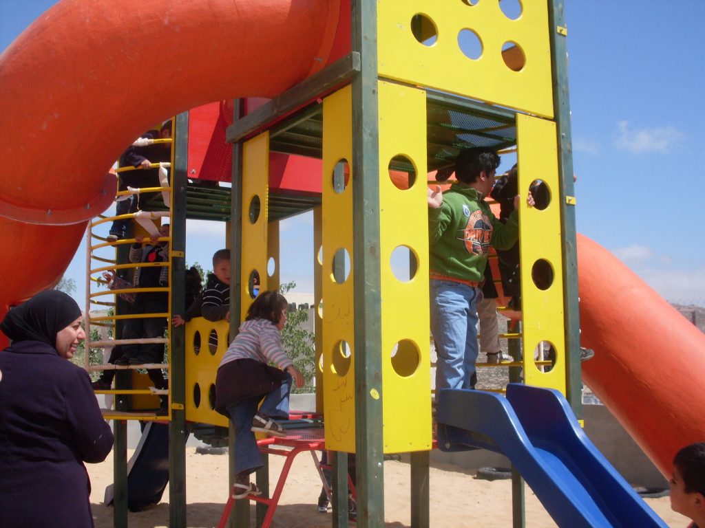 This playground was built at the Right to Life Society, which serves Palestinian children with Down Syndrome and Autism.  Established in 1993, this non-profit helps to nurture these children to live as productive members of society. Through dance classes, arts and crafts, carpentry, and more, the Society aims to help these citizens of Gaza and to raise awareness throughout the region about what their graduates can contribute to their communities.