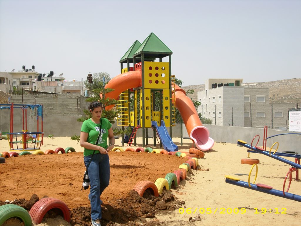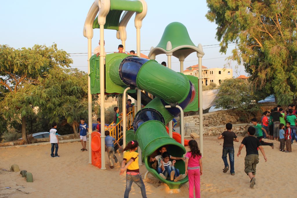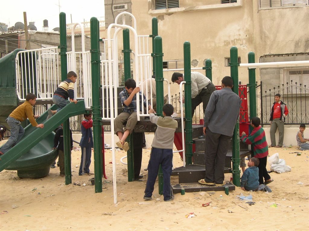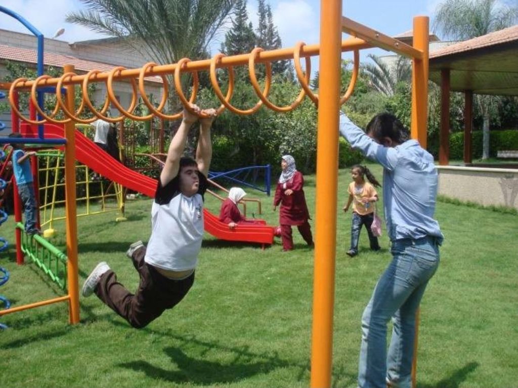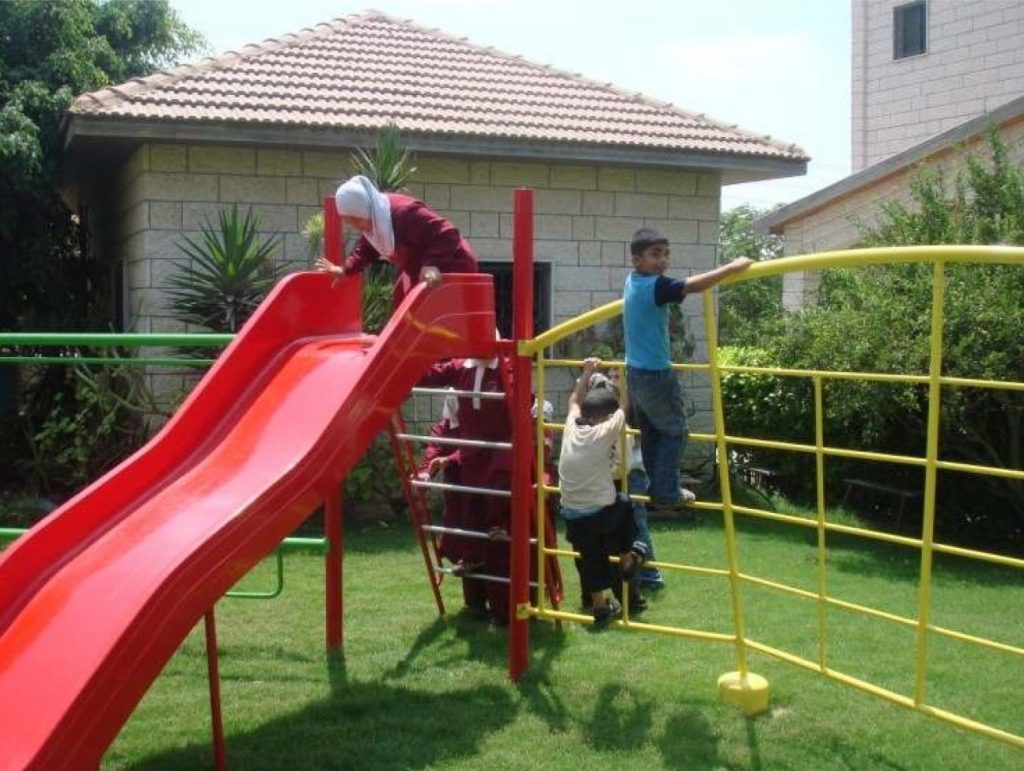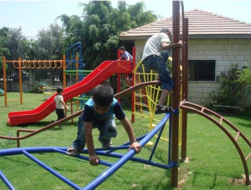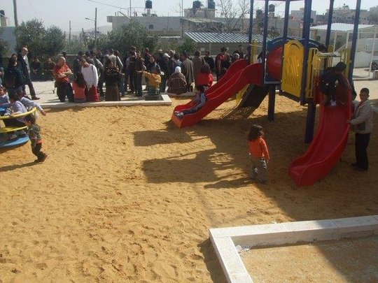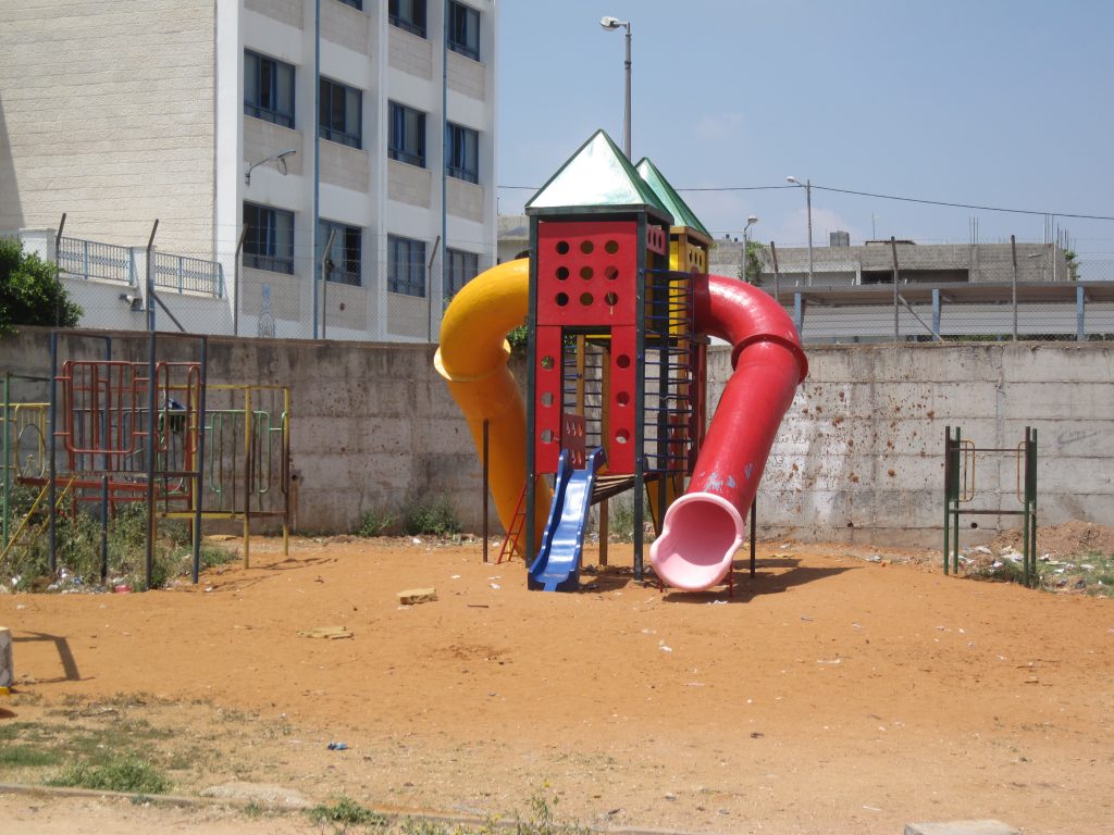 This playground was built at the Right to Life Society, which serves Palestinian children with Down Syndrome and Autism.  Established in 1993, this non-profit helps to nurture these children to live as productive members of society. Through dance classes, arts and crafts, carpentry, and more, the Society aims to help these citizens of Gaza and to raise awareness throughout the region about what their graduates can contribute to their communities.