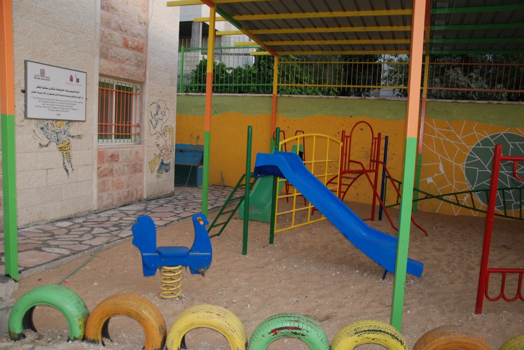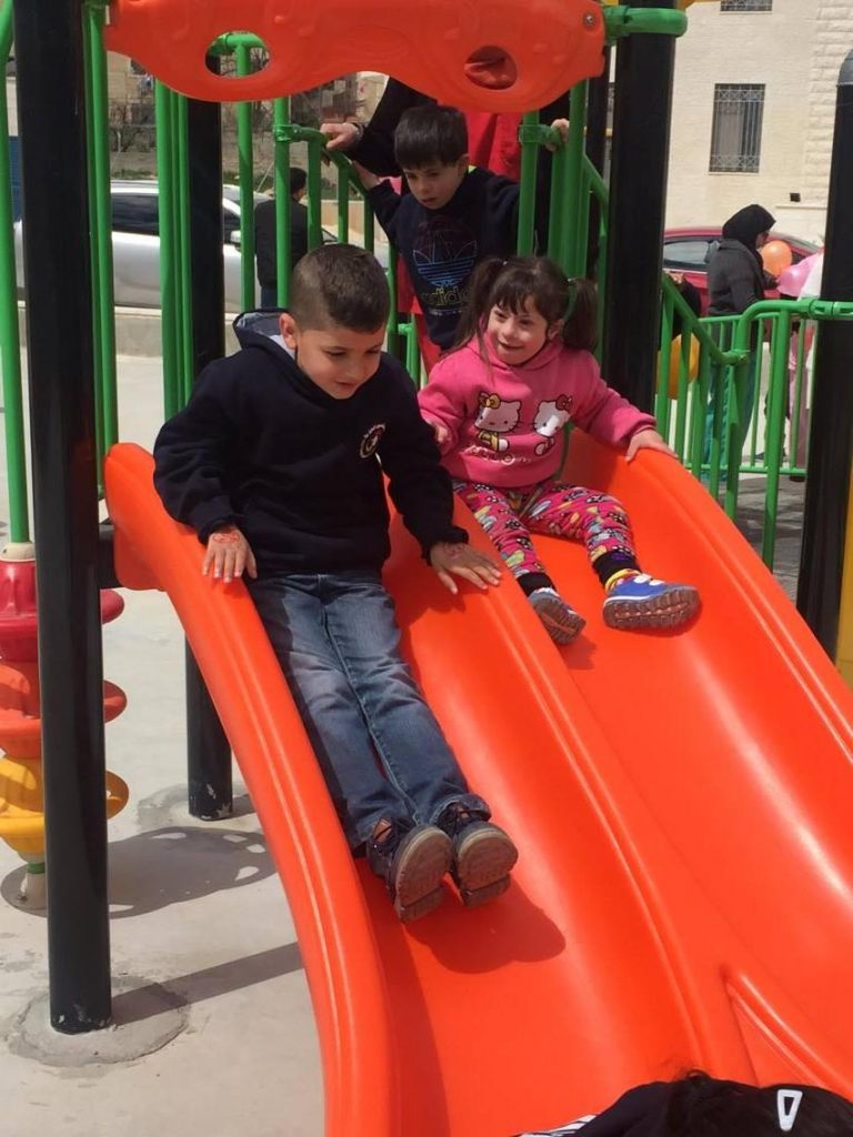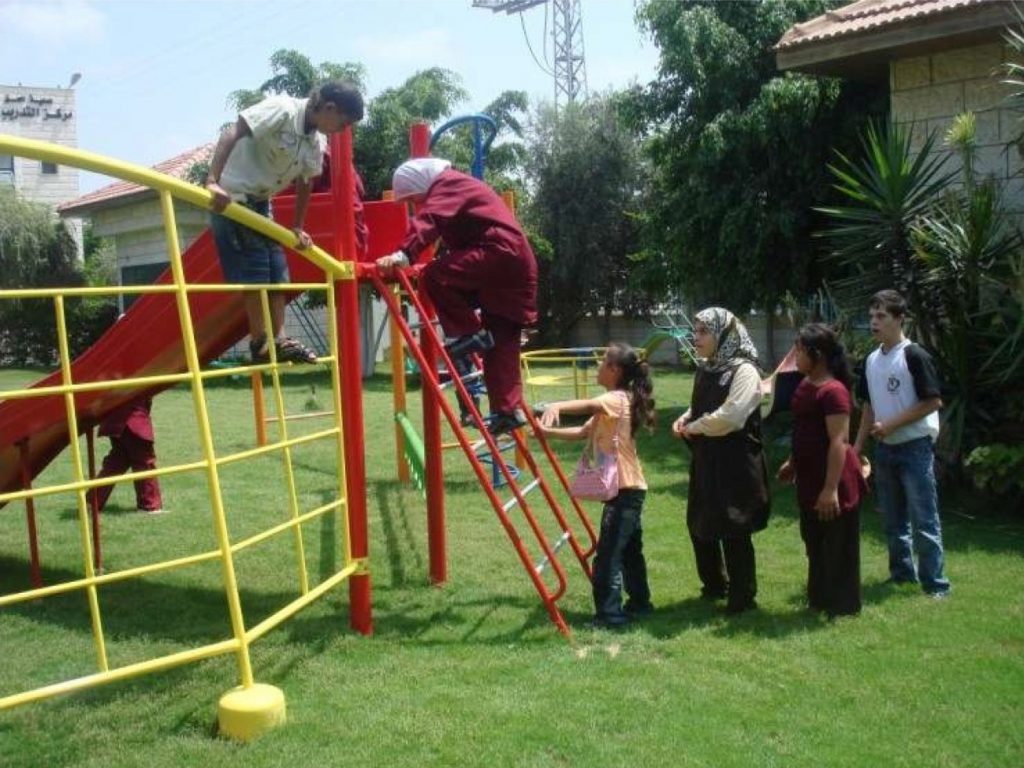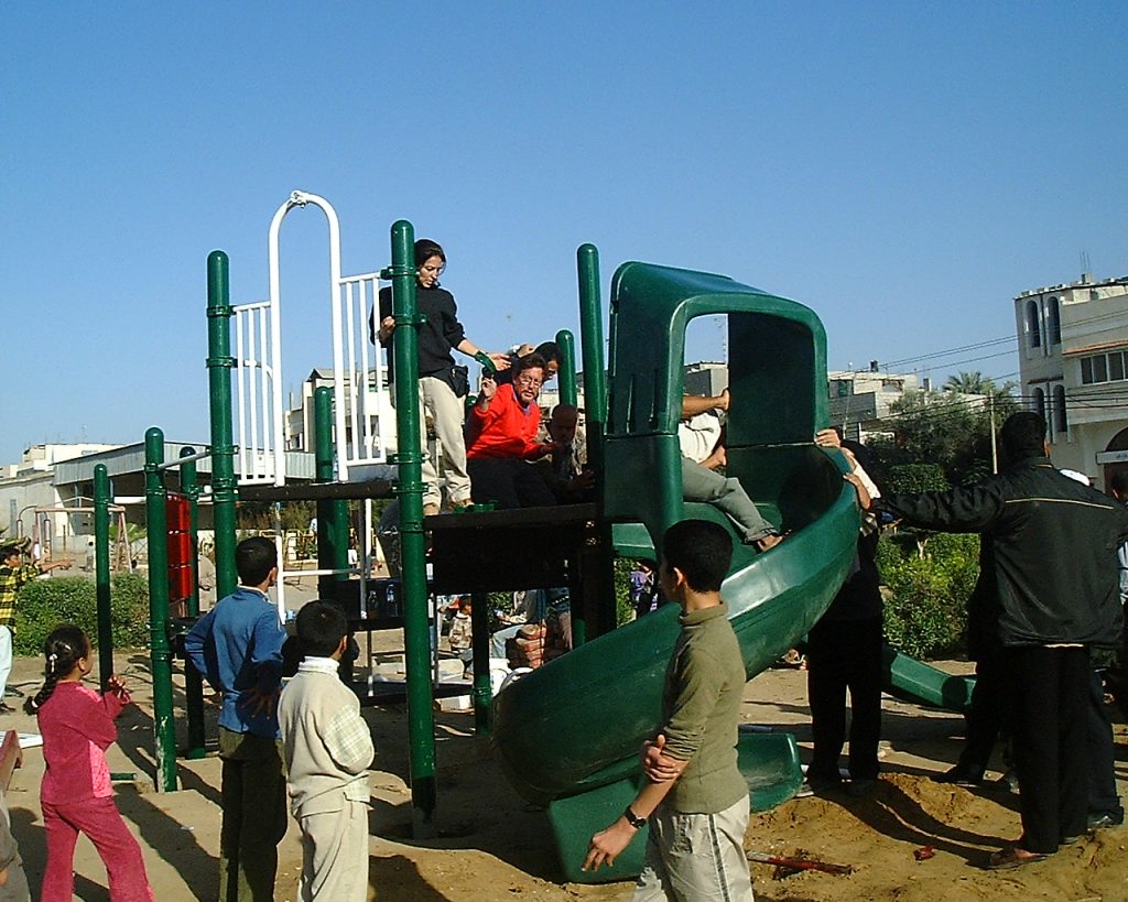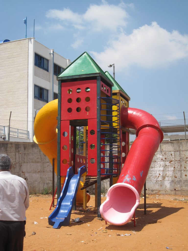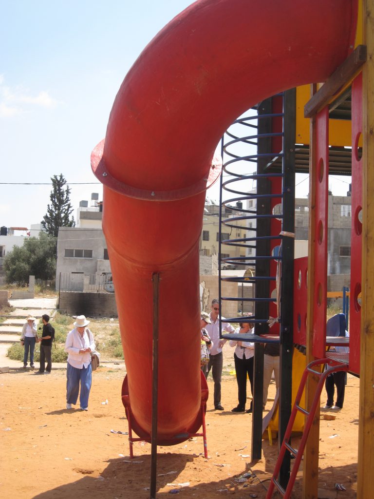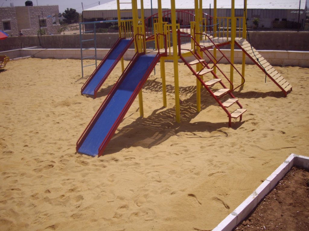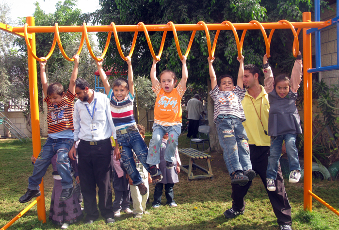 This playground was built at the Right to Life Society, which serves Palestinian children with Down Syndrome and Autism.  Established in 1993, this non-profit helps to nurture these children to live as productive members of society. Through dance classes, arts and crafts, carpentry, and more, the Society aims to help these citizens of Gaza and to raise awareness throughout the region about what their graduates can contribute to their communities.