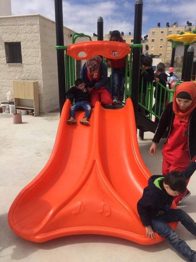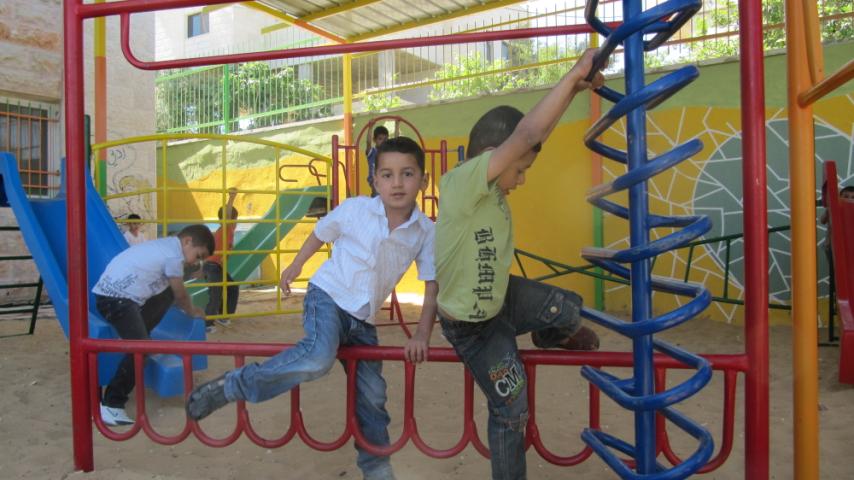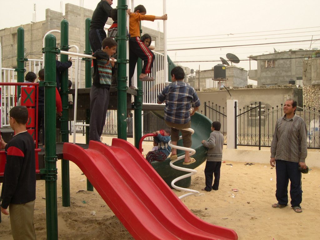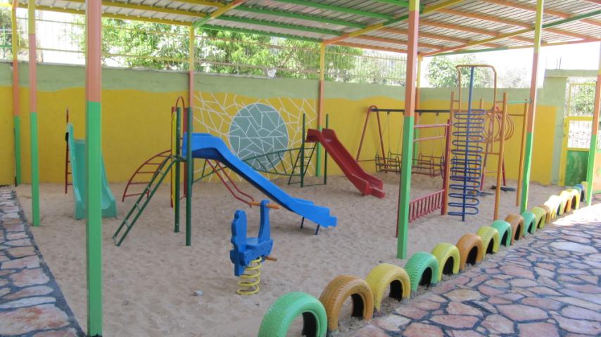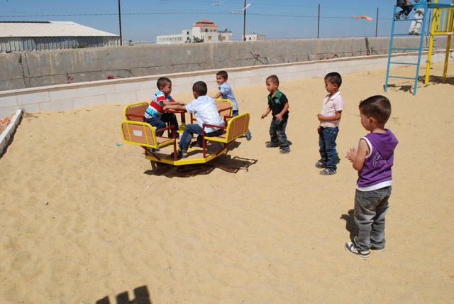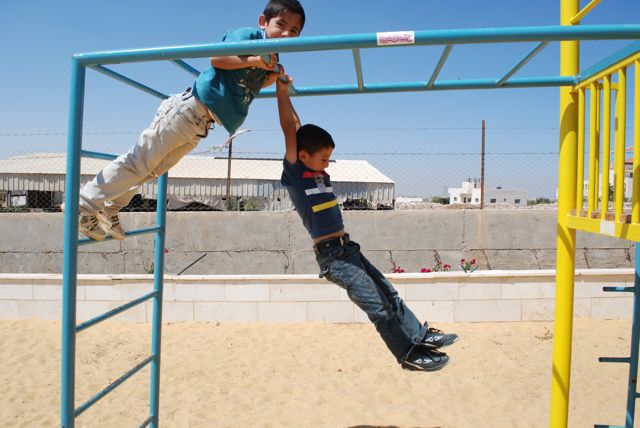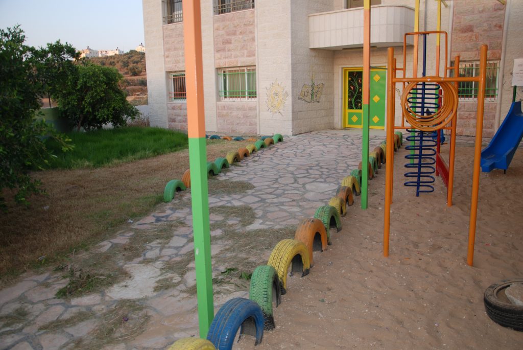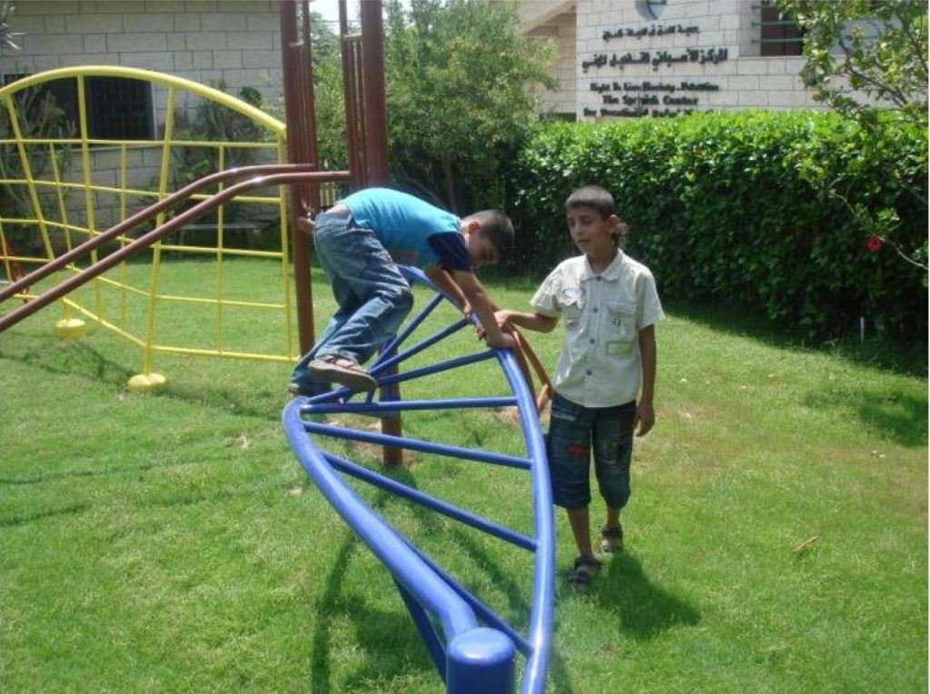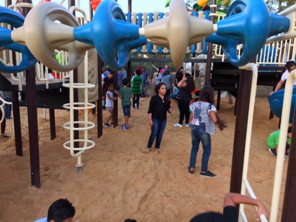 This playground was built at the Right to Life Society, which serves Palestinian children with Down Syndrome and Autism.  Established in 1993, this non-profit helps to nurture these children to live as productive members of society. Through dance classes, arts and crafts, carpentry, and more, the Society aims to help these citizens of Gaza and to raise awareness throughout the region about what their graduates can contribute to their communities.