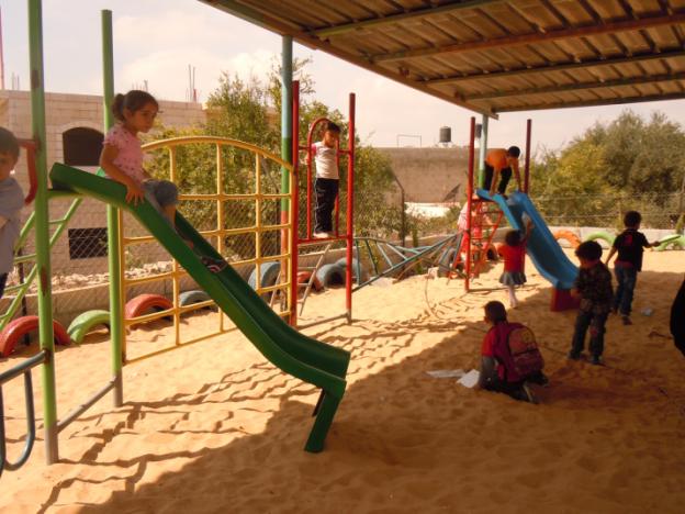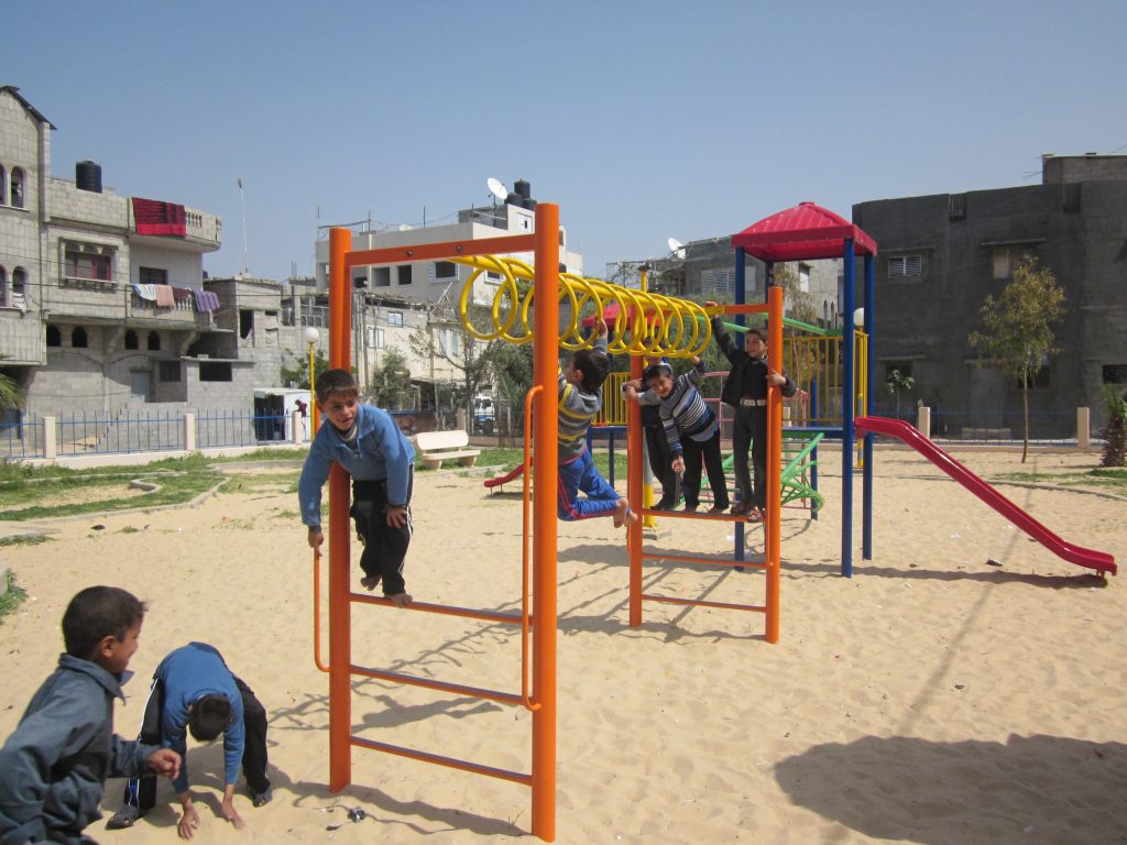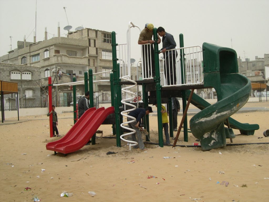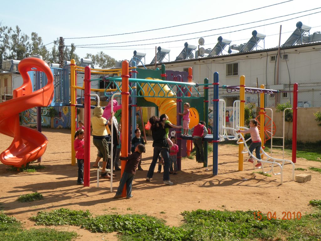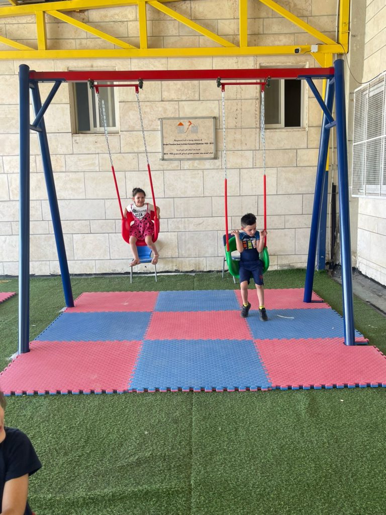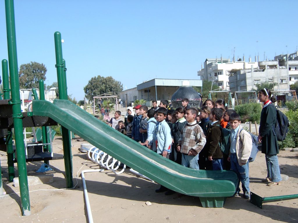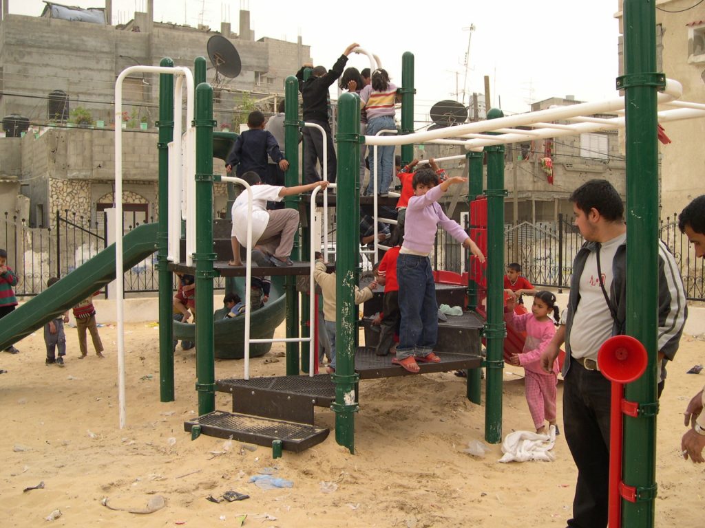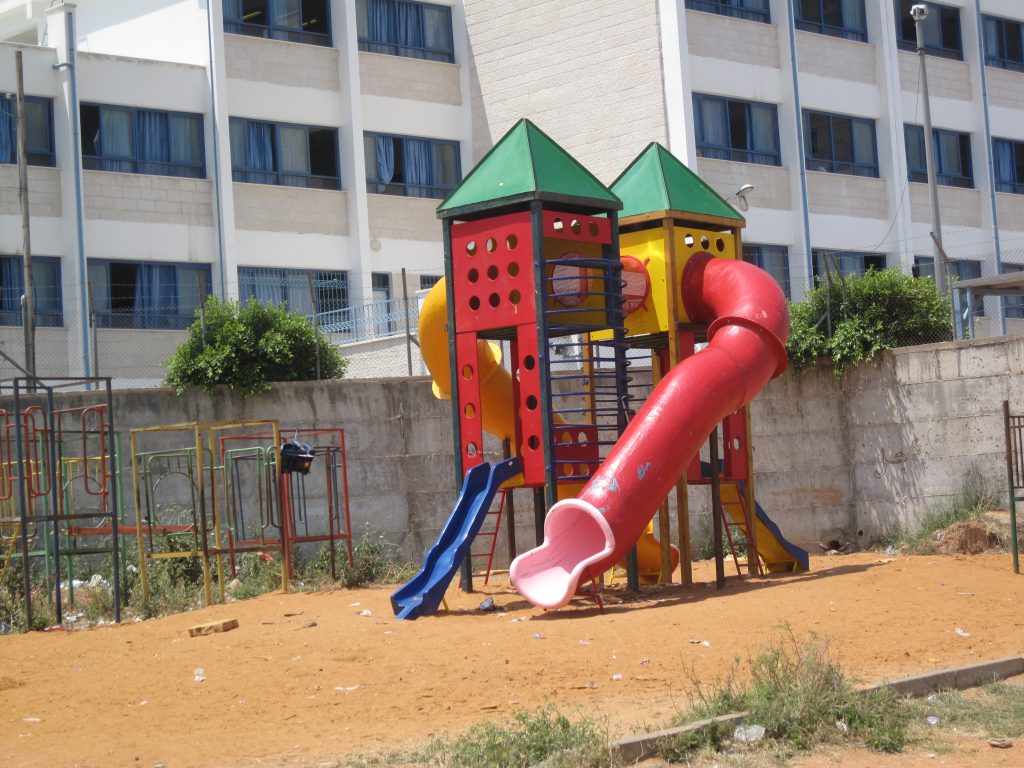 This playground was built at the Right to Life Society, which serves Palestinian children with Down Syndrome and Autism.  Established in 1993, this non-profit helps to nurture these children to live as productive members of society. Through dance classes, arts and crafts, carpentry, and more, the Society aims to help these citizens of Gaza and to raise awareness throughout the region about what their graduates can contribute to their communities.