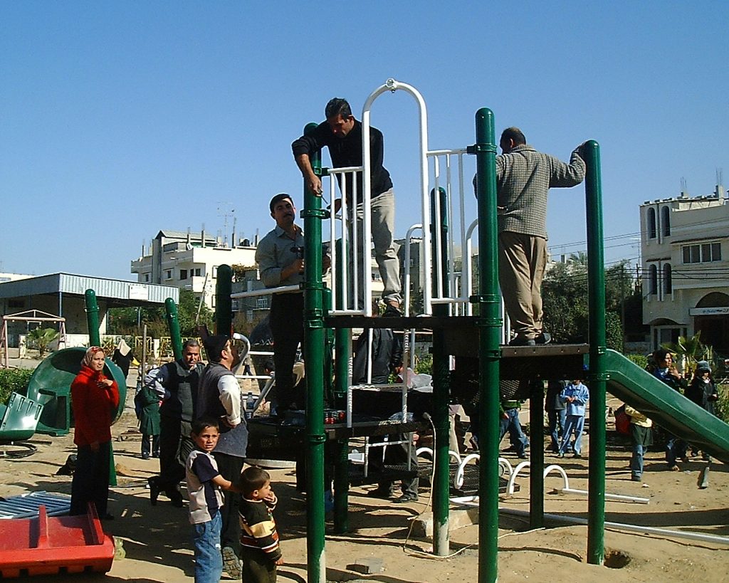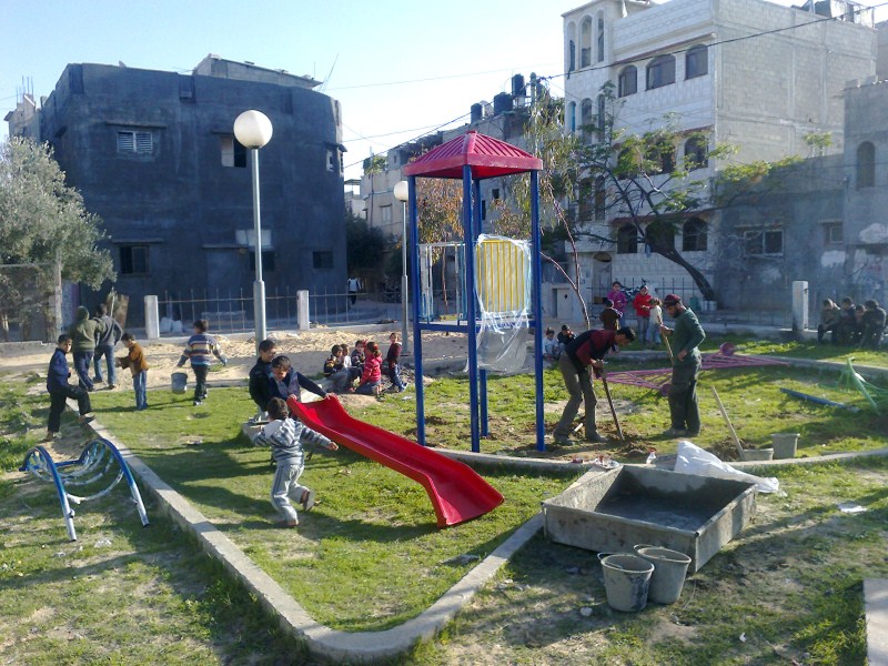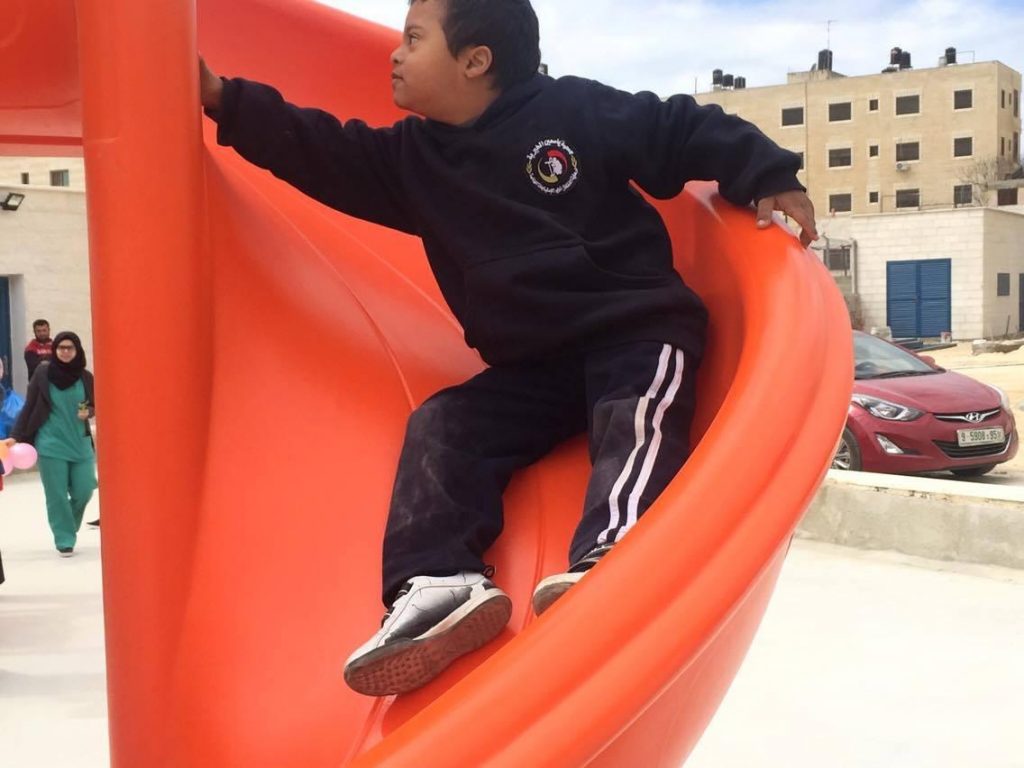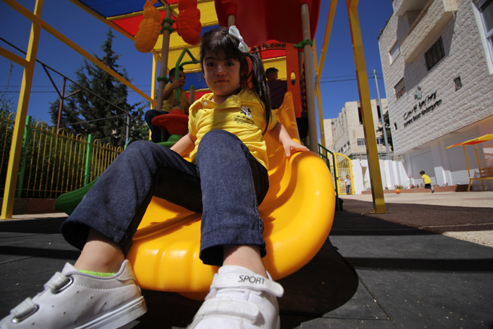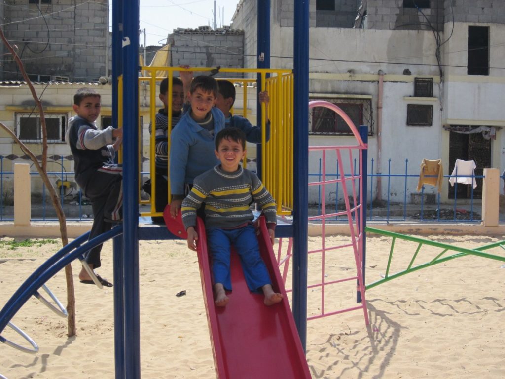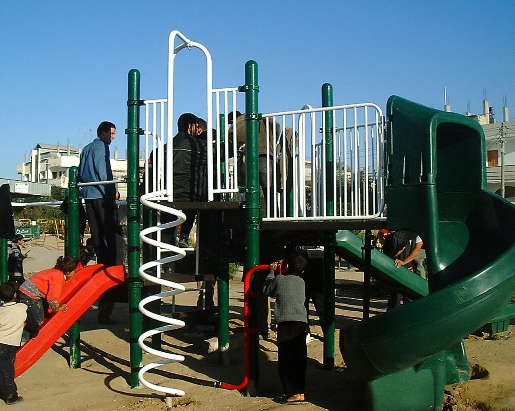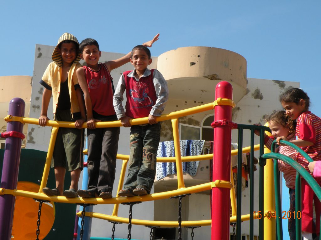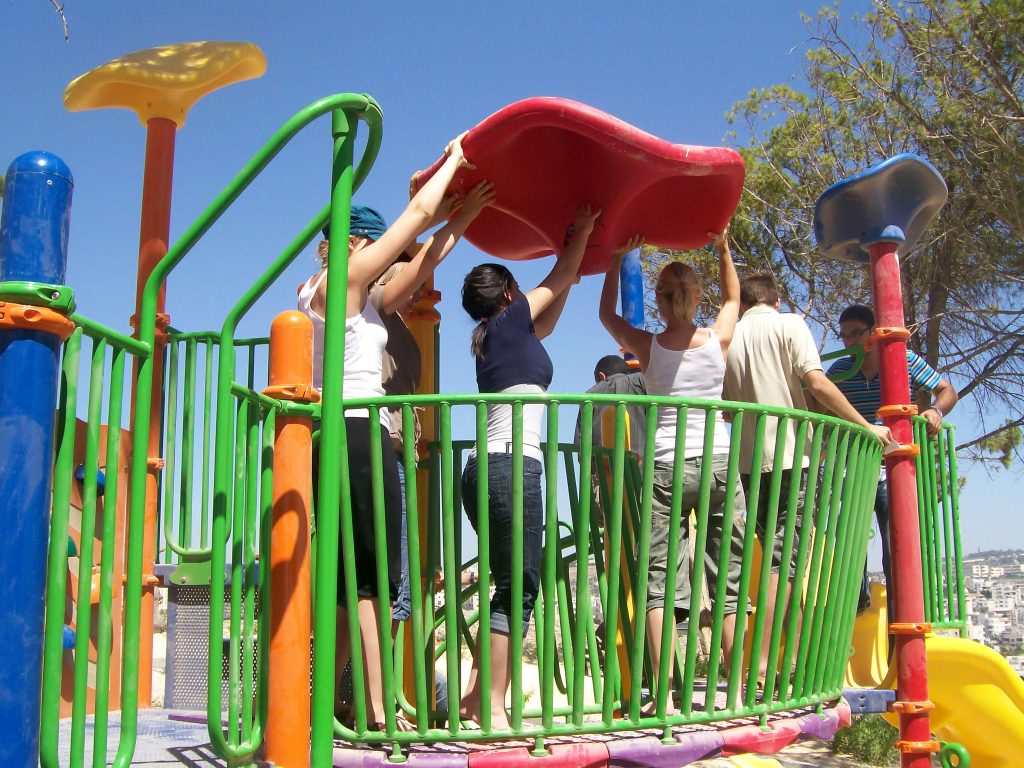 This playground was built at the Right to Life Society, which serves Palestinian children with Down Syndrome and Autism.  Established in 1993, this non-profit helps to nurture these children to live as productive members of society. Through dance classes, arts and crafts, carpentry, and more, the Society aims to help these citizens of Gaza and to raise awareness throughout the region about what their graduates can contribute to their communities.
