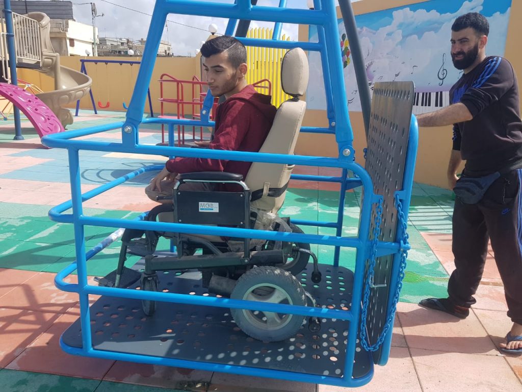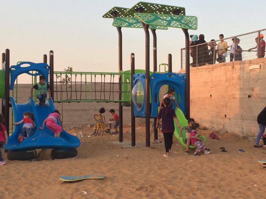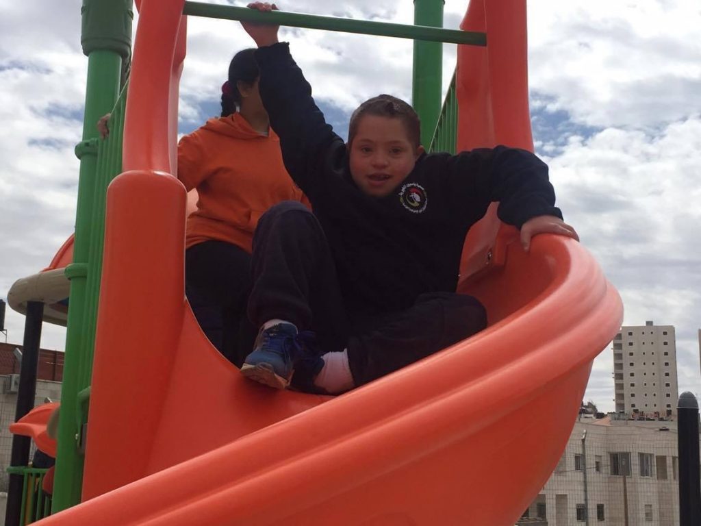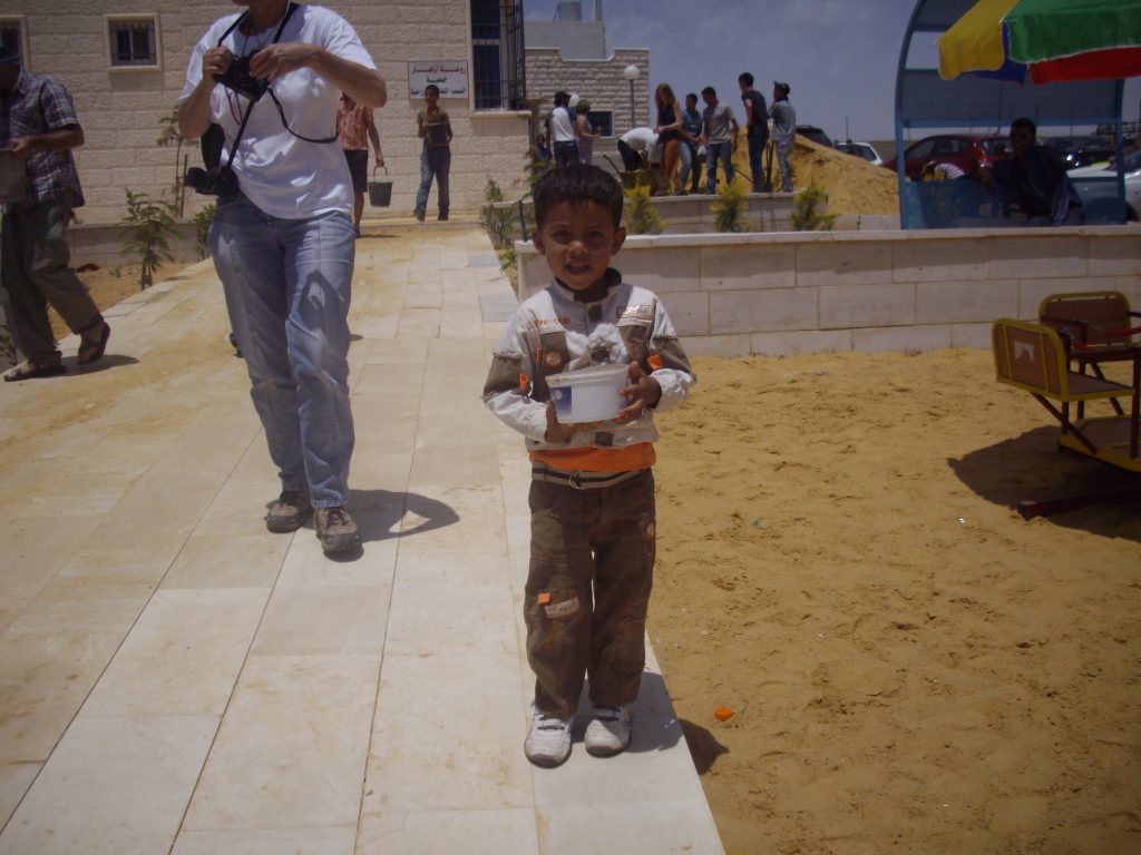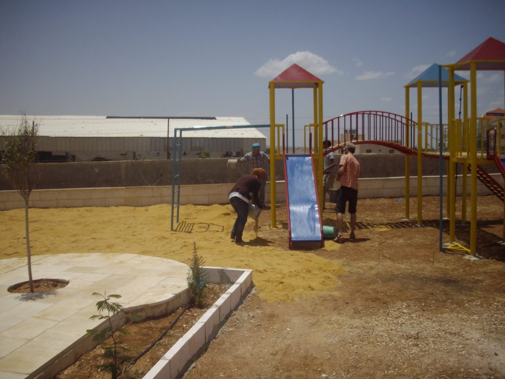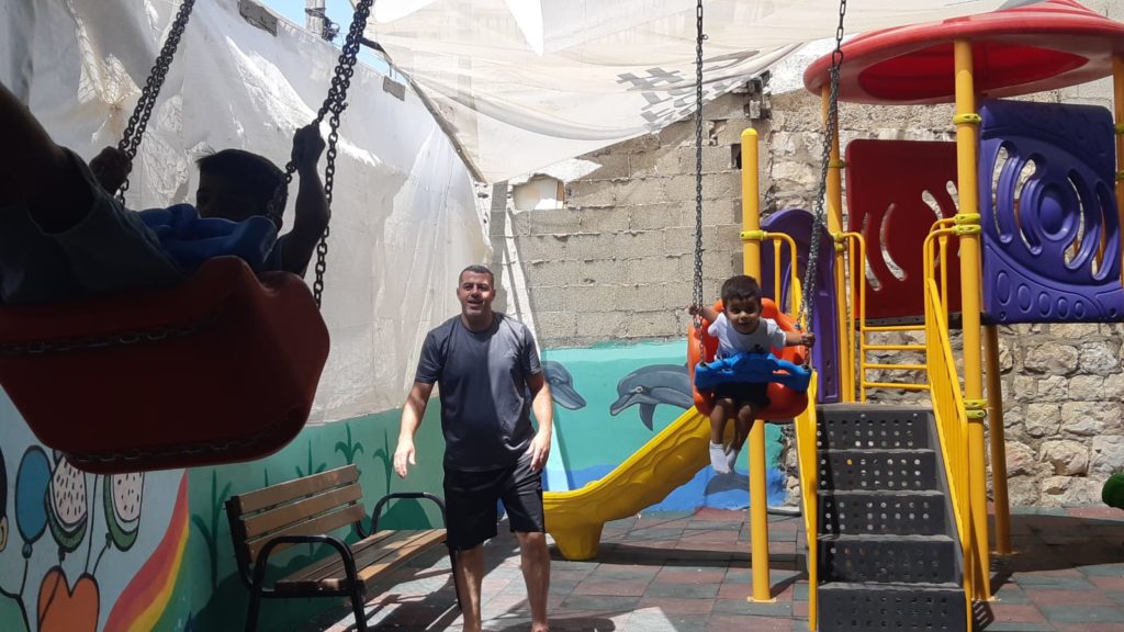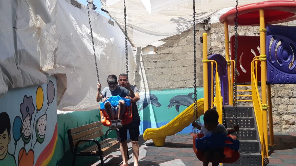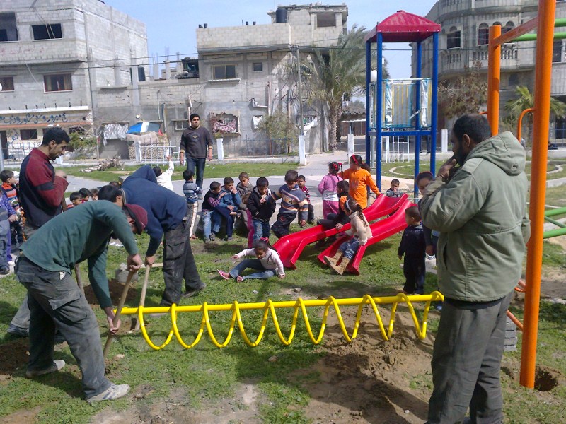 This playground was built at the Right to Life Society, which serves Palestinian children with Down Syndrome and Autism.  Established in 1993, this non-profit helps to nurture these children to live as productive members of society. Through dance classes, arts and crafts, carpentry, and more, the Society aims to help these citizens of Gaza and to raise awareness throughout the region about what their graduates can contribute to their communities.