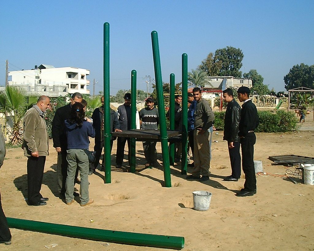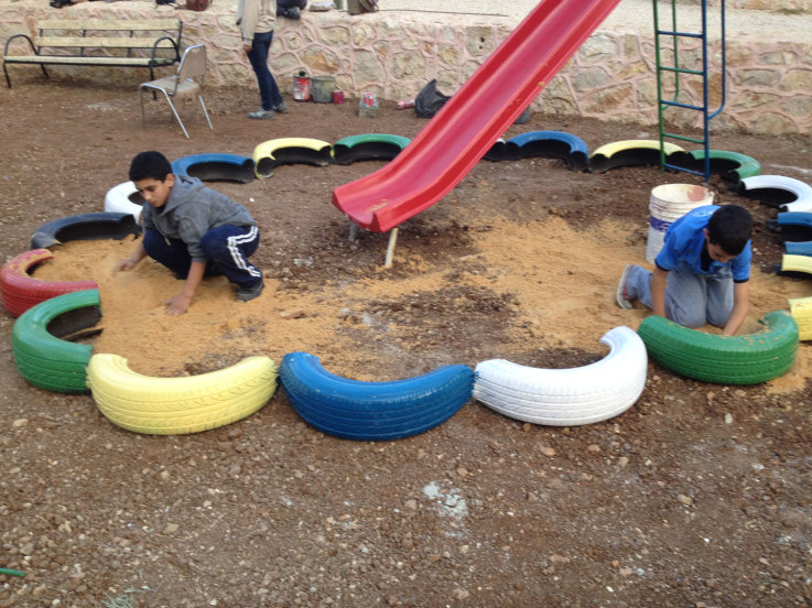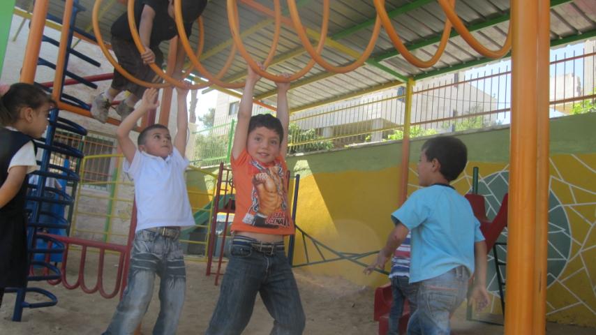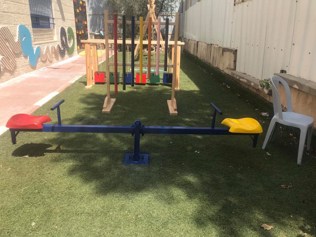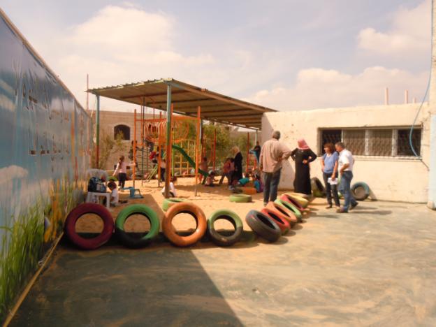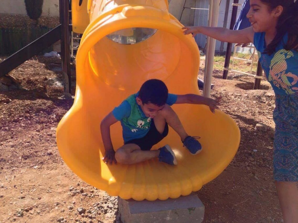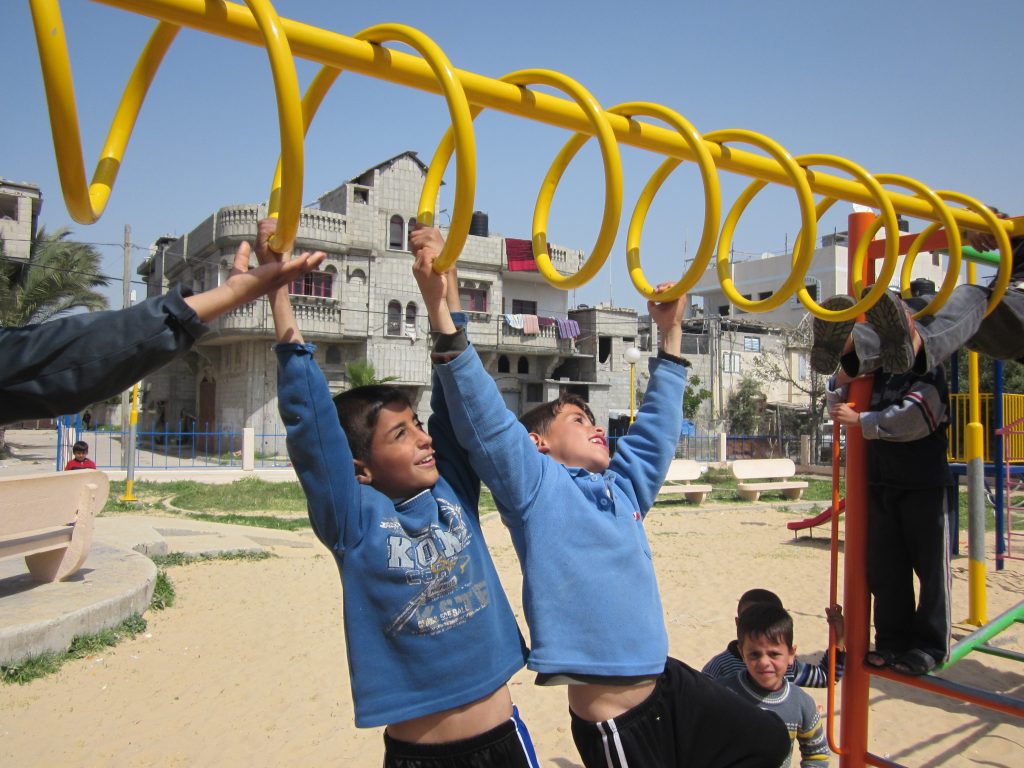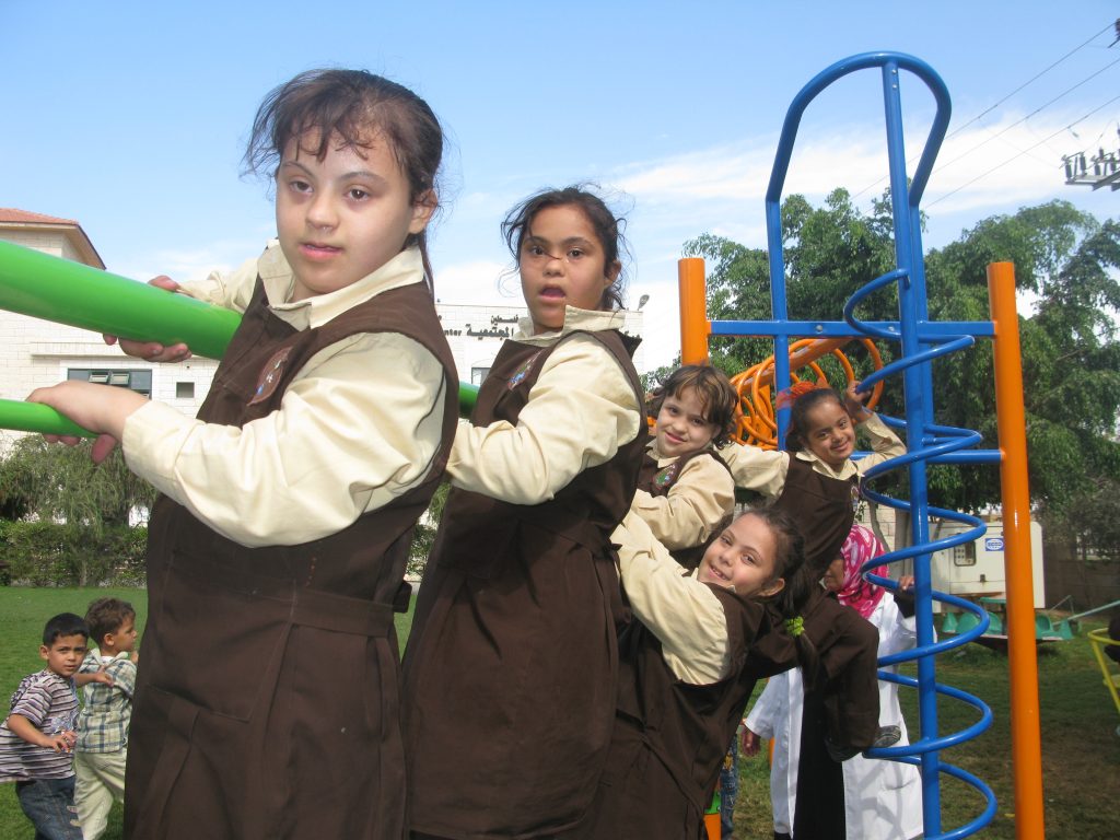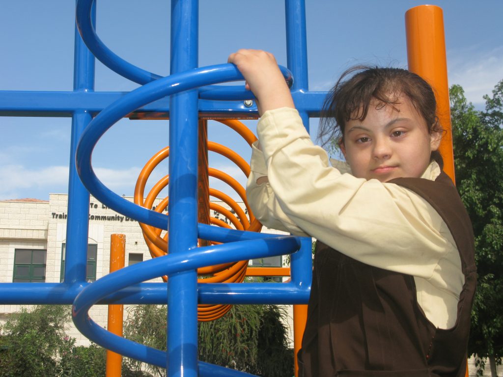 This playground was built at the Right to Life Society, which serves Palestinian children with Down Syndrome and Autism.  Established in 1993, this non-profit helps to nurture these children to live as productive members of society. Through dance classes, arts and crafts, carpentry, and more, the Society aims to help these citizens of Gaza and to raise awareness throughout the region about what their graduates can contribute to their communities.