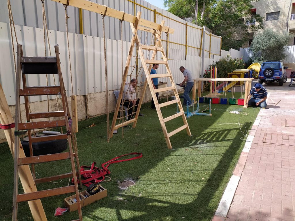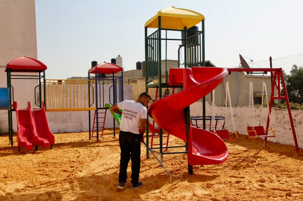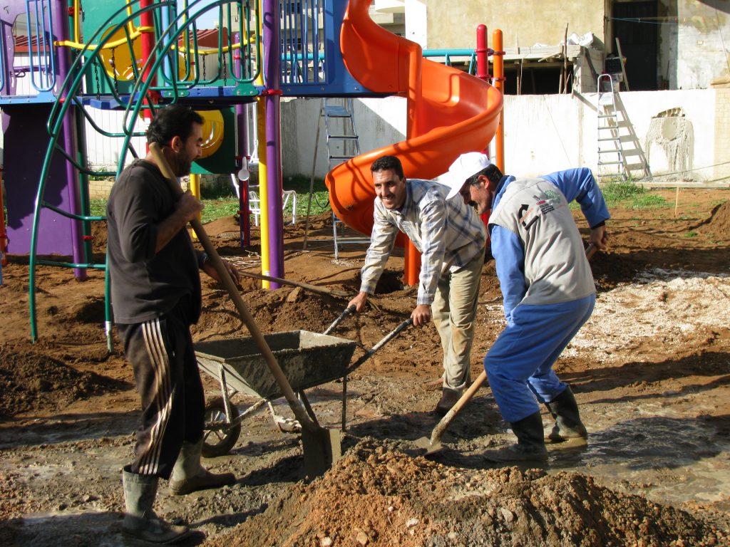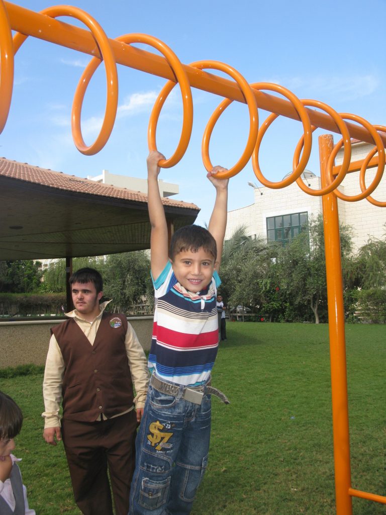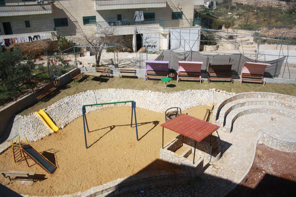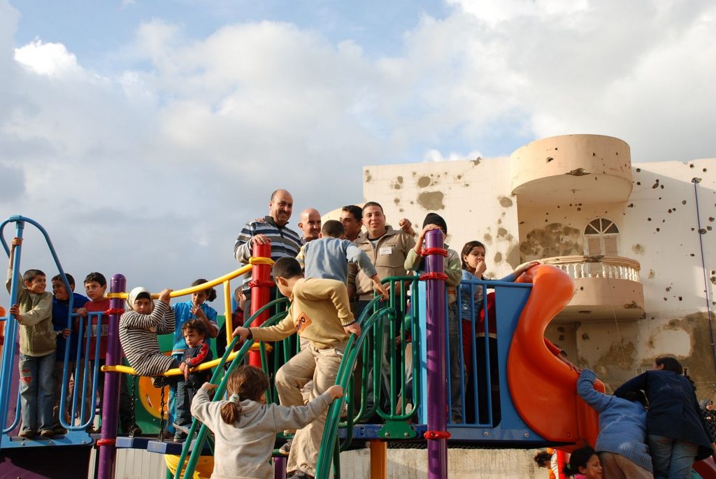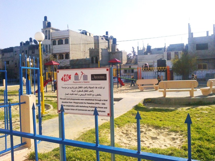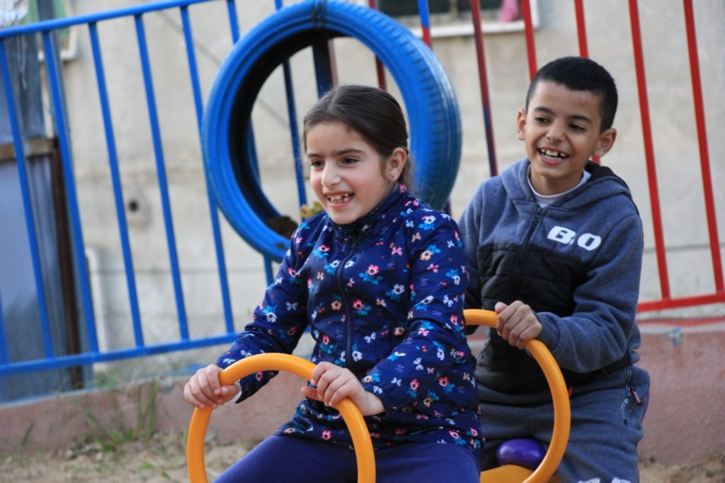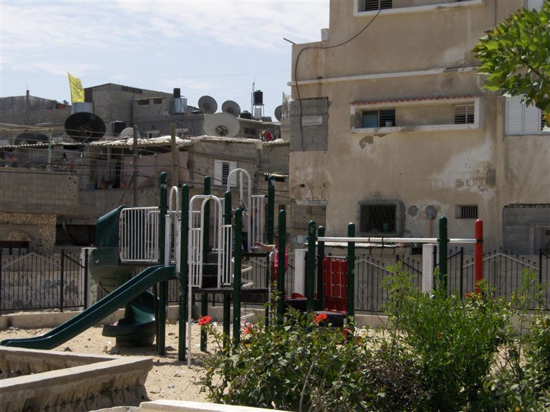 This playground was built at the Right to Life Society, which serves Palestinian children with Down Syndrome and Autism.  Established in 1993, this non-profit helps to nurture these children to live as productive members of society. Through dance classes, arts and crafts, carpentry, and more, the Society aims to help these citizens of Gaza and to raise awareness throughout the region about what their graduates can contribute to their communities.