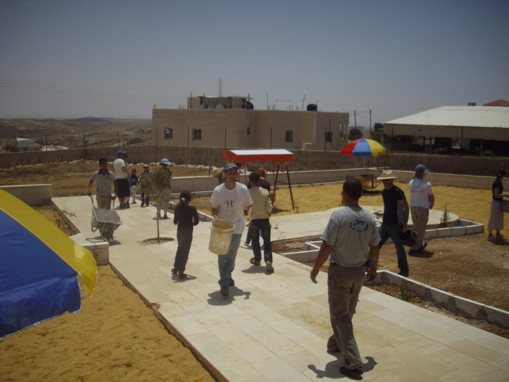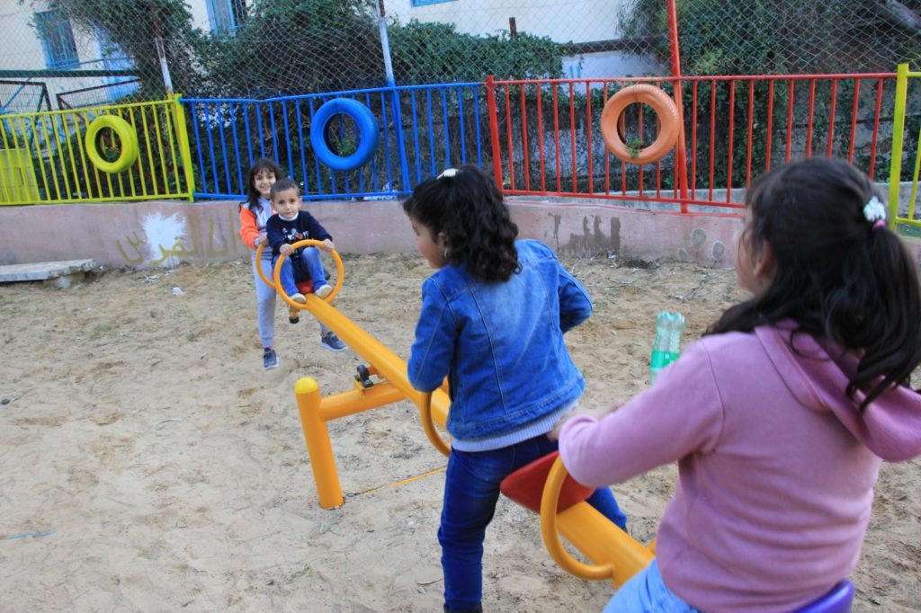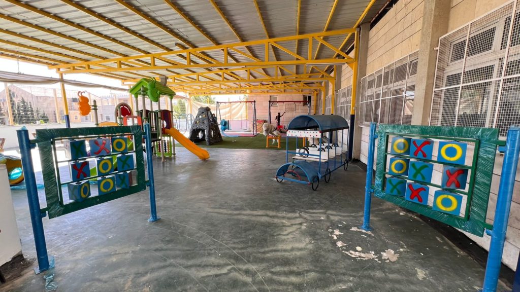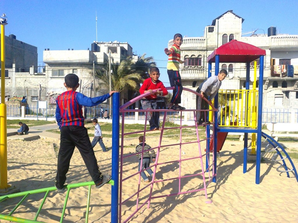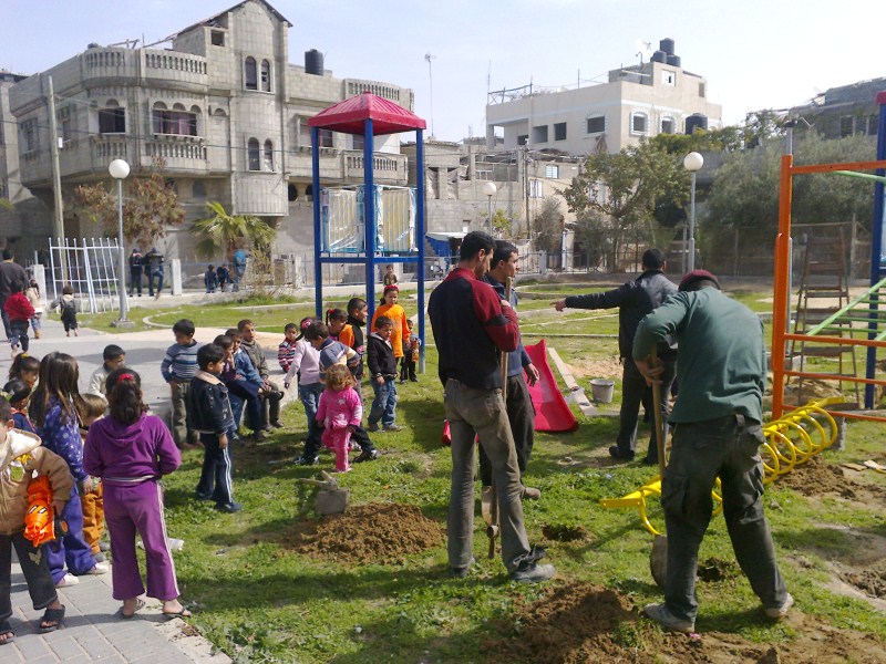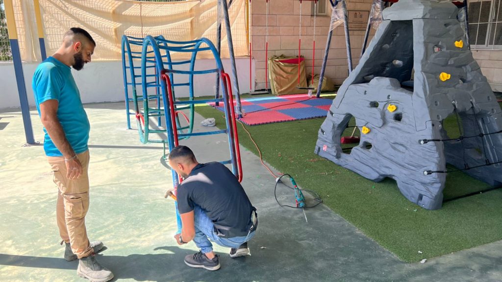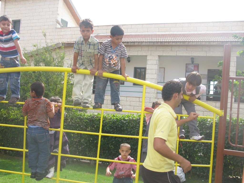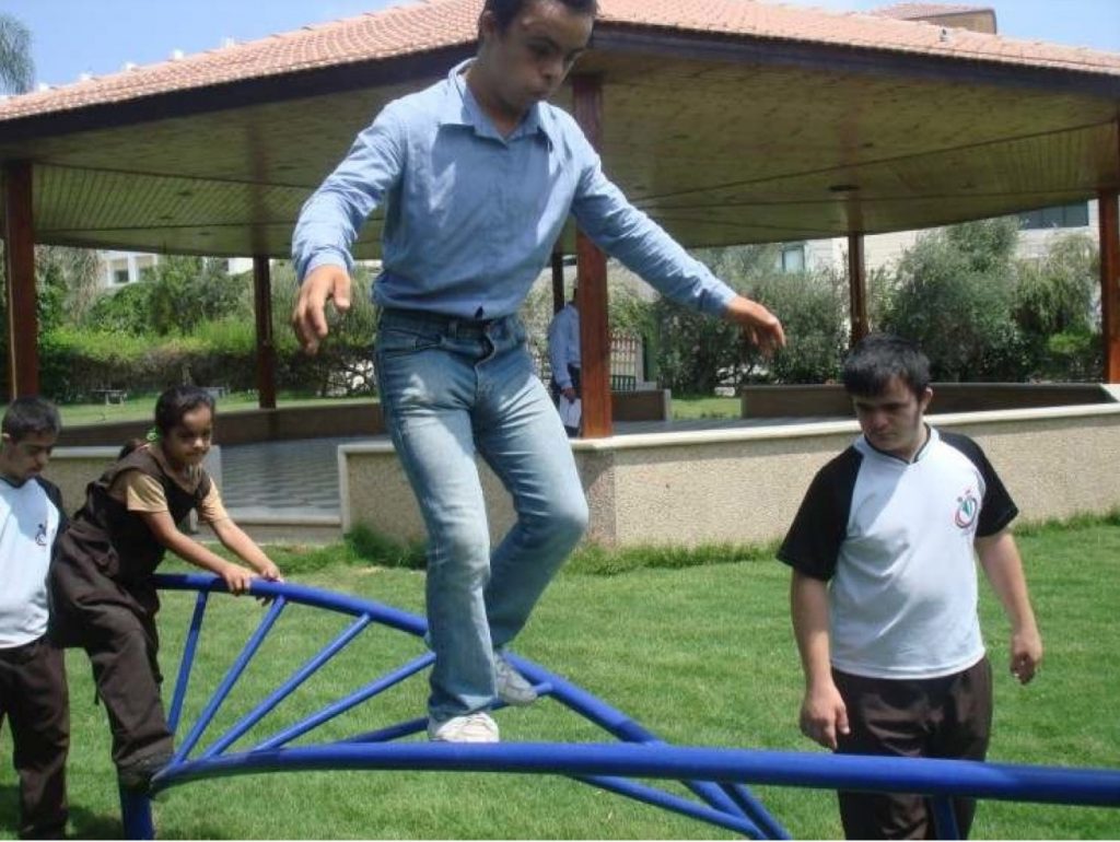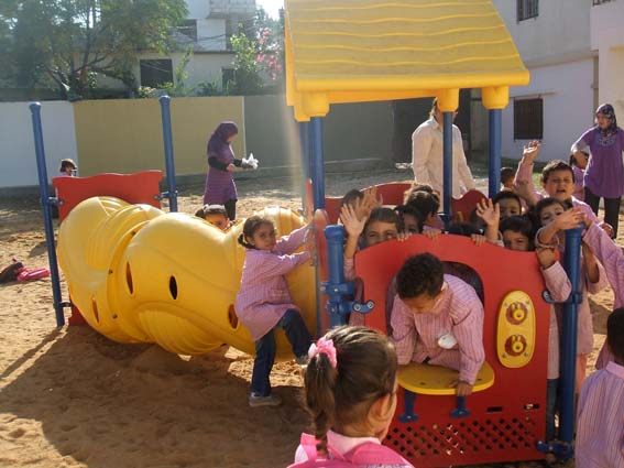 This playground was built at the Right to Life Society, which serves Palestinian children with Down Syndrome and Autism.  Established in 1993, this non-profit helps to nurture these children to live as productive members of society. Through dance classes, arts and crafts, carpentry, and more, the Society aims to help these citizens of Gaza and to raise awareness throughout the region about what their graduates can contribute to their communities.
