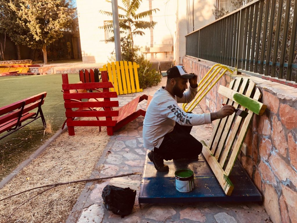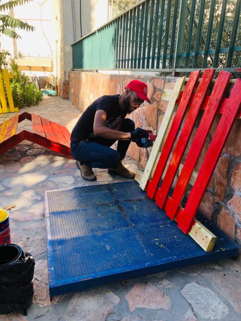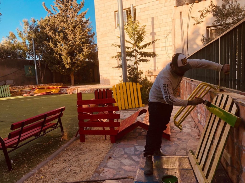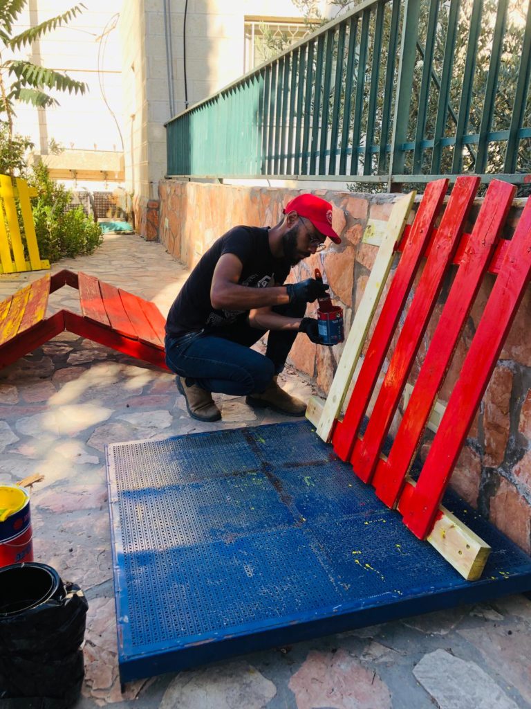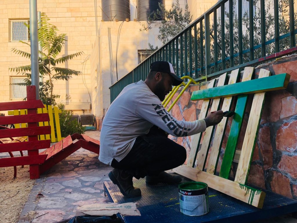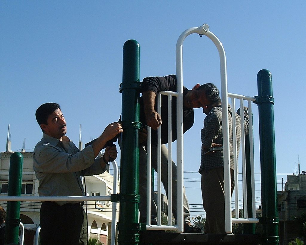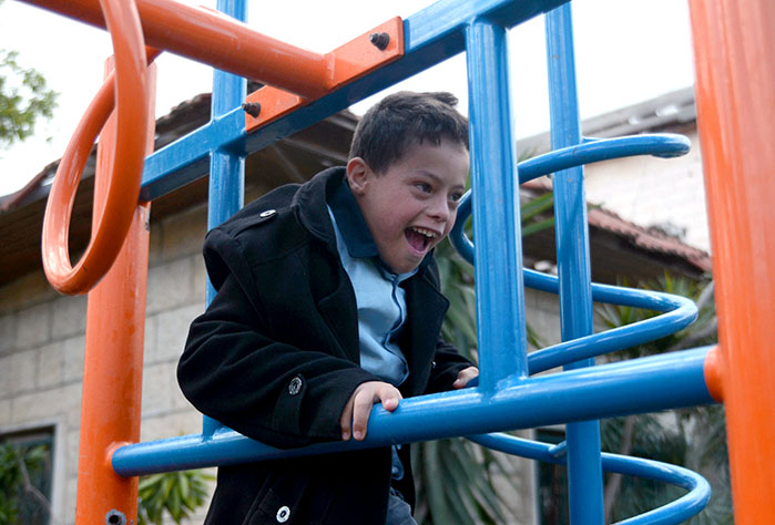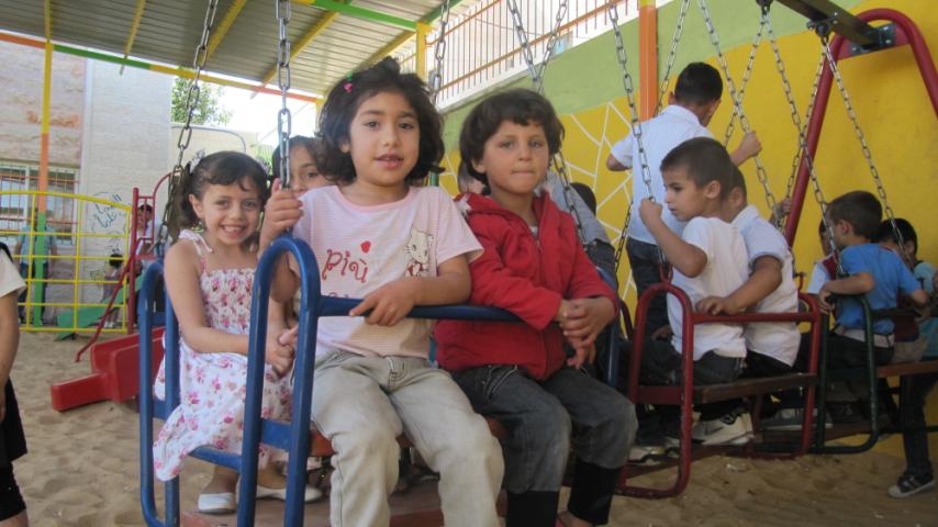This playground was built at the Right to Life Society, which serves Palestinian children with Down Syndrome and Autism.  Established in 1993, this non-profit helps to nurture these children to live as productive members of society. Through dance classes, arts and crafts, carpentry, and more, the Society aims to help these citizens of Gaza and to raise awareness throughout the region about what their graduates can contribute to their communities.