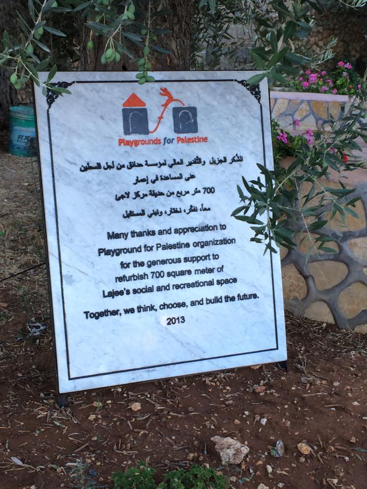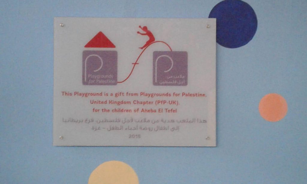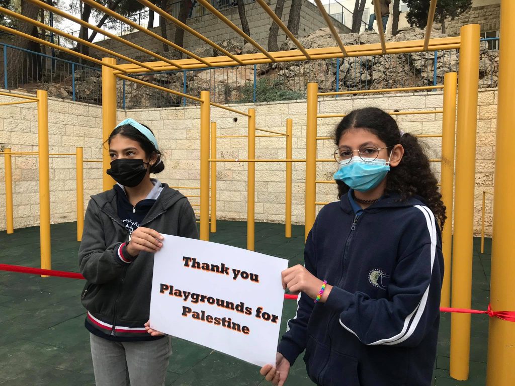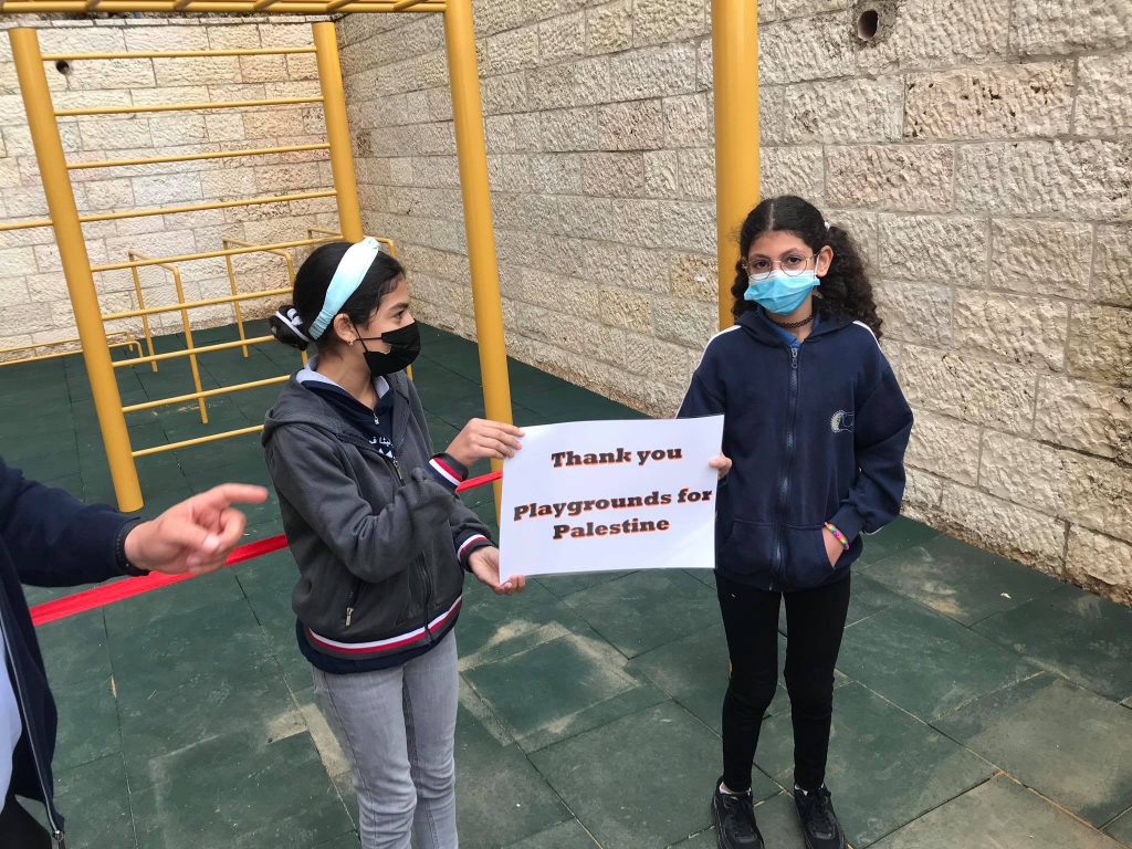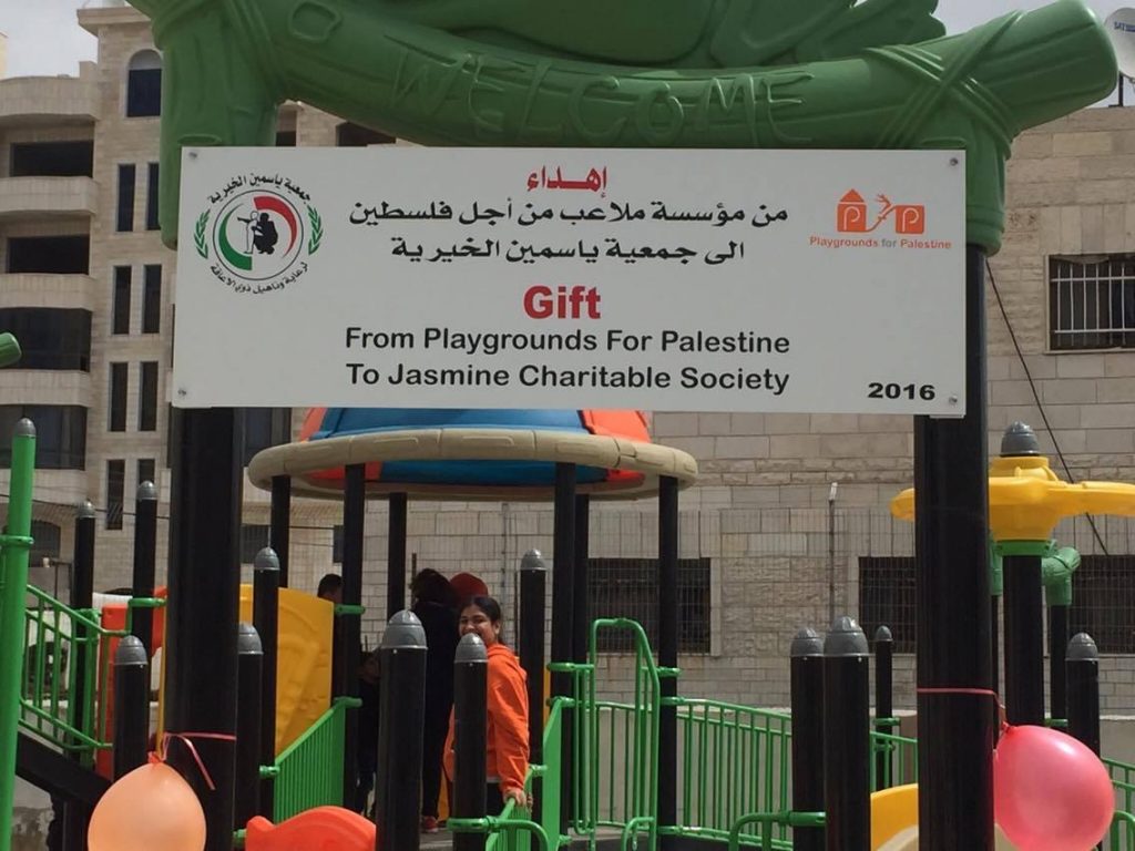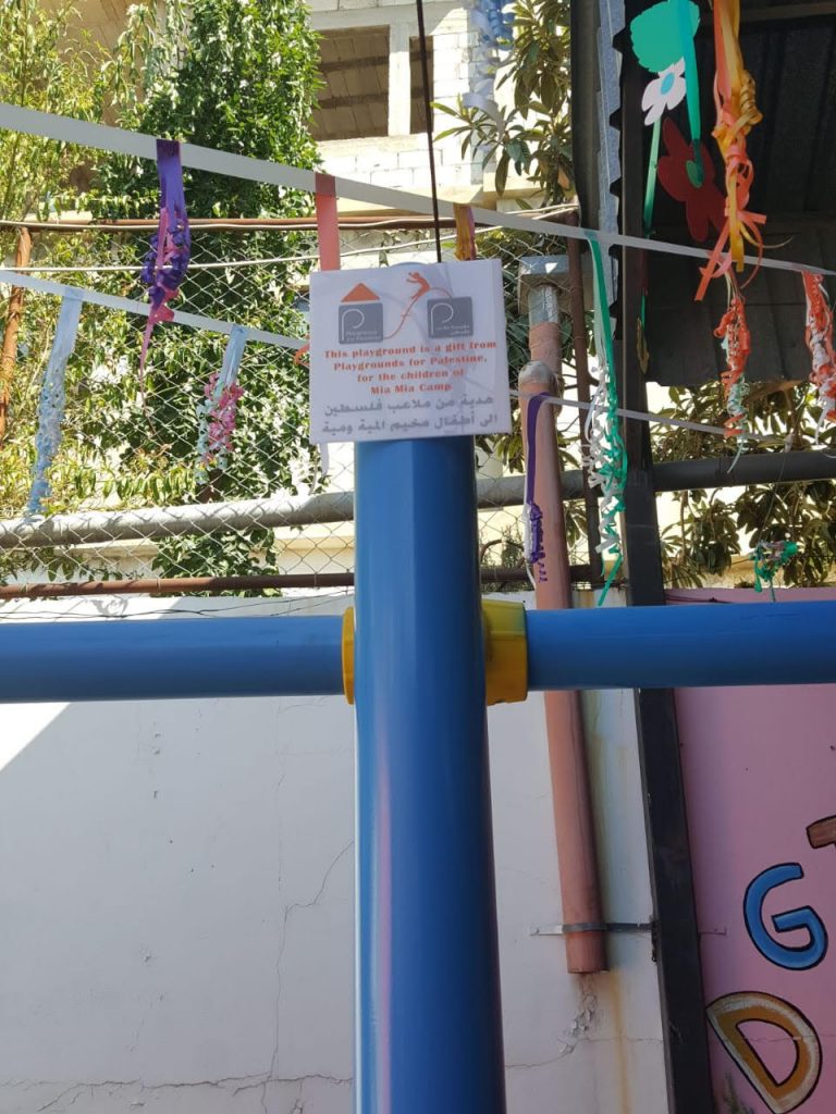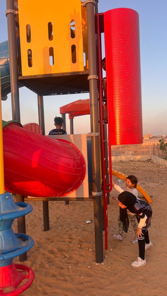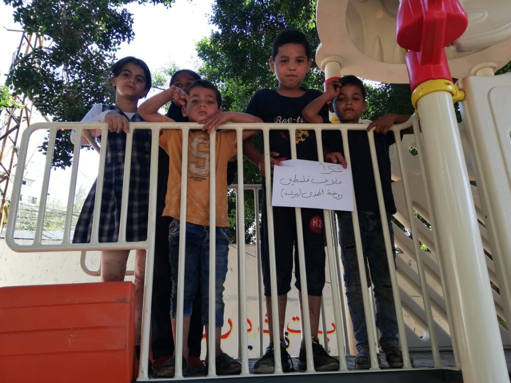 The Jenin refugee camp is honored to present our deepest thanks and gratitude to Playgrounds for Palestine for the financing of the children’s playground in the Jenin refugee camp, which was carried out in coordination with the ANERA foundation. It has had a great impact in bringing joy and happiness to the hearts of children in the camp whose difficult and harsh living conditions lack places of play and recreation in their area of residence. Thank you for this generous gesture.