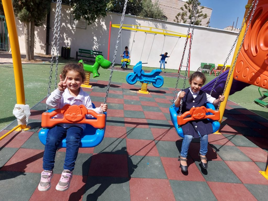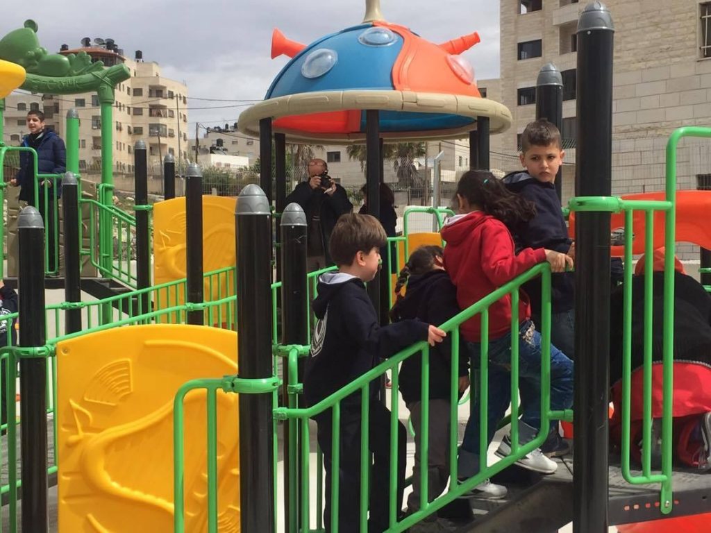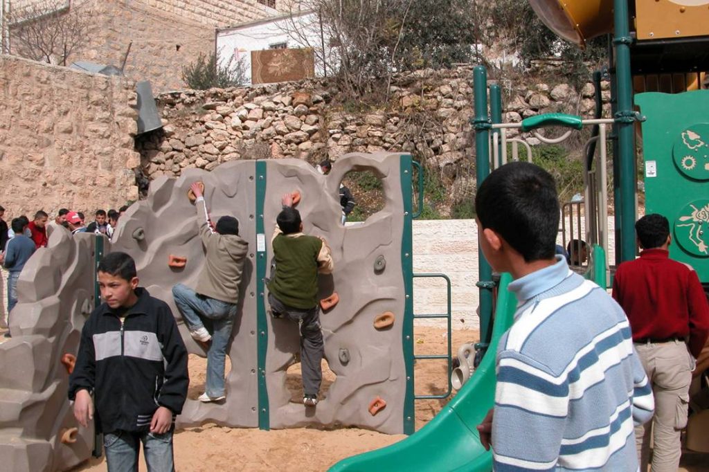This playground now stands at Dar Al Kalima School in the shadow of the famous Millennium Stage. Thanks to the support of Dr. Reverent Mitri Raheb, the playground is available to all the local children of Bethlehem.