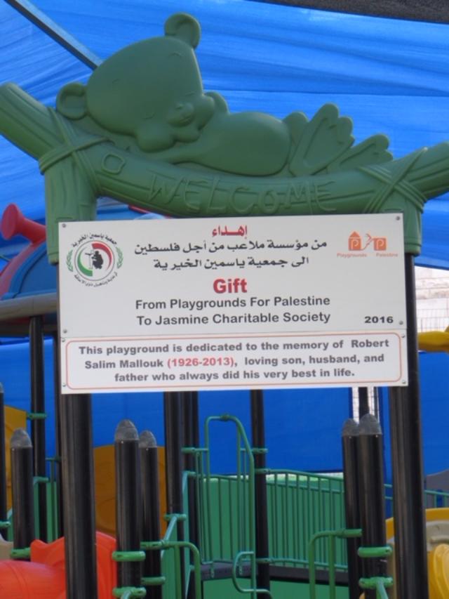This playground is located at the Al Yasmin Society, which serves the disabled.  Support for this playground comes from the generosity of the Mallouk Family, in memory of Robert Mallouk.