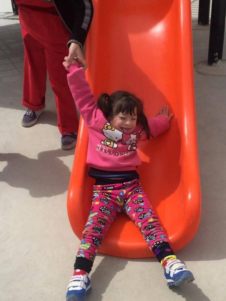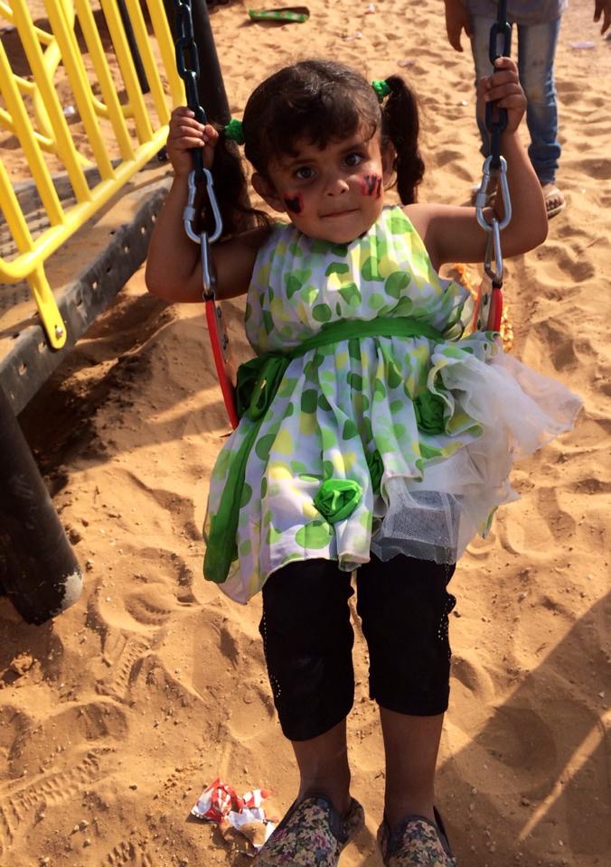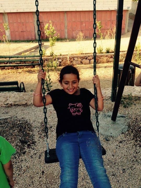 Abir’s Garden, was built in a very small village on the southern-most edge of the West Bank, south of Hebron, called Al Samoa-Simya. This is the second playground to be built in memory of a 10-year old girl named Abir Aramin, who was shot and killed by an Israeli sniper.  Abir was the daughter of peace activist, Bassam Aramin, a founding member of Combatants for Peace.  On the fourth anniversary of her death, villagers of Al Samoa-Simya for the opening ceremony of Abir’s Garden: A Safe Place to Grow.
