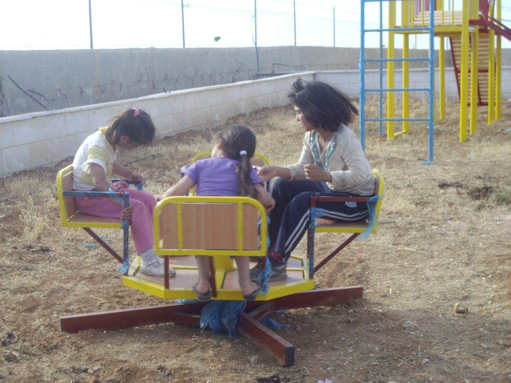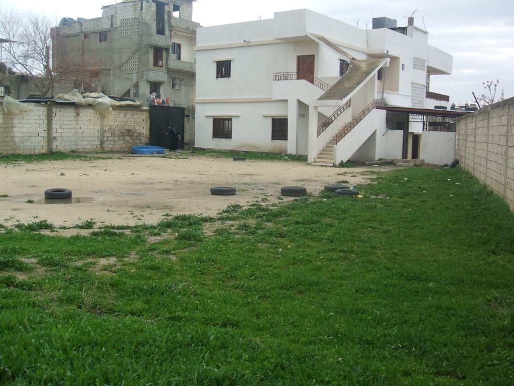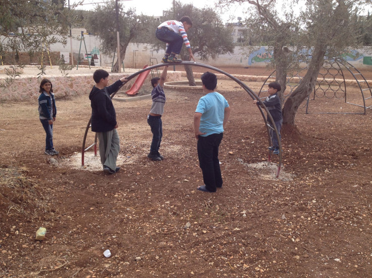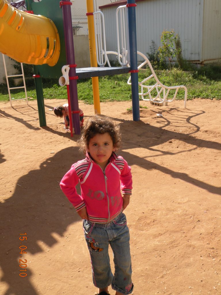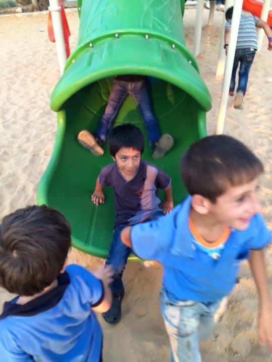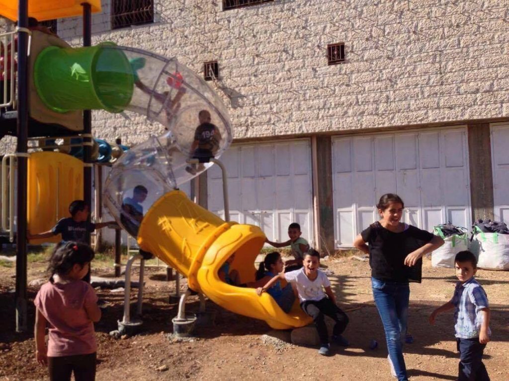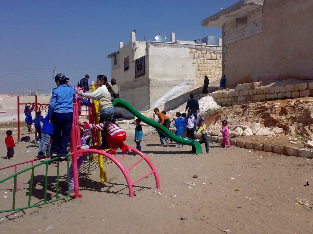 This was our first and only playground built in Syria, shortly before the outbreak of the civil war.  It is located in the UNRWA refugee camp of Ein el Tal. The refugee camp is the largest official Palestinian refugee camp in Syria. Established between 1948 and 1950, approximately 19,000 Palestinians live in and around the camp. Built from army barracks constructed by Allied Forces during WWII, the shelters of the camp are some of the most unhealthy and unsafe of Syria’s camps.