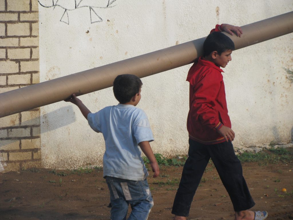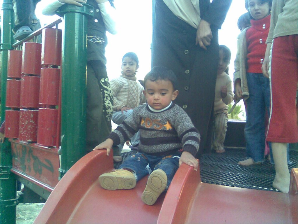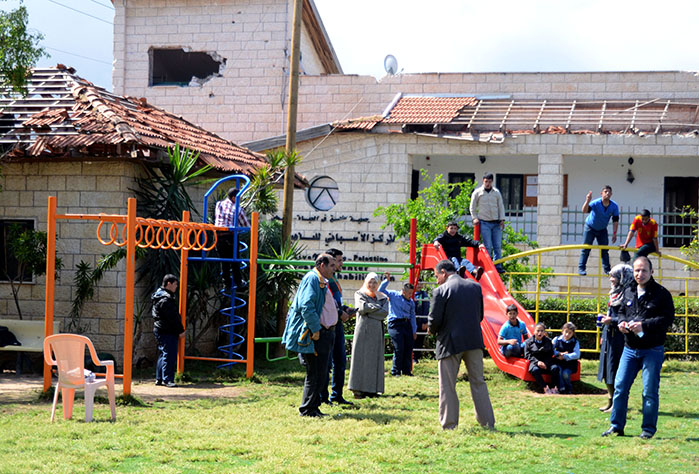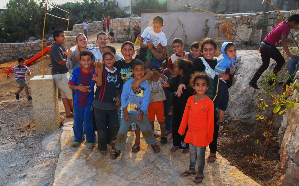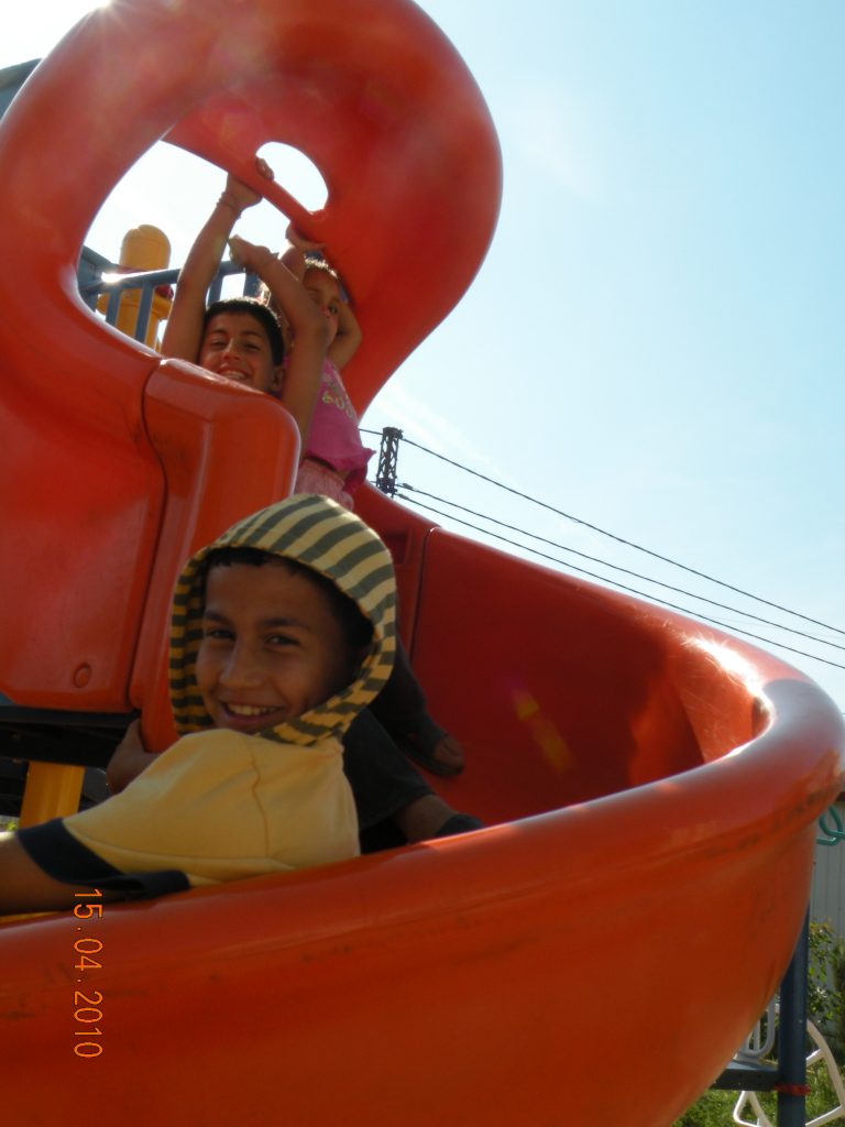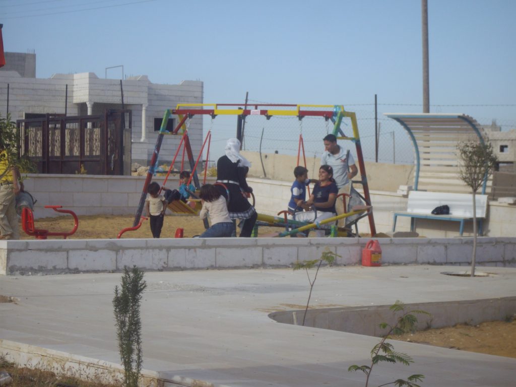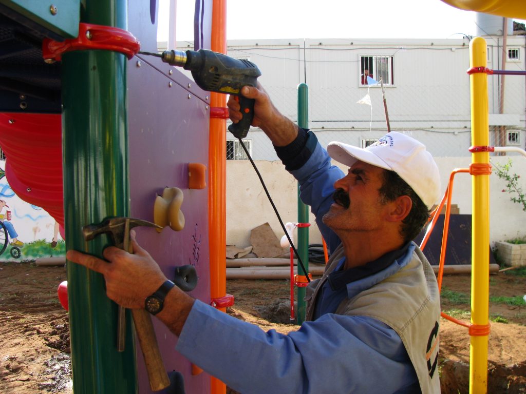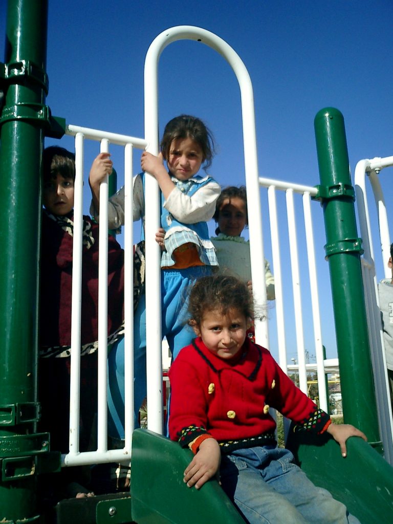This was our first and only playground built in Syria, shortly before the outbreak of the civil war.  It is located in the UNRWA refugee camp of Ein el Tal. The refugee camp is the largest official Palestinian refugee camp in Syria. Established between 1948 and 1950, approximately 19,000 Palestinians live in and around the camp. Built from army barracks constructed by Allied Forces during WWII, the shelters of the camp are some of the most unhealthy and unsafe of Syria’s camps.