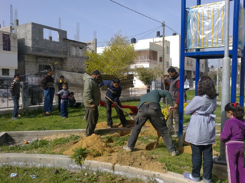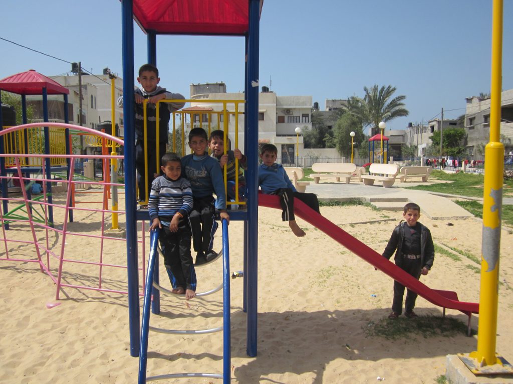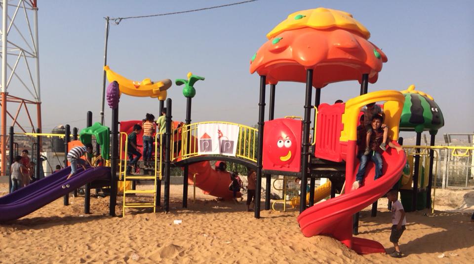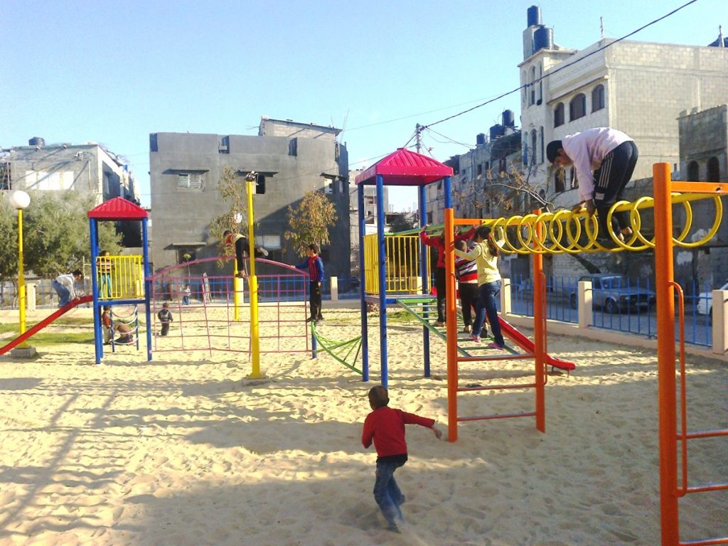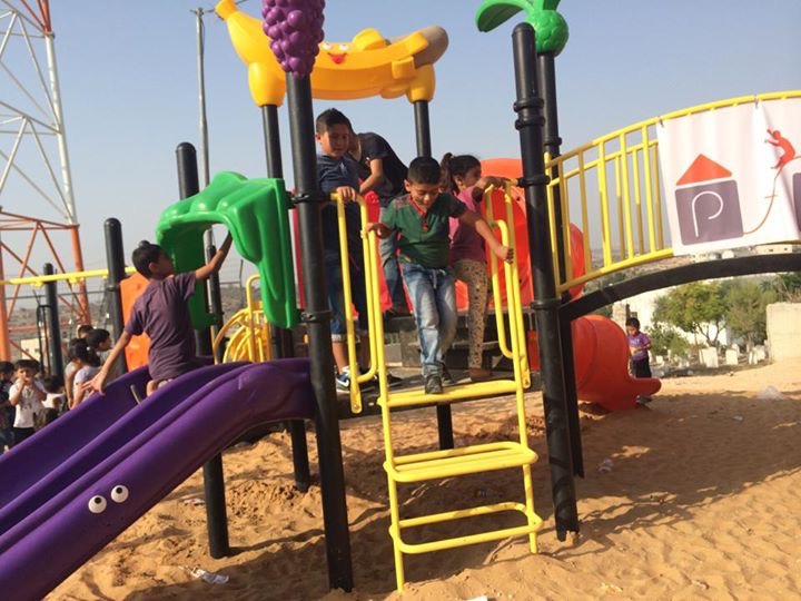 This playground is one of PfP’s most used playgrounds. Located across from the Khan Younis Municipality building in a central location, this playground is used daily by thousands of children. The Khan Younis Municipality assumed responsibility for this playground, including regular maintenance and supervision. The building of this playground was particularly enjoyable since PfP had close to 300 kids helping them everyday.