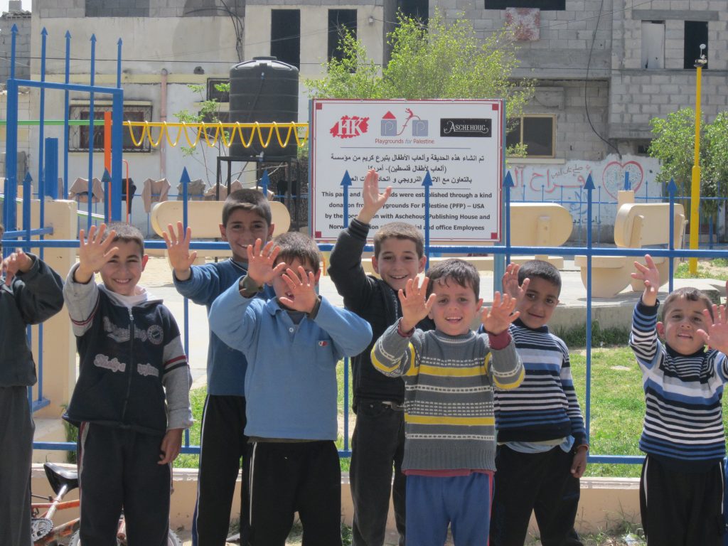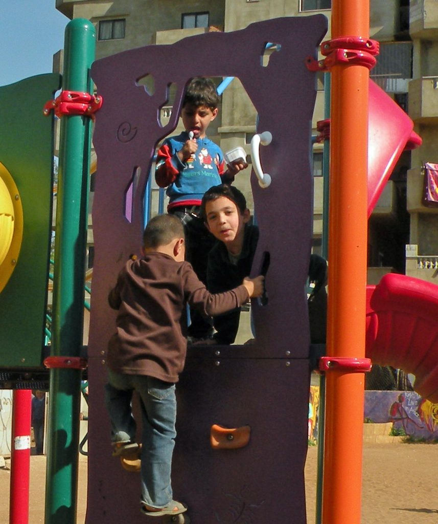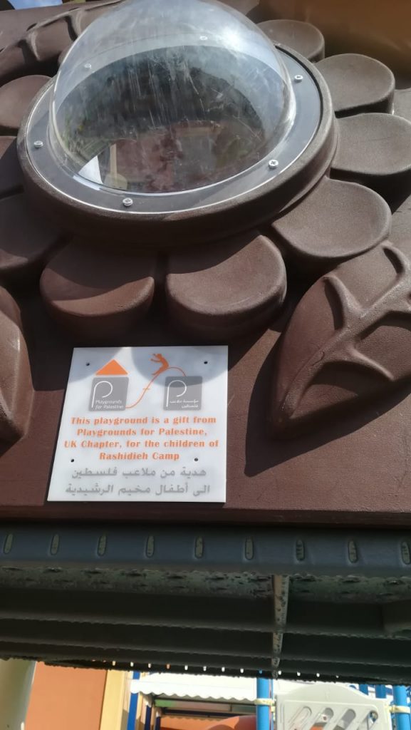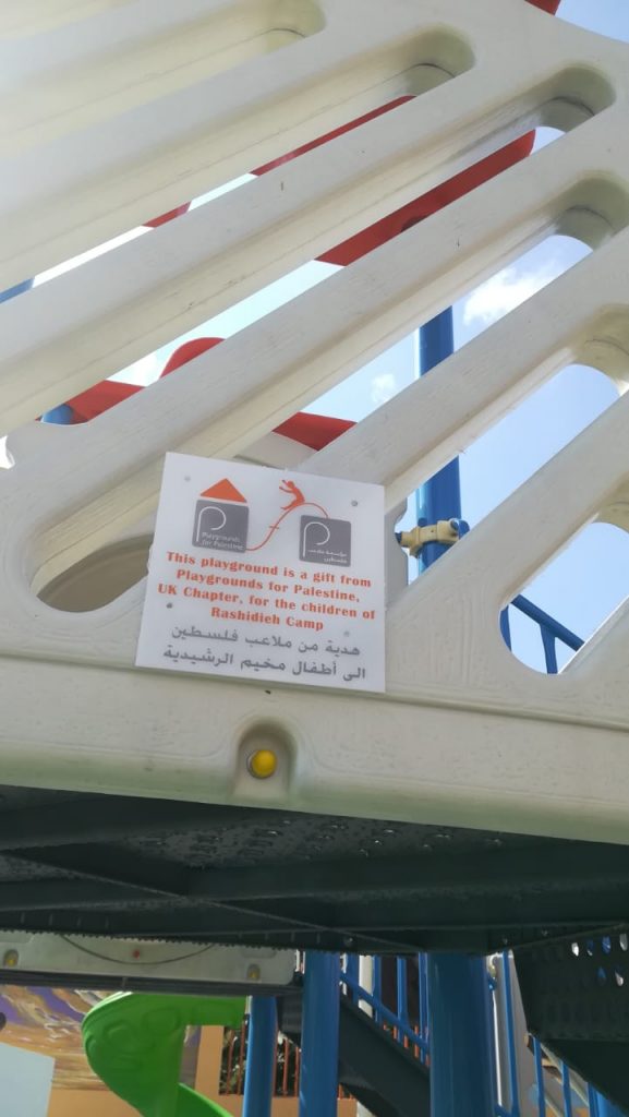 These playgrounds were a collaborative effort between PfP’s UK and US Chapters which both fundraised for this beautiful public park for Palestinian refugees in Lebanon.  With the help of UNRWA in Lebanon, the four playground systems were installed in the Rashidieh Refugee camp near Tyre. The park is open to the public and serves the whole community.  It was completed in record time so local children woke up to it for Eid al Adha, 2019. Much gratitude to Daoud Korman, in particular, and to Claudio Cordone, Mohammed Khaled and others at UNRWA who helped make this and other playgrounds in Lebanon’s camps possible!