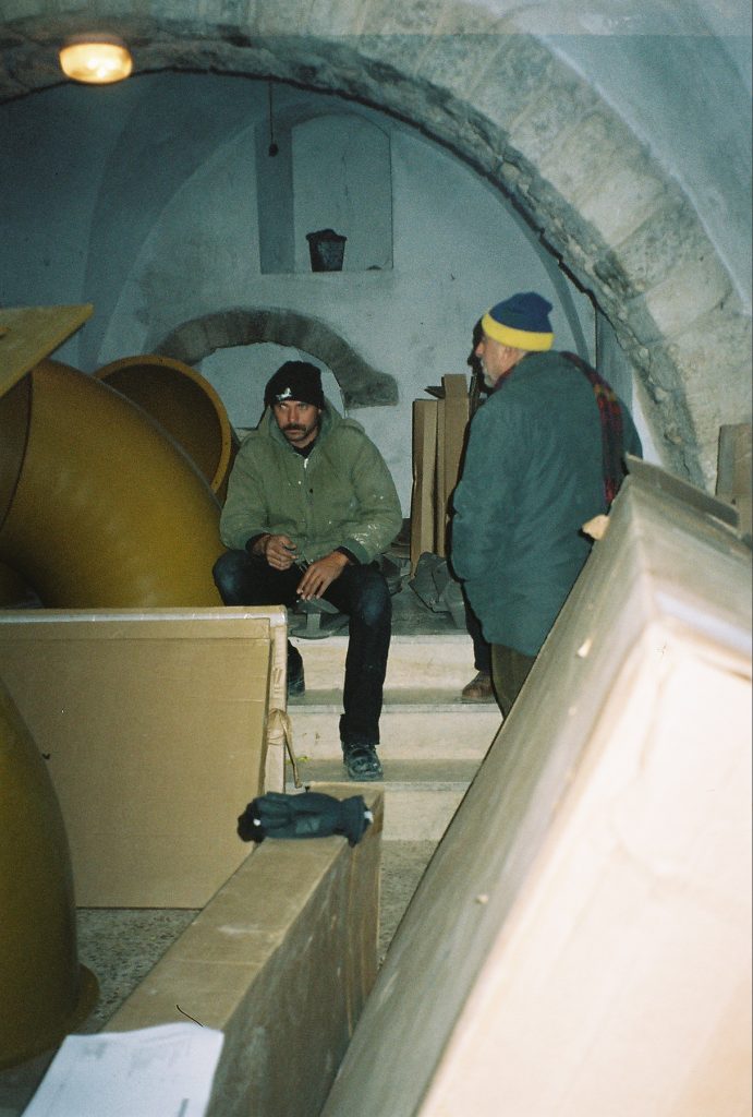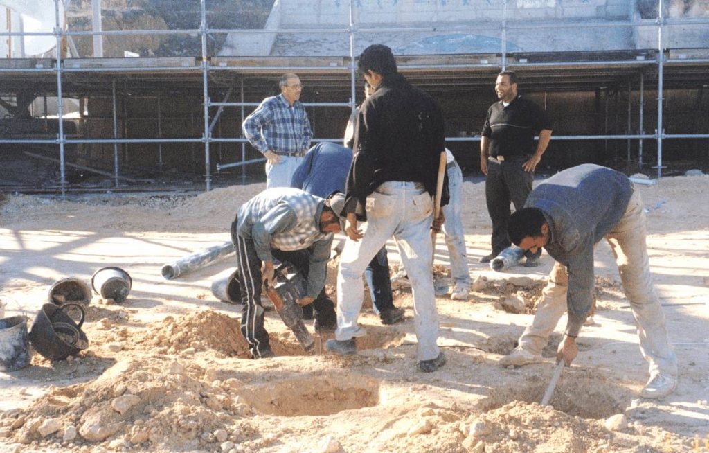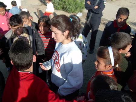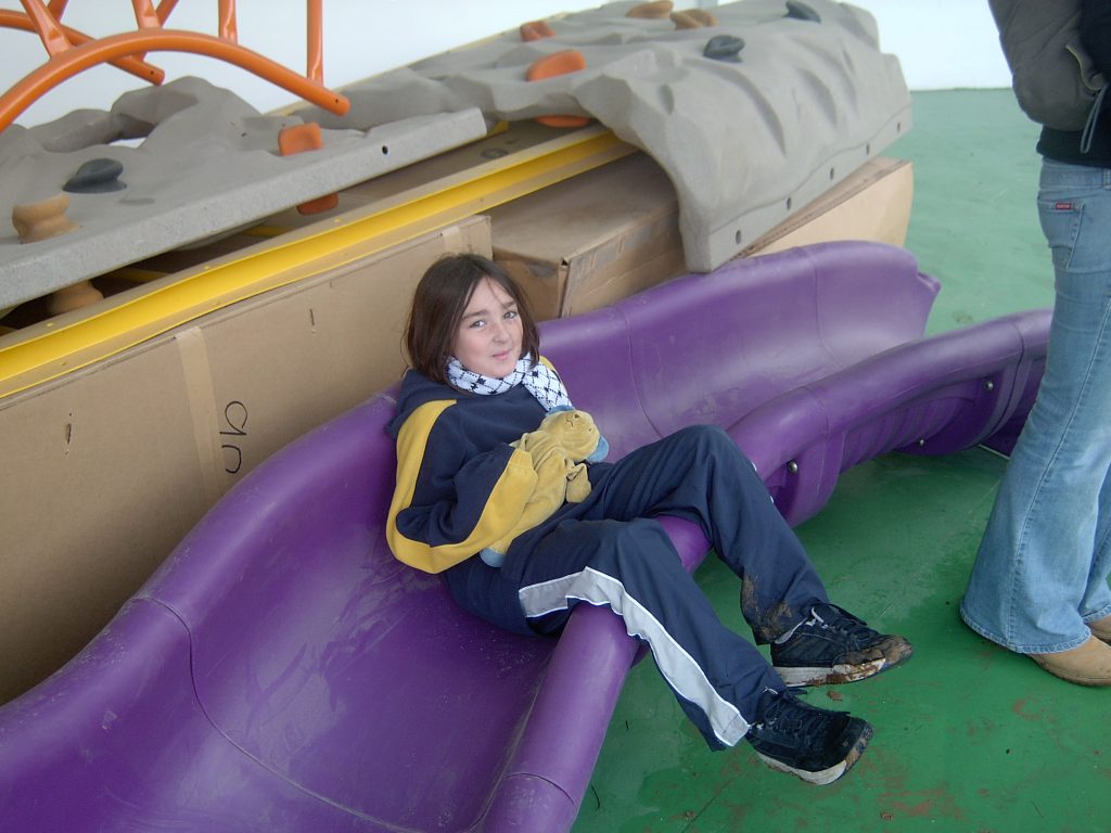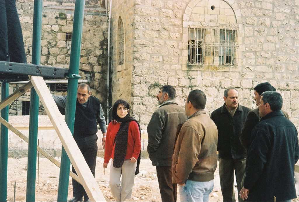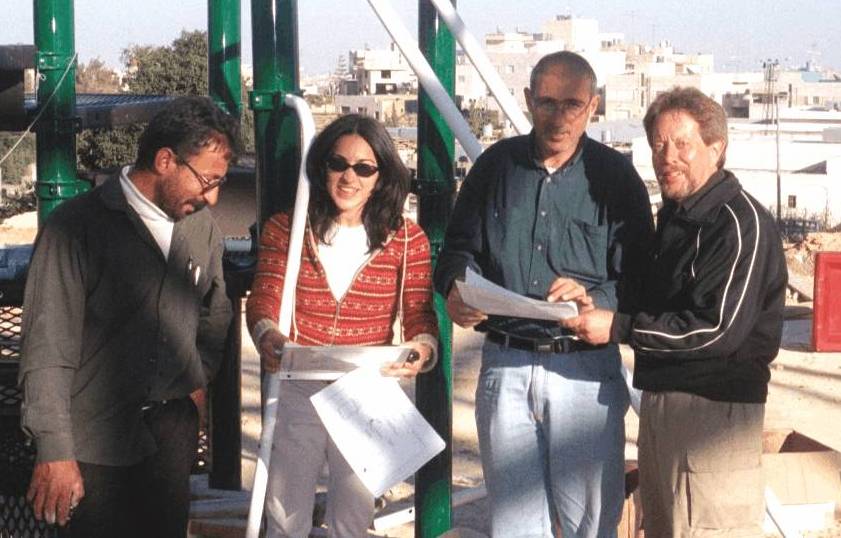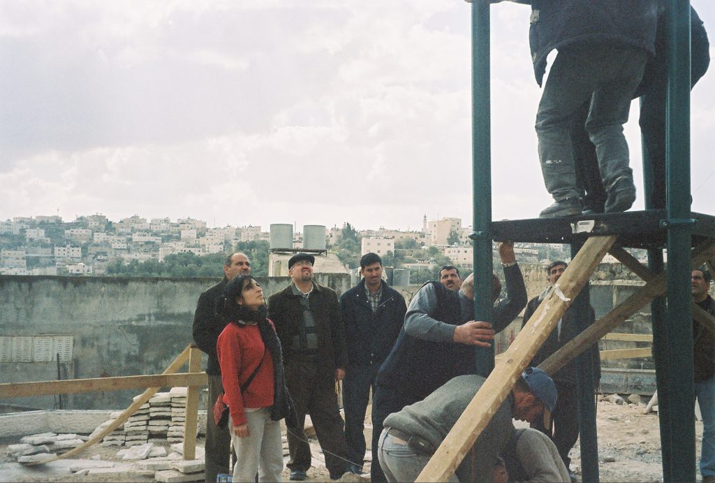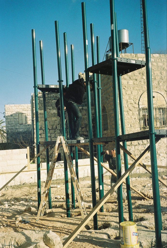 Playgrounds for Palestine’s first playground was acquired from the American Playground Corporation and was shipped to Bethlehem after nearly one full year of preparations. It finally arrived in Bethlehem in November 2002, thanks to the efforts of ANERA (American Near East Refugee Aid). Once there, however, it could not be erected in time for Christmas as planned due to Israeli closures and curfews. Despite this, two affiliates of Playgrounds for Palestine, Susan Abulhawa and Mark Miller, traveled to Bethlehem to oversee its installation, which was finally completed mid-January.  A group of dedicated local contractors and laborers worked day and night to get as much done during the few hours they were free from a forbidding curfew. Finally, two weeks later, PfP’s first playground was erected.