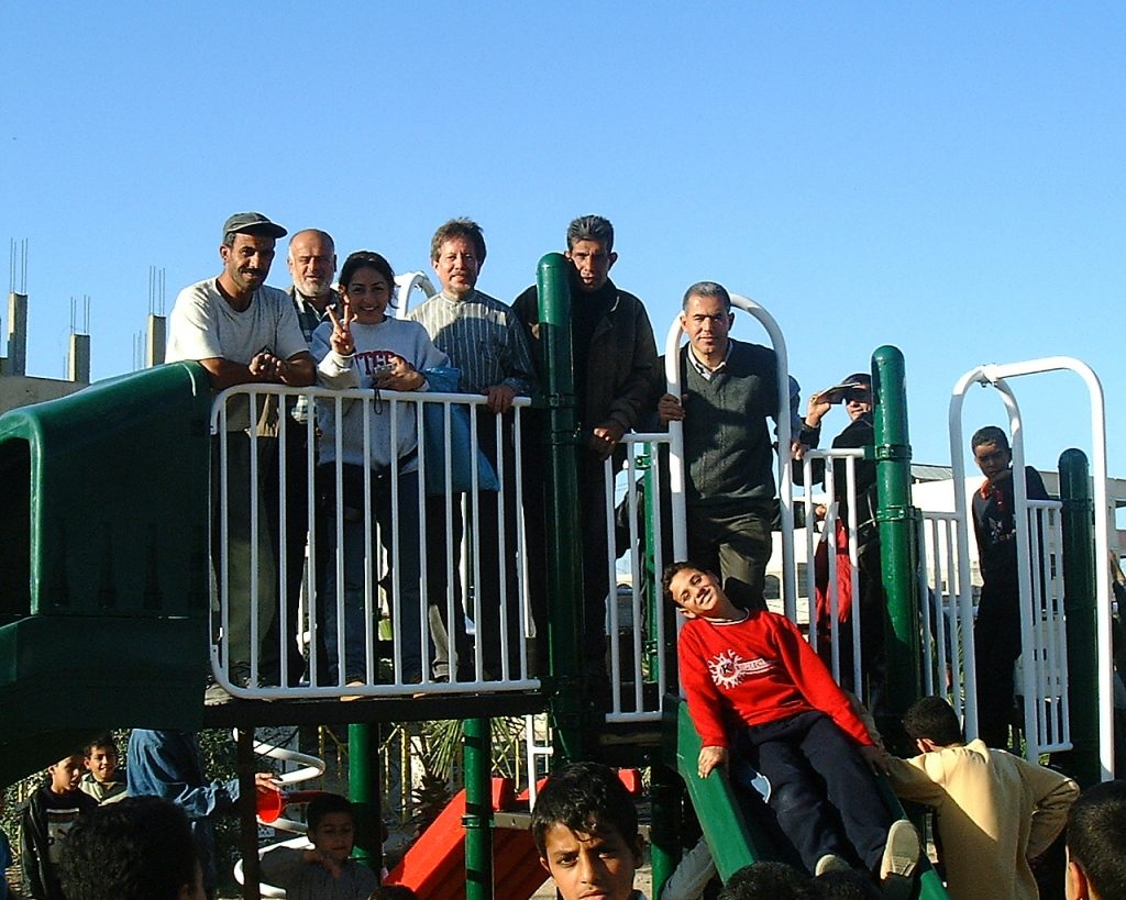 Children in this battered refugee town had been hit especially hard by the occupation. The playground PfP built here has been essential in bringing some form of normalcy for the children of Rafah. The story behind the building of this playground is a testament to the endurance of the Palestinian people and their abiding love and solidarity for one another.  This playground was made possible through a joint effort between PfP and Madison-Rafah Sister City Program (MSRCP), which was founded in 2003 to foster people-to-people relationships between the citizens of Madison, Wisconsin and Rafah.