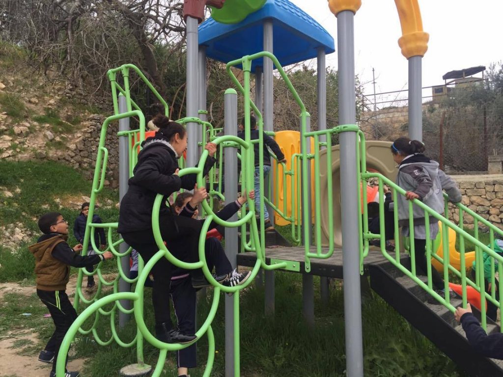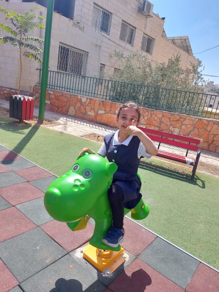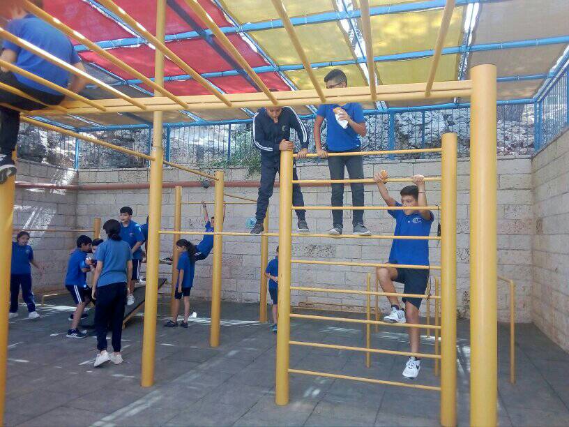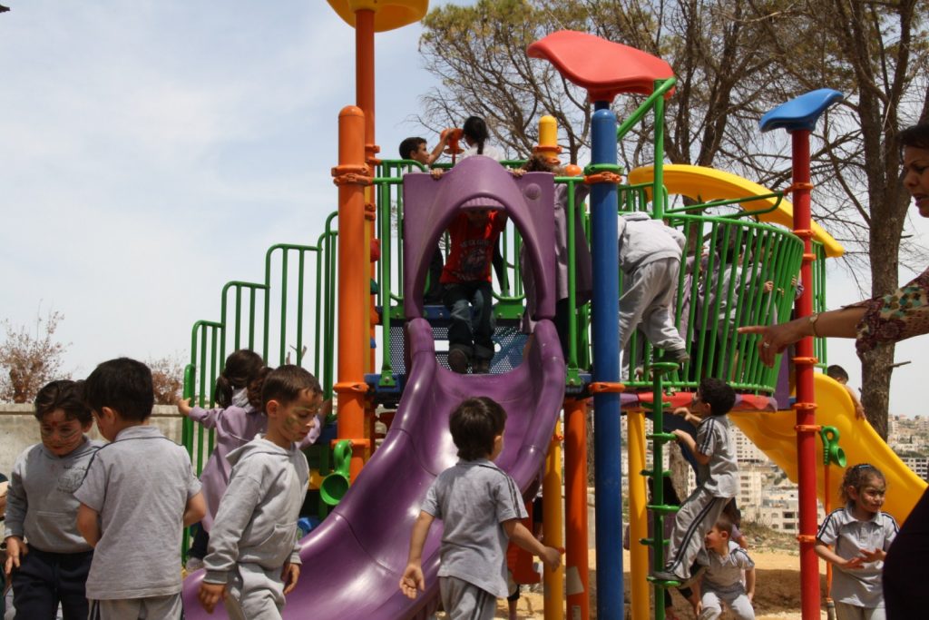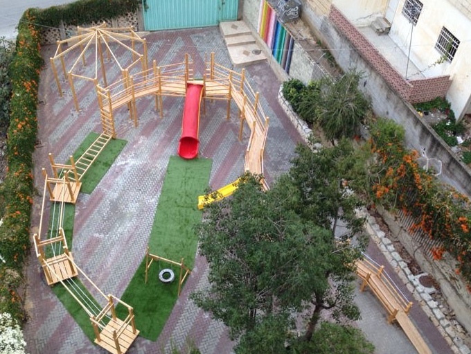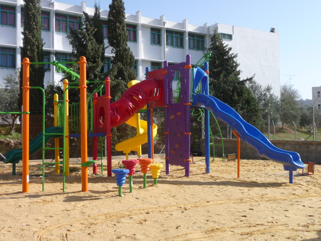 The Talitha Kumi school is located in Beit Jala, Palestine and serves around 180 students. The school is for students from grade one to tawjihi (grade 12). Playgrounds for Palestine is helping to fund and build an outdoor playground in order to provide the children with a place to play, improve their fitness through outdoor exercise, and instill good habits. The photo below is a proposal of the equipment that may be included in the final playground!