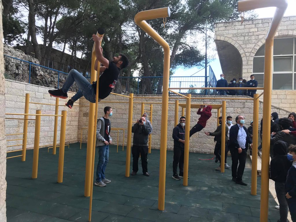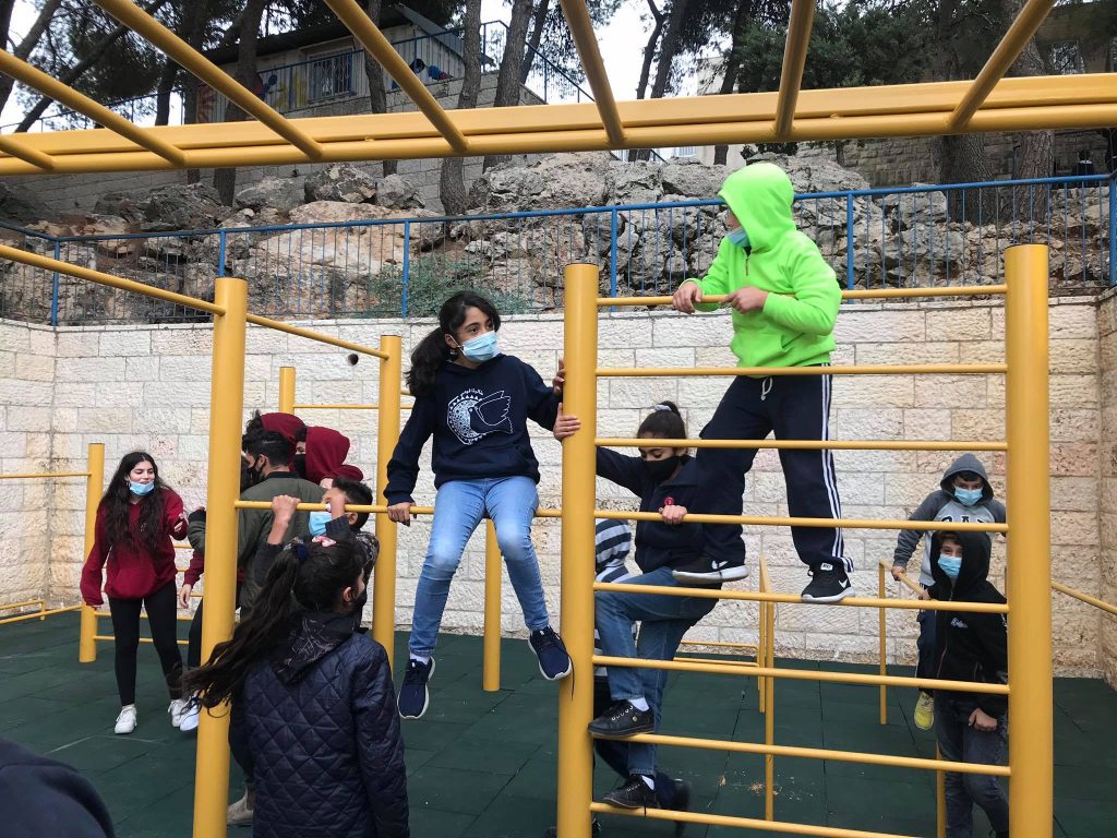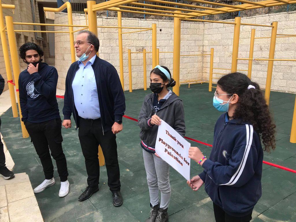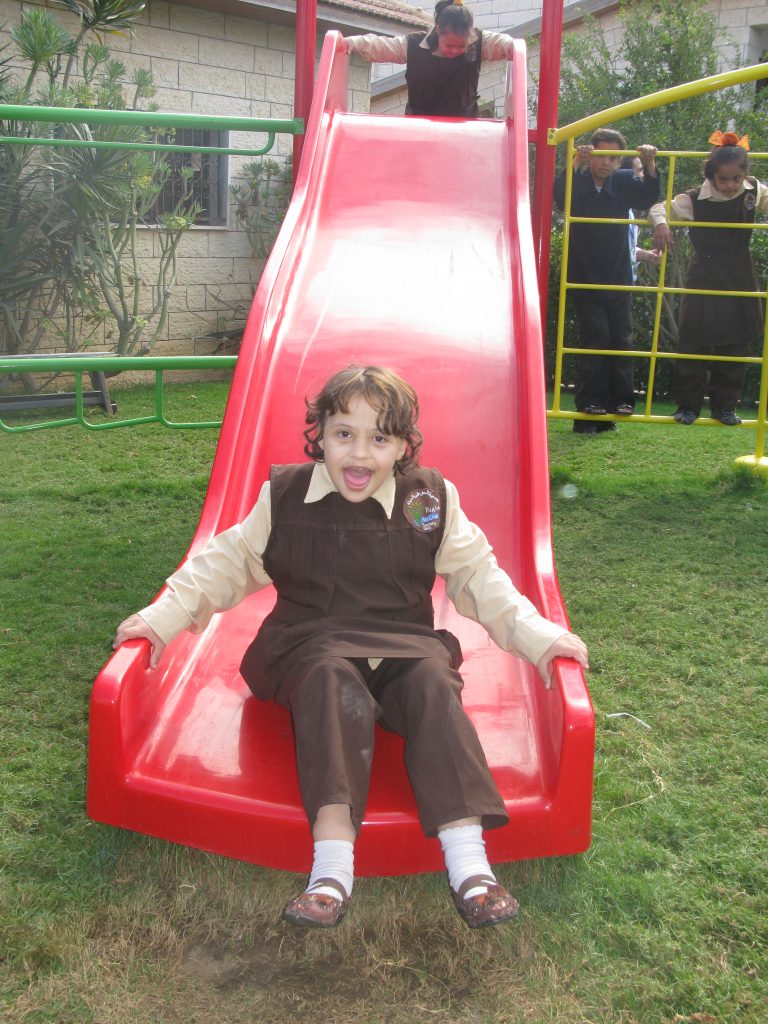 The Talitha Kumi school is located in Beit Jala, Palestine and serves around 180 students. The school is for students from grade one to tawjihi (grade 12). Playgrounds for Palestine is helping to fund and build an outdoor playground in order to provide the children with a place to play, improve their fitness through outdoor exercise, and instill good habits. The photo below is a proposal of the equipment that may be included in the final playground!