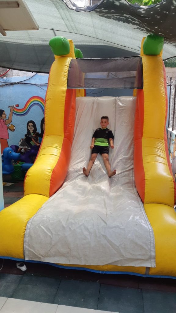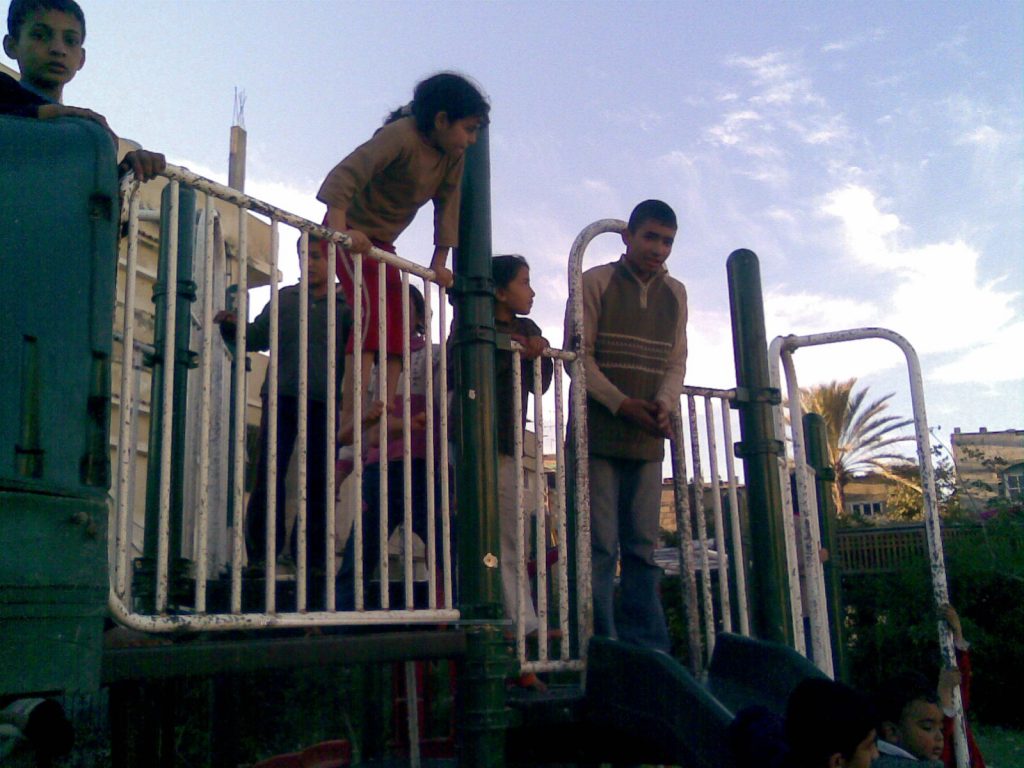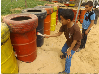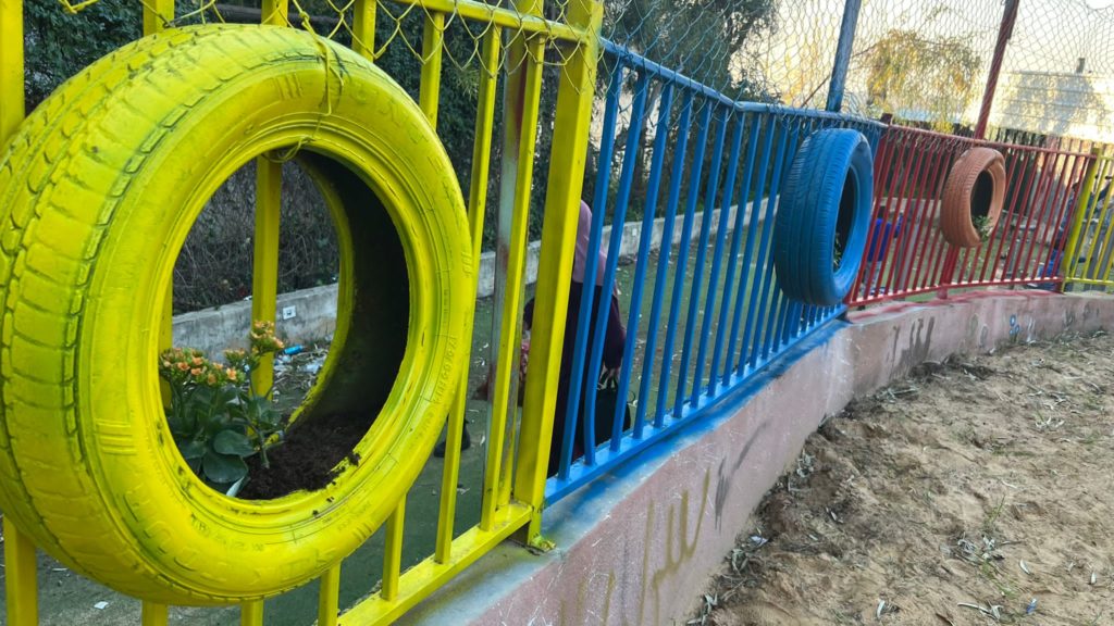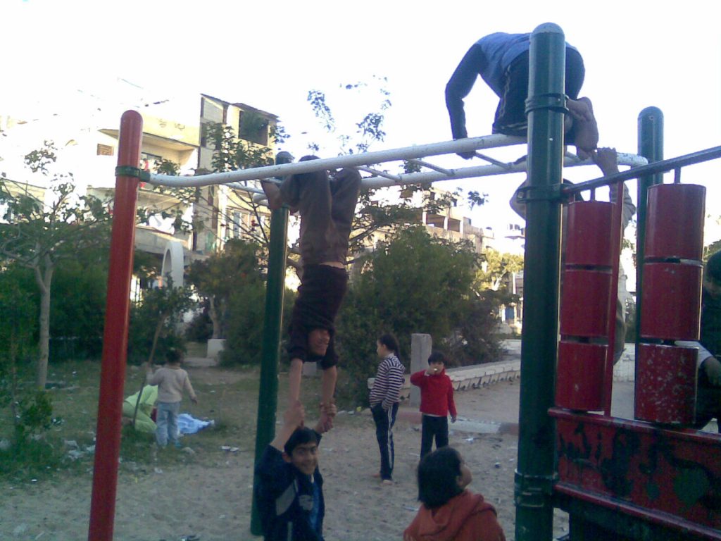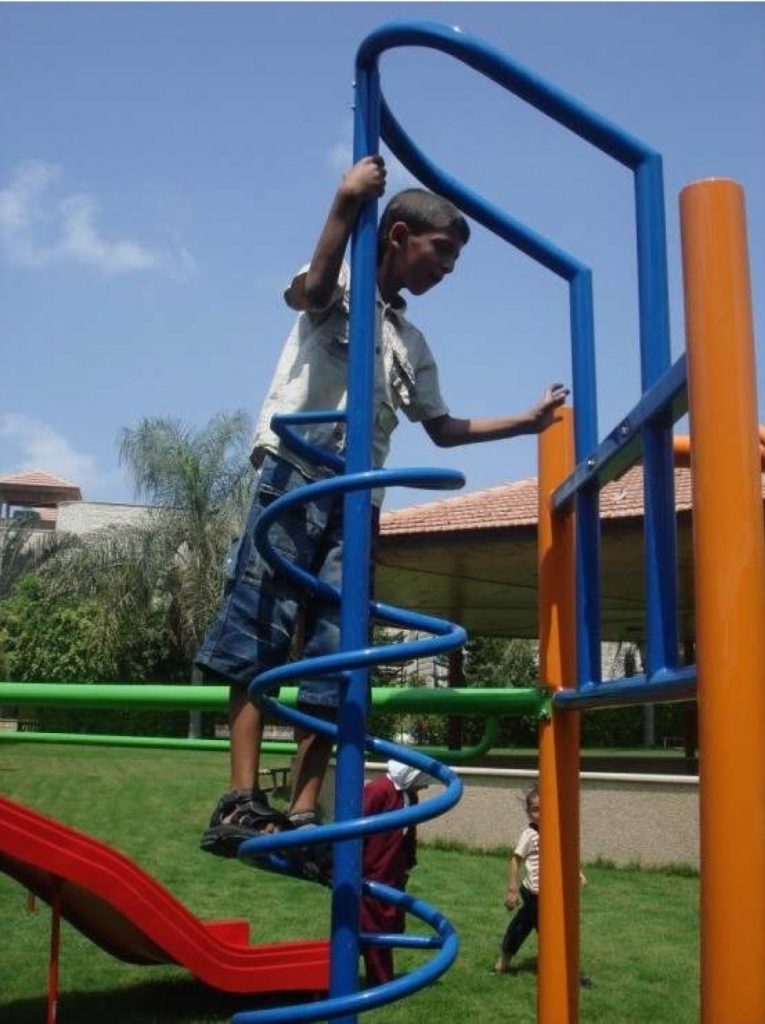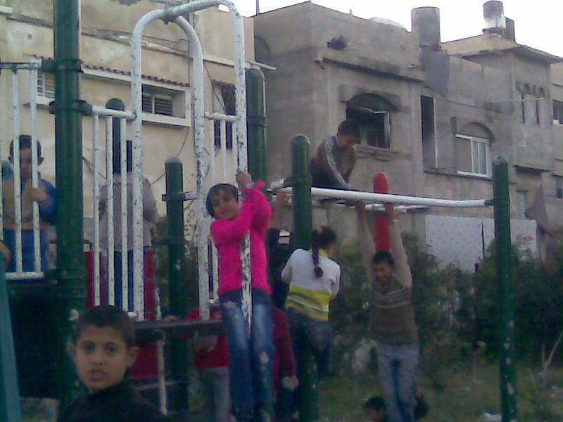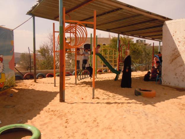 Having a safe, outdoor place to play is extremely important for children with Autism and Downs Syndrome. This playground, like most others in Gaza was constructed locally with raw materials that came from recycled metals available inside of Gaza.