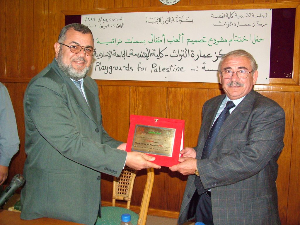 In cooperation with ANERA and the Islamic University of Gaza (IUG), Playgrounds for Palestine held a playground design competition among architecture students. In addition to awarding a monetary gift, PfP gave the creators of the top six designs the opportunity to oversee the construction of fun, safe and aesthetically accurate playgrounds using local raw materials and local labor.