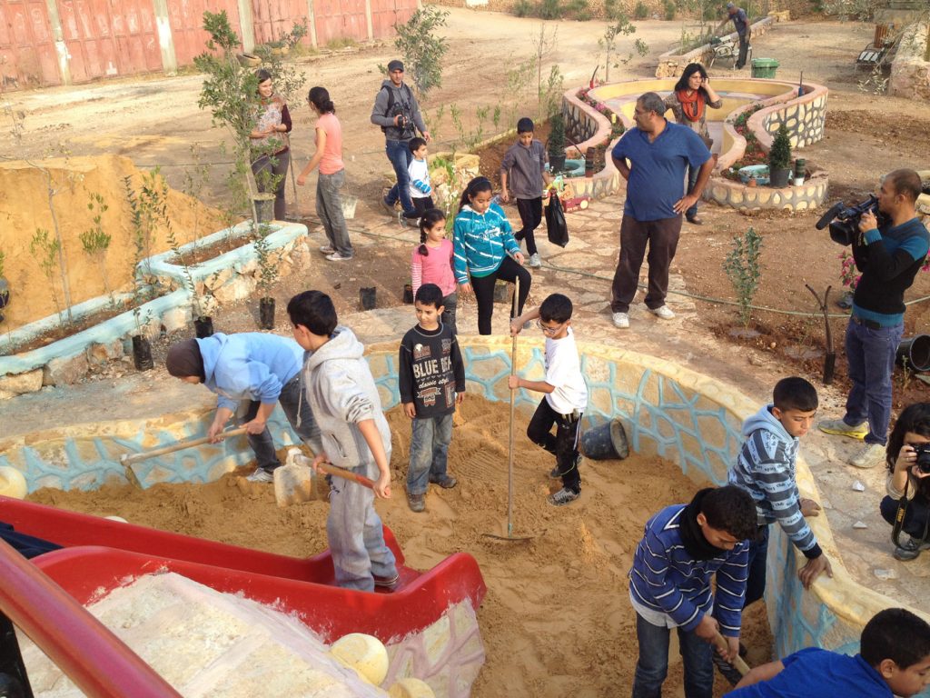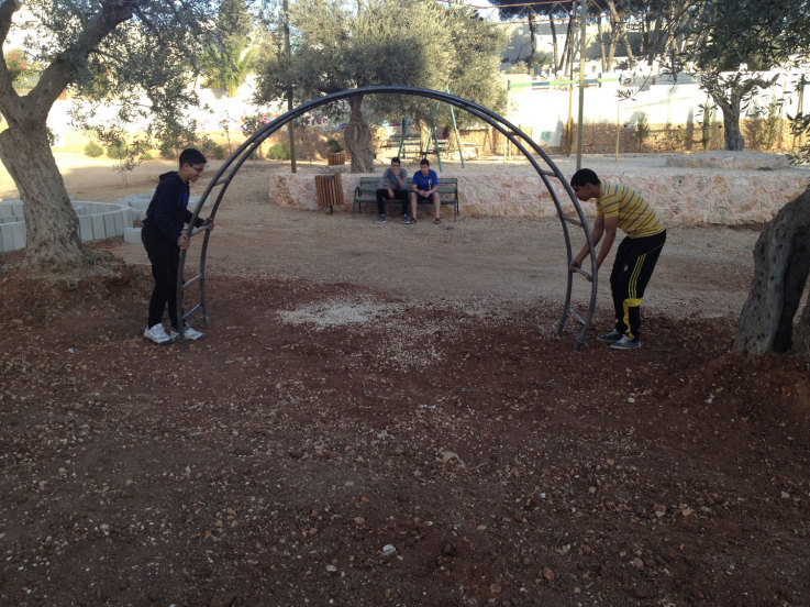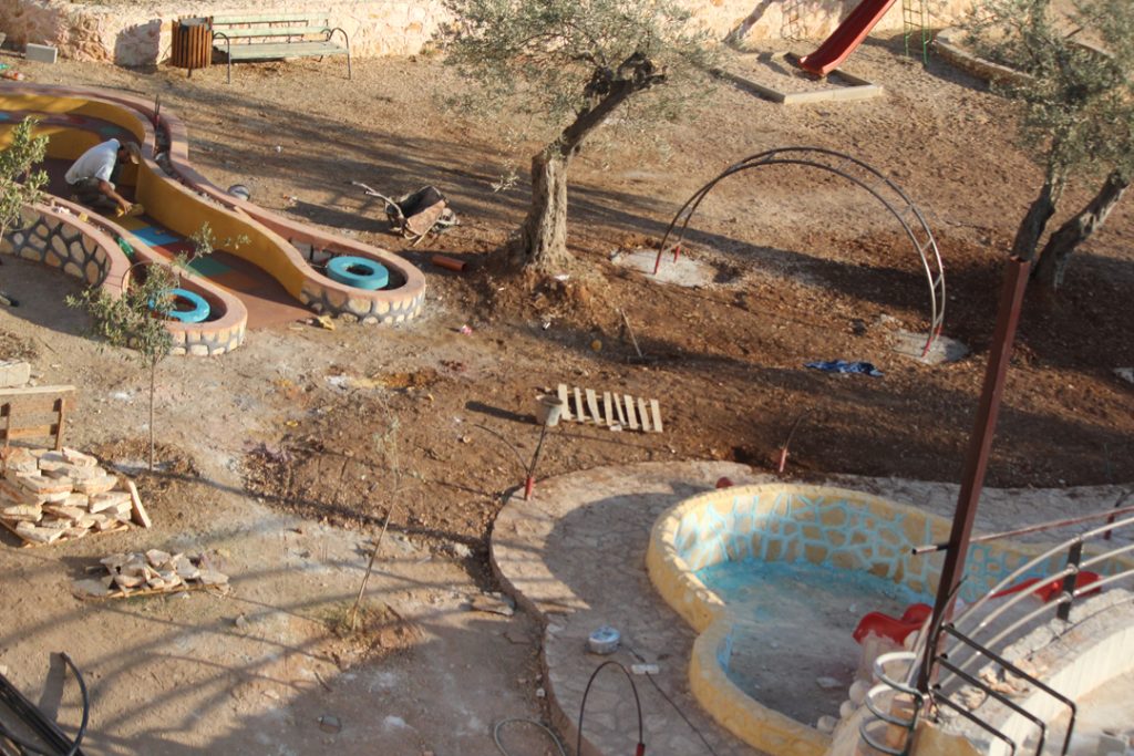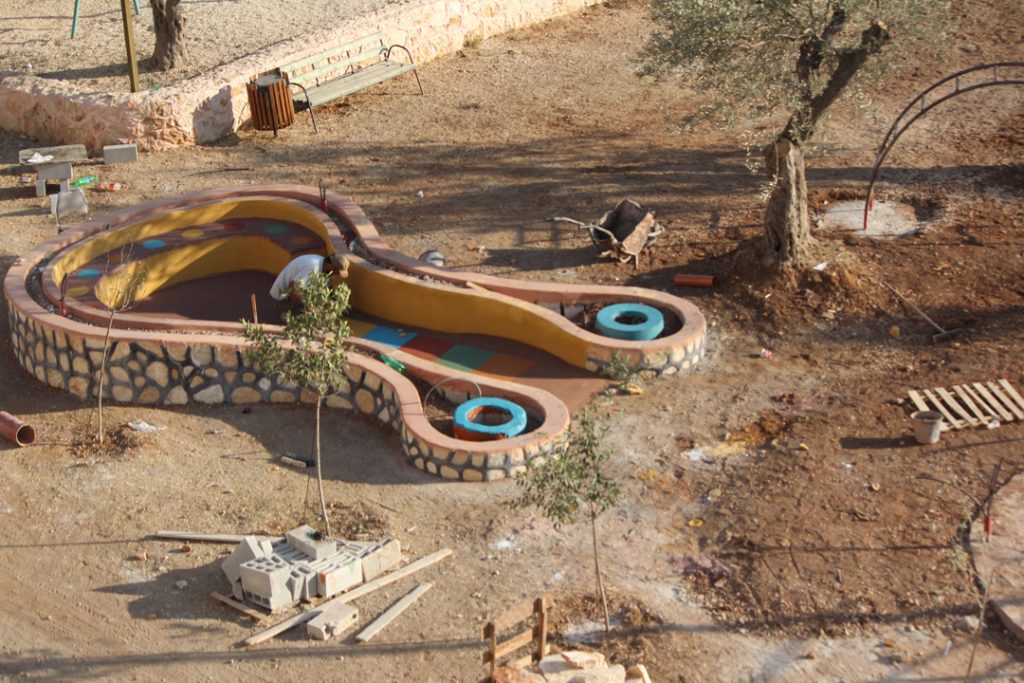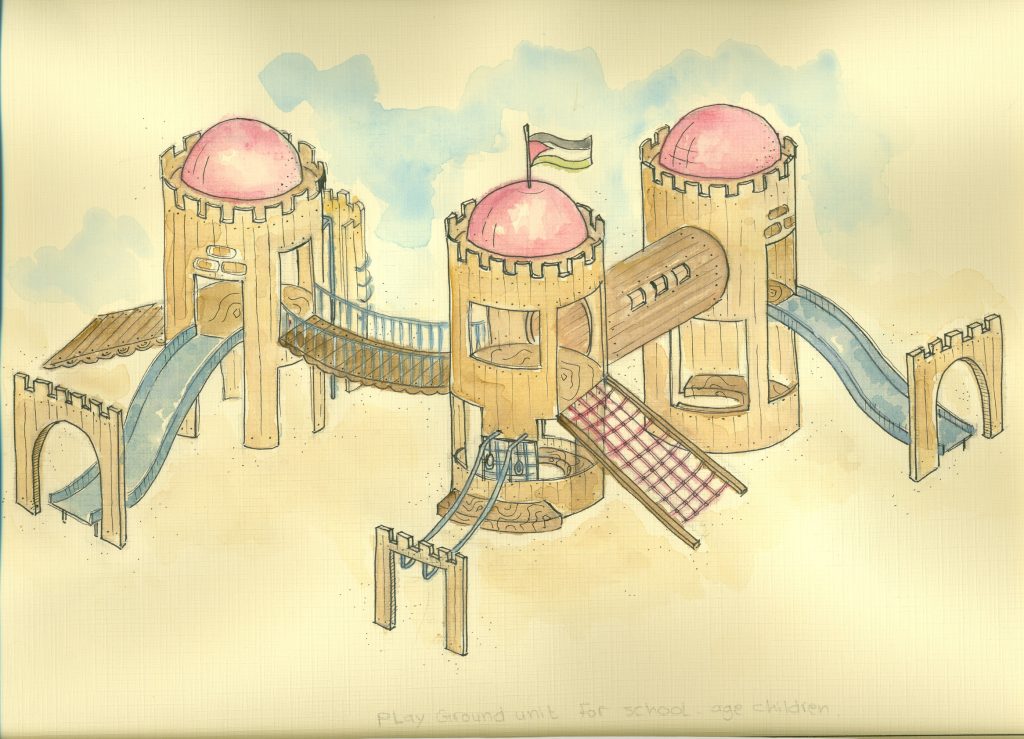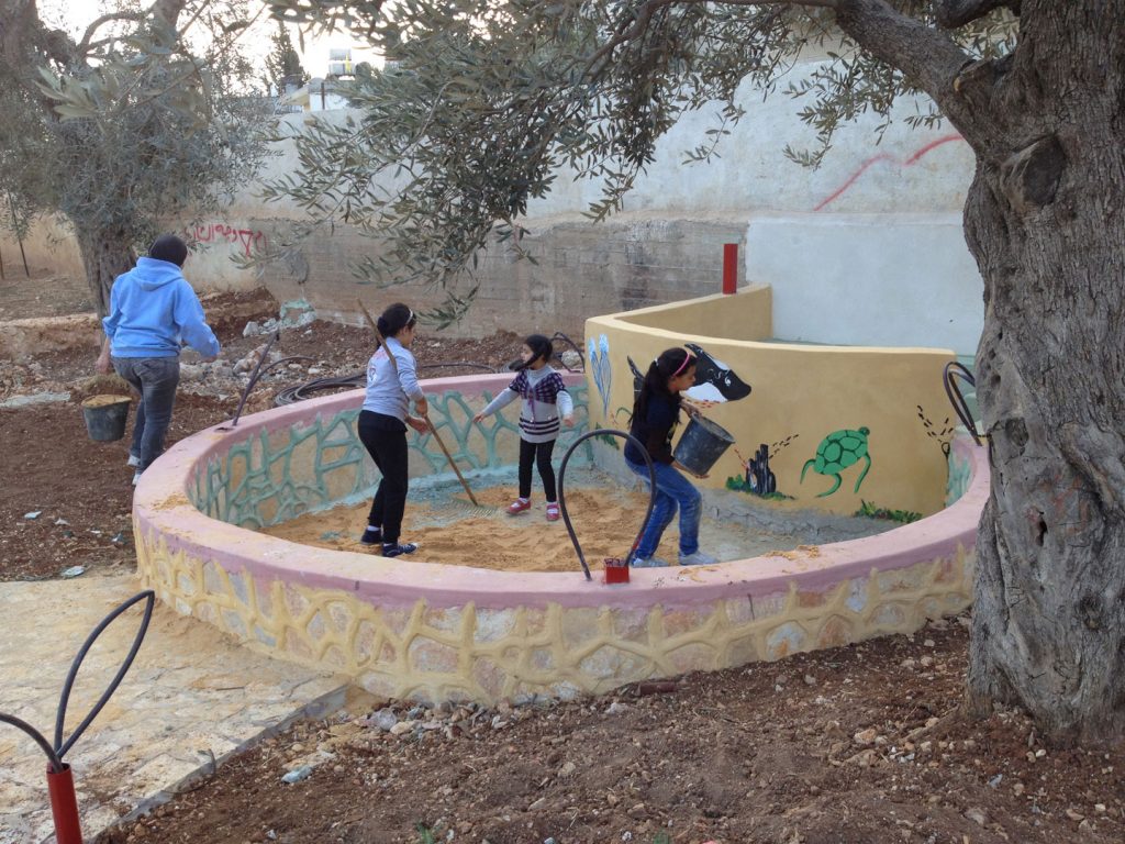 Designs for the site were completed in August thanks to our friends at the Lajee Center and playground architect Sam Kornhauser.  Center was established in Aida Refugee Camp in April 2000 by a group of 11 young people from the Camp who wanted to serve the community. Lajee is a community-based grassroots creative cultural centre that works with new generations of Palestinians as they continue their ongoing struggle for justice and rights for Palestine and all Palestinians.