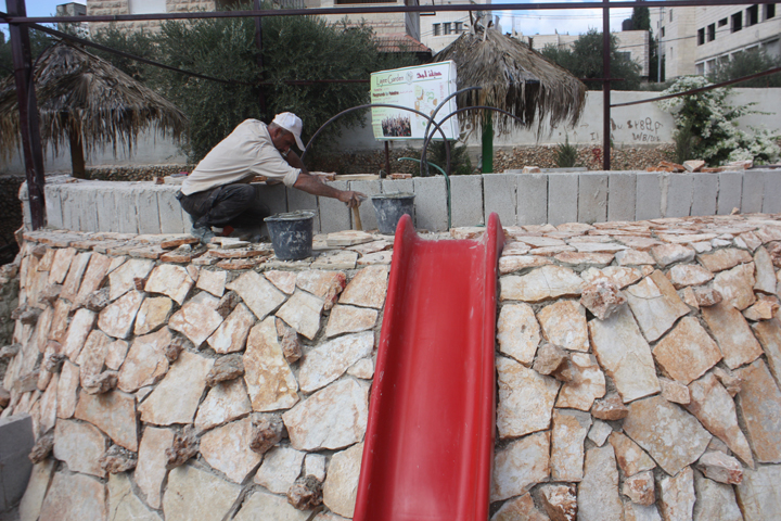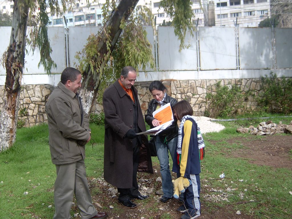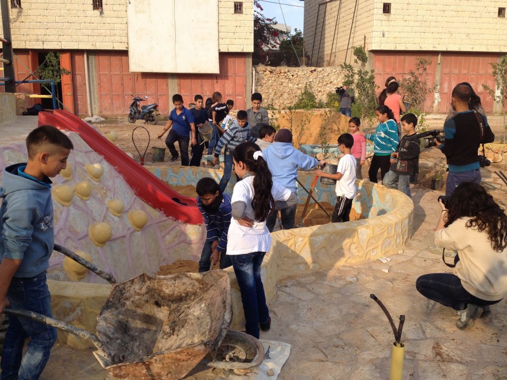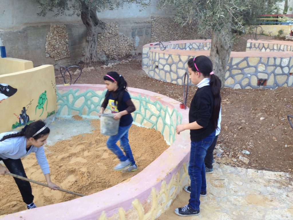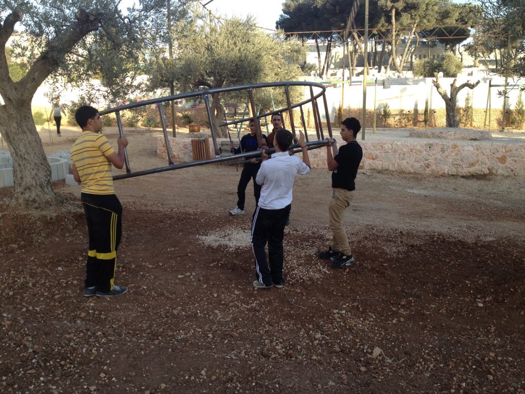 Designs for the site were completed in August thanks to our friends at the Lajee Center and playground architect Sam Kornhauser.  Center was established in Aida Refugee Camp in April 2000 by a group of 11 young people from the Camp who wanted to serve the community. Lajee is a community-based grassroots creative cultural centre that works with new generations of Palestinians as they continue their ongoing struggle for justice and rights for Palestine and all Palestinians.