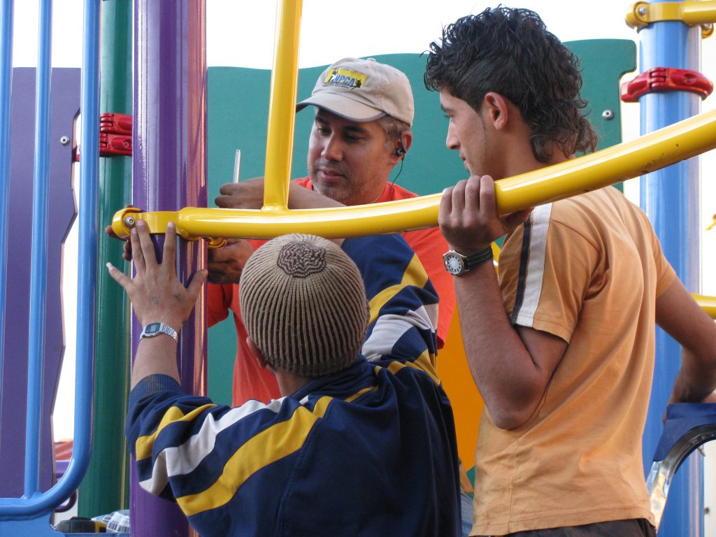 This is the second playground (in addition to the park itself) we built at the Lajee Center inside the Aida Refugee Camp in the Bethlehem District, Palestine.  Lajee Center’s work with children so inspired us that we decided to partner with them permanently to oversee our installations in other locations.  In particular, Salah Ajarma’s passion and dedication to Palestine’s children has made this center a refugee for thousands of children who come to the center daily, where they spend their summers and after school hours.