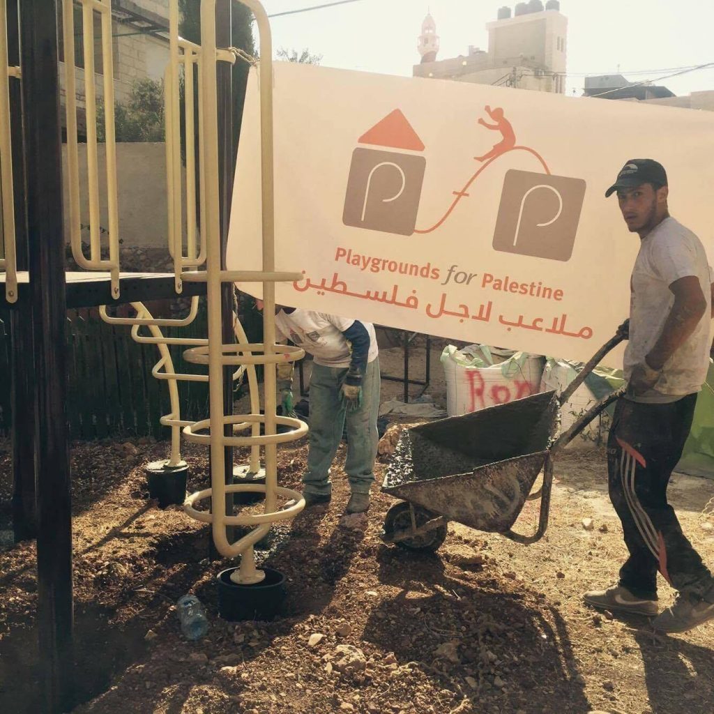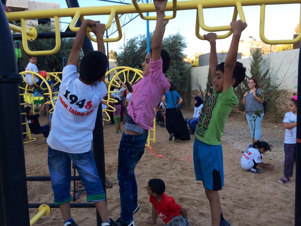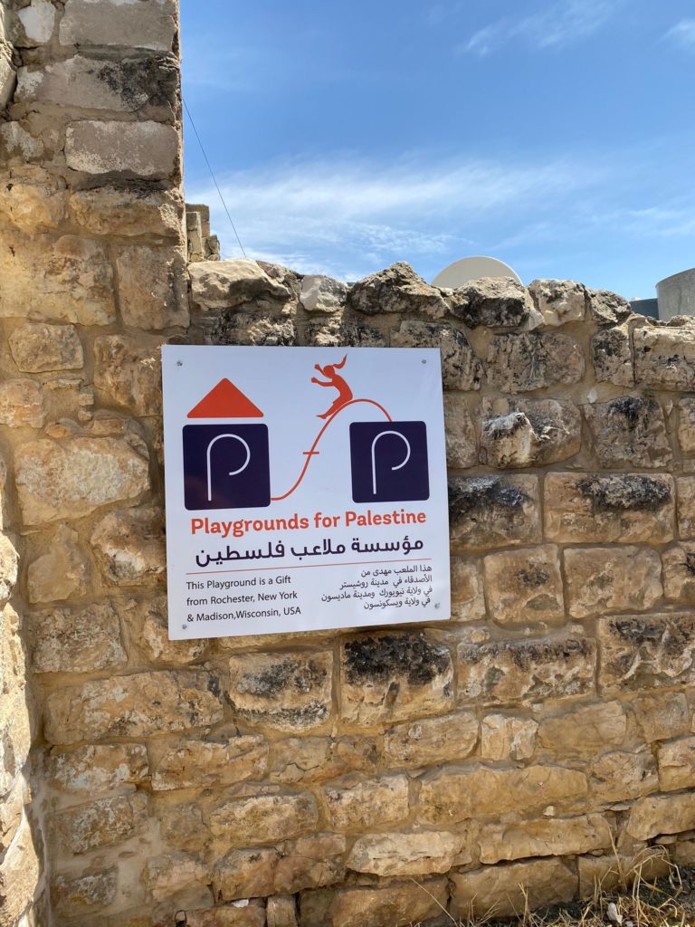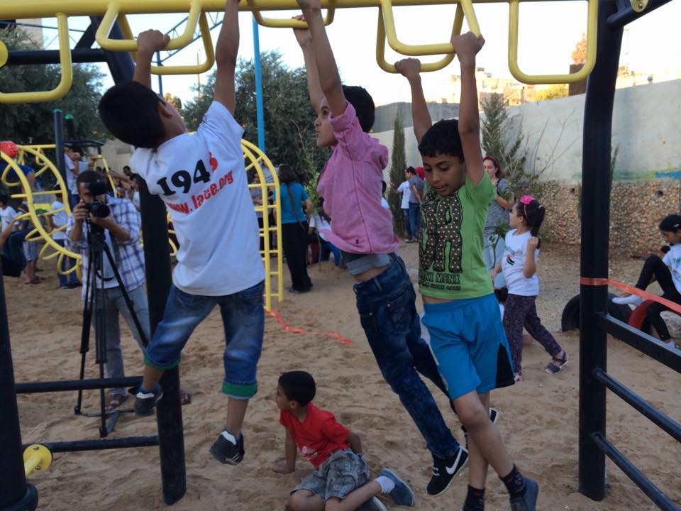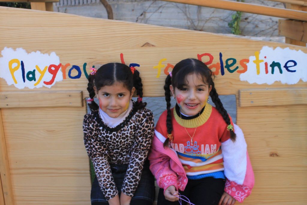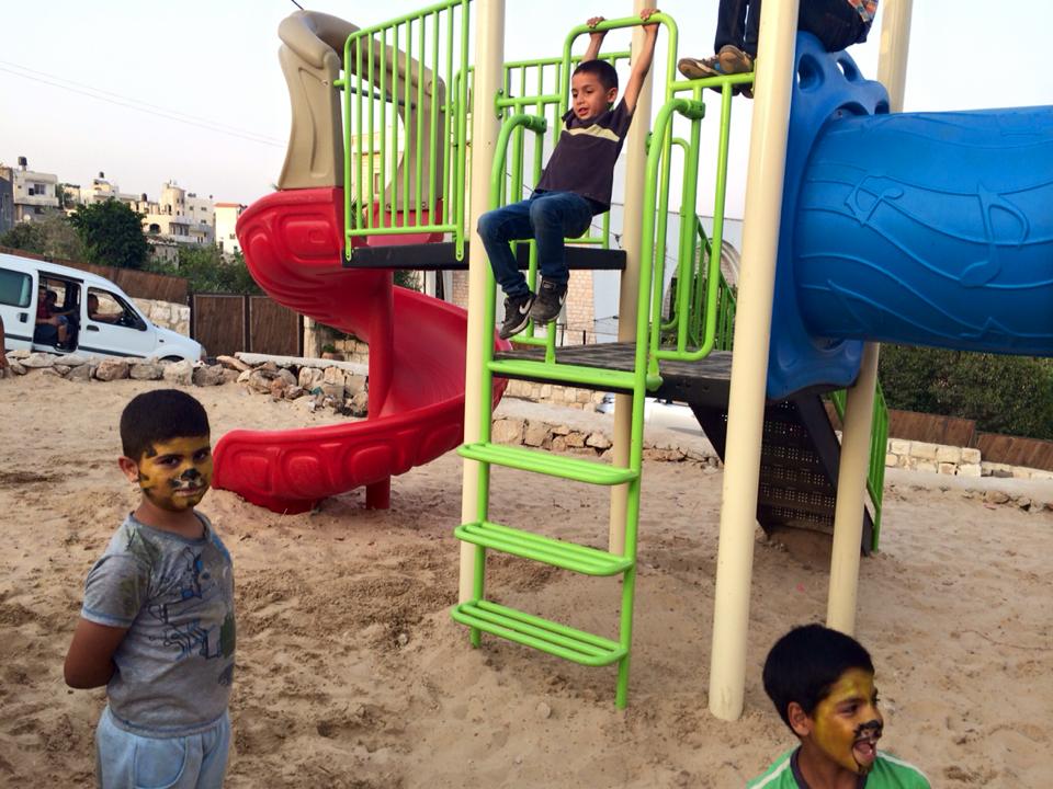 This playground was built in celebration of the marriage of Heather and Armen Vartian. In lieu of wedding gifts, the couple asked their guests to make a donation toward this playground in the refugee camp where Heather had previously lived and worked.  Heather and Armen said: “We passionately care about the people of Palestine, having lived and worked there ourselves. We traveled to the West Bank together in 2003, and we want to use this opportunity to give something.”