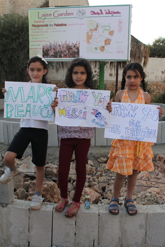 As our community garden and play space was coming together at Aida Refugee Camp, families were overhead saying that “It’s like a piece of paradise”, and that’s even before the construction is completed!
