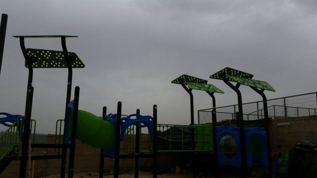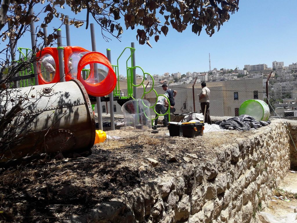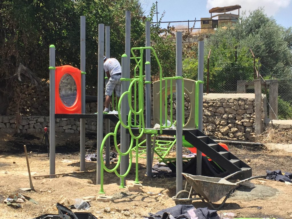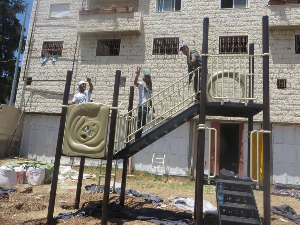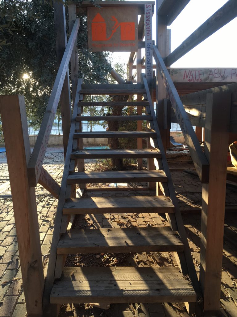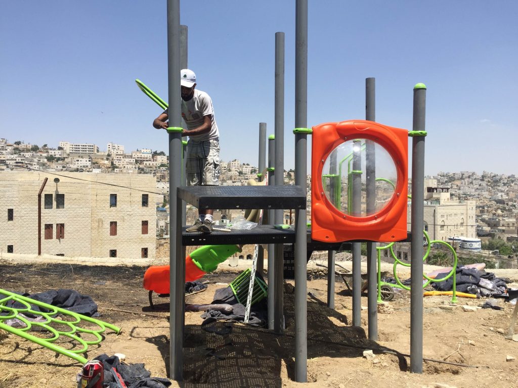 Due to military restrictions and bad weather, installation was not able to be completed before the Playgrounds for Palestine’s representative left.