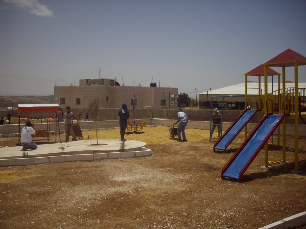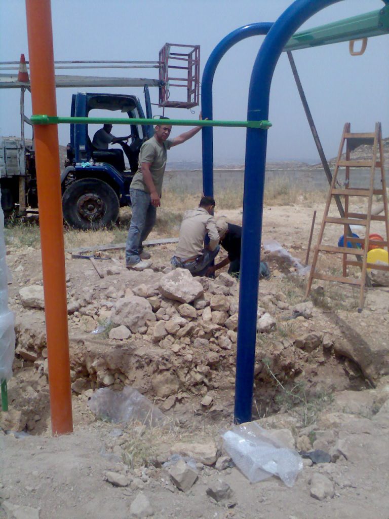 Budrus is a village of about 1500 people. They have a UN school with a single set of swings for use by the kindergarten children. The children of Budrus spend most of their days inside or playing on the streets. Funds for this playground were raised by the “Midsummer Night’s Dream” team- they held an ultimate frisbee tournament and an auction and raised over $8000 for this site.