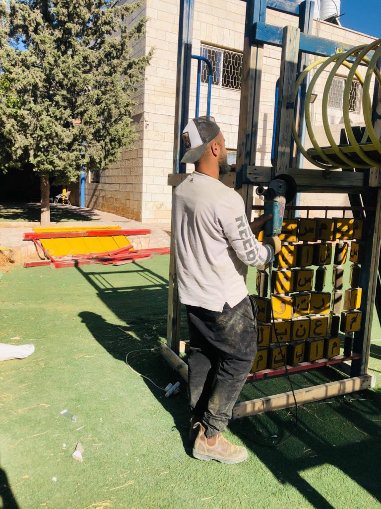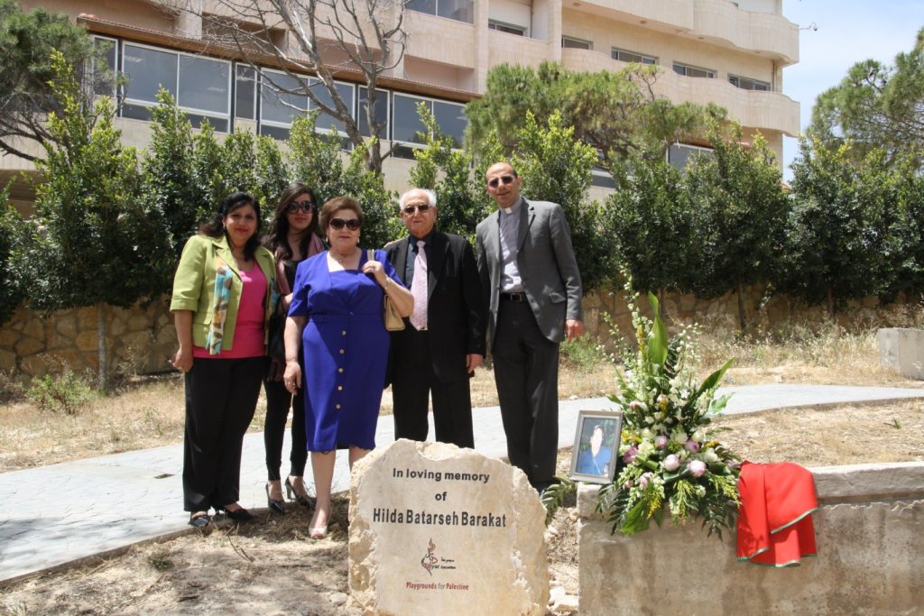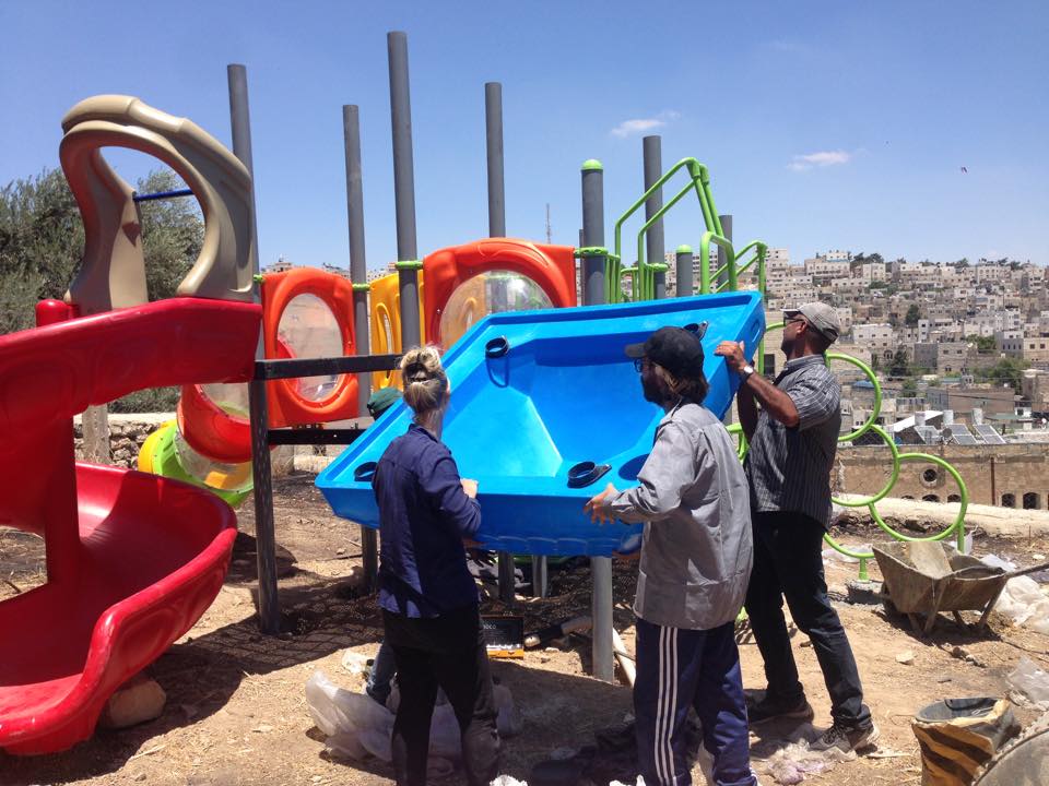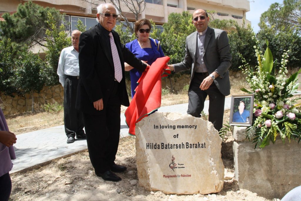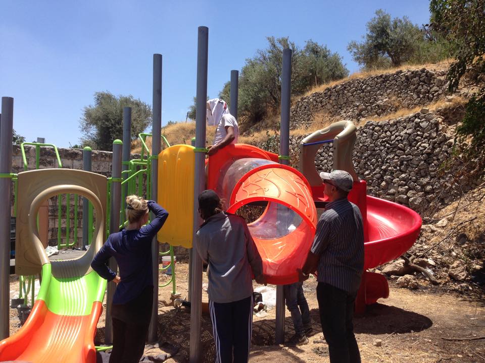 Playgrounds for Palestine’s second playground in Bethlehem went through a lot of obstacles to finally reach completion on the grounds of Dar Annadwa. This playground was dedicated to the memory of Hilda Barakat, purchased by her family and loved ones, and built with the help of Rev. Nathan Dannison, who also raised funds for PfP and went to Palestine to participate in construction.