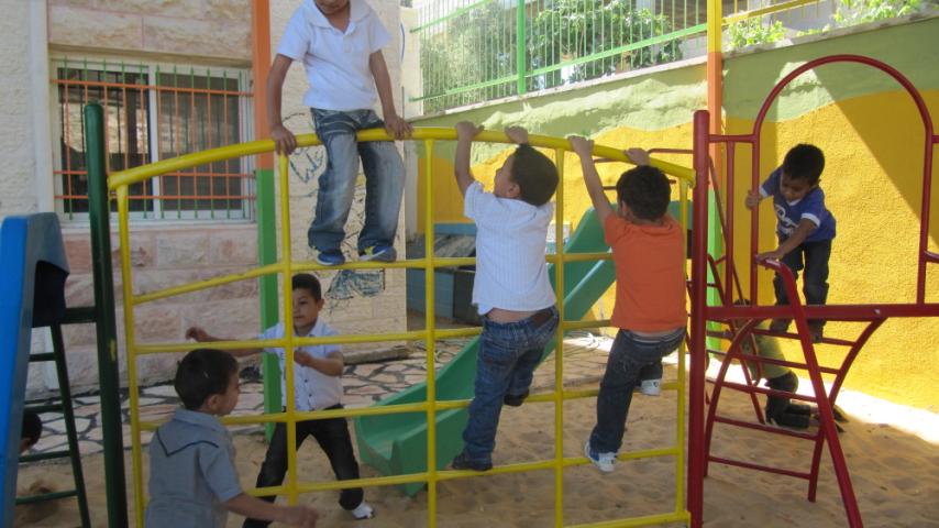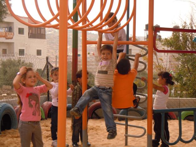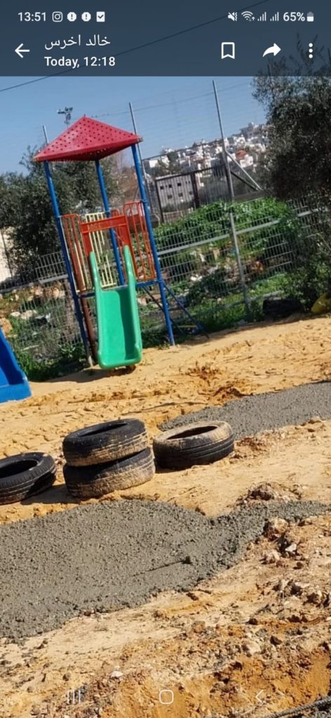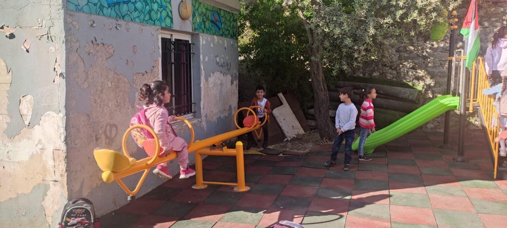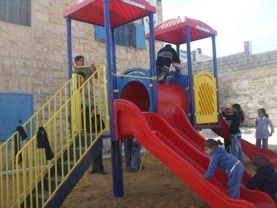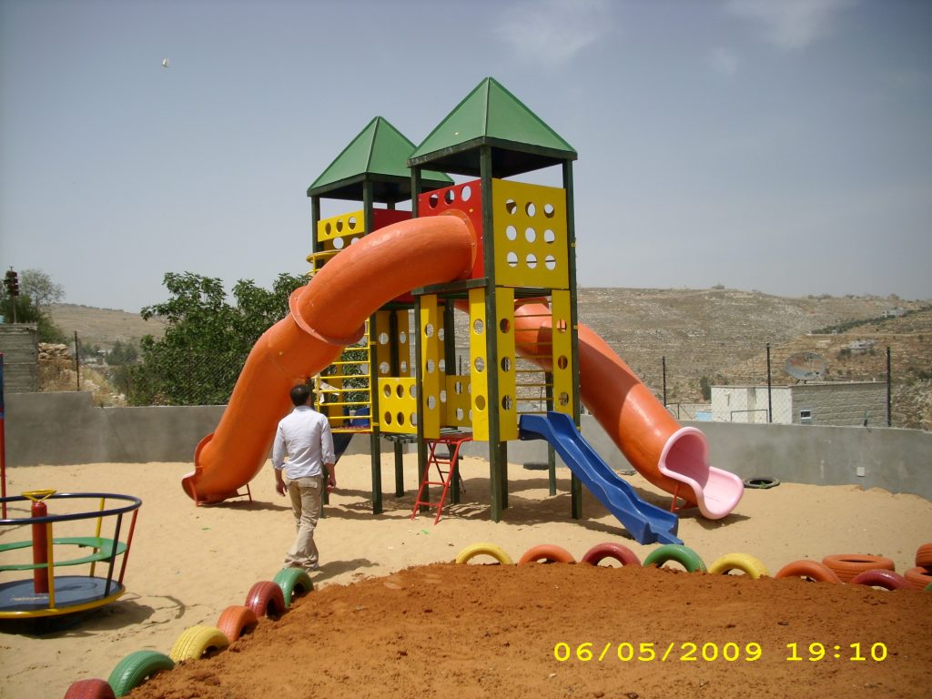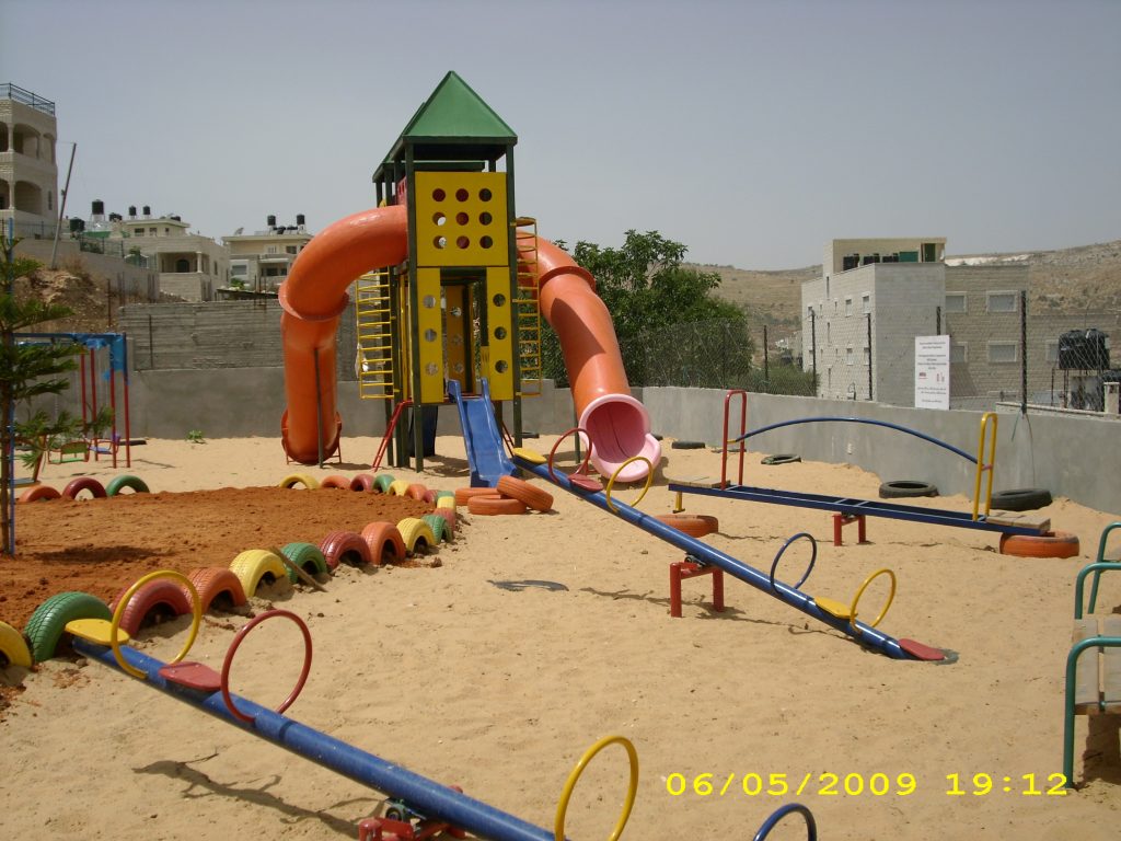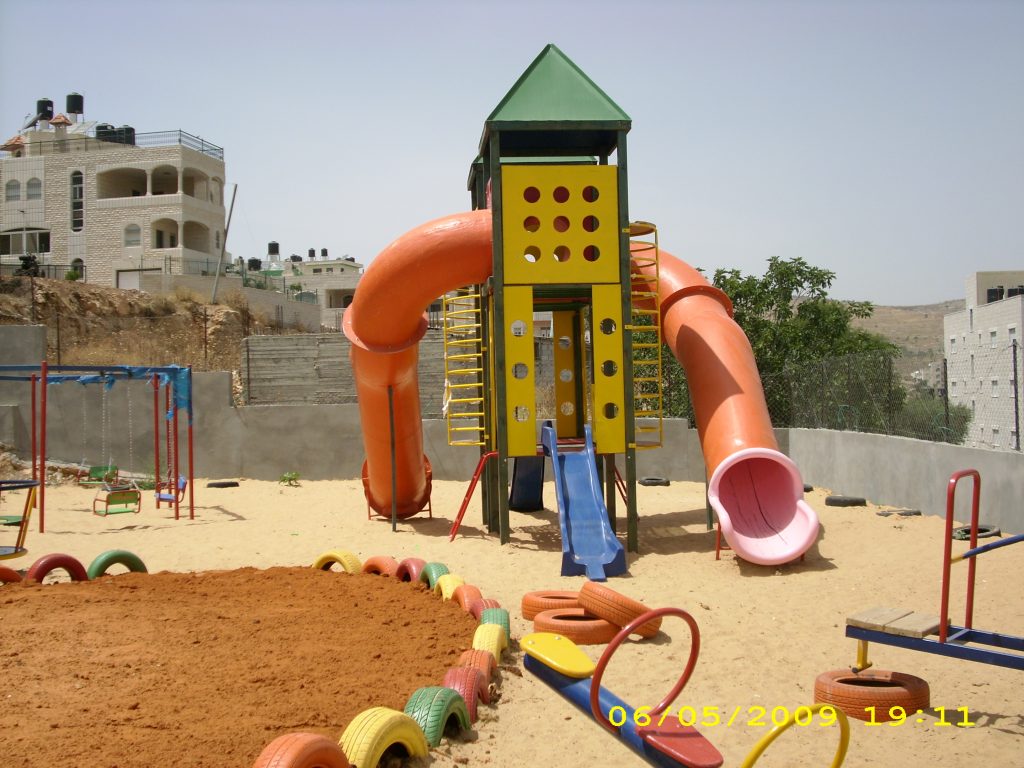 In cooperation with the Welfare Association, Playgrounds for Palestine funded and constructed a much needed playground in a kindergarten run by the Deir Ammar Athletic Club Charitable Society. The kindergarten serves up to a 100 children and has 3 teachers of which one of them is the headmistress. The KG is part of a three store building which includes the club (athletics and other youth and educational activities) as well. It was built in 2008 funded and built by the inhabitants of the village over 5 years.