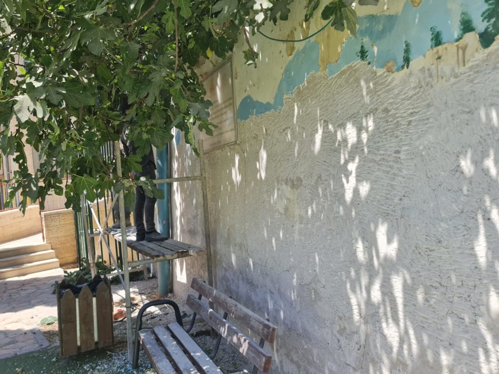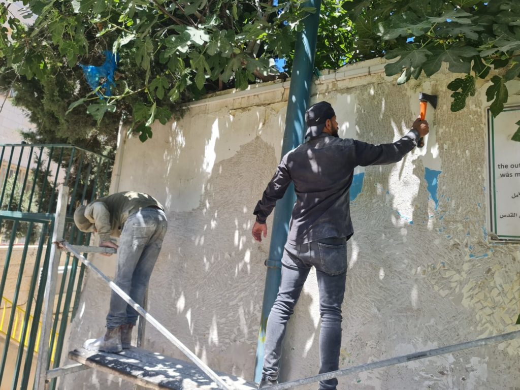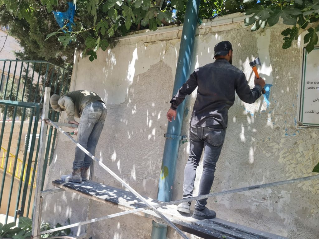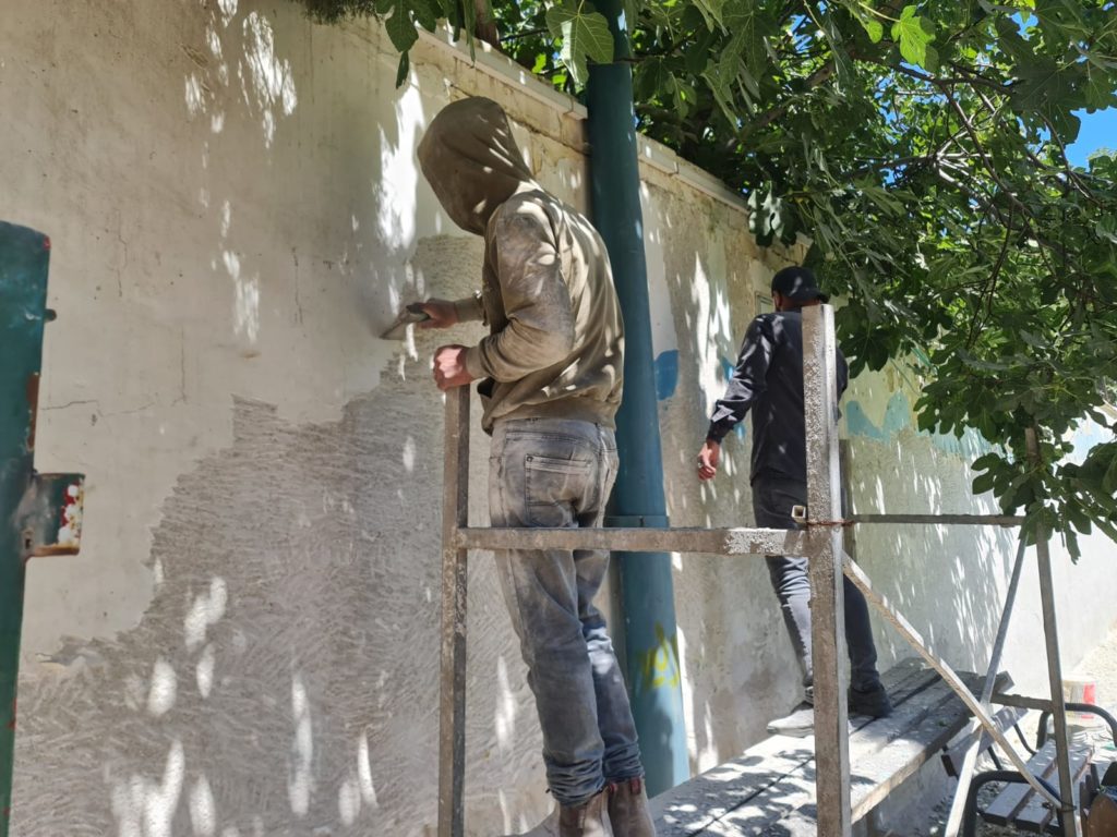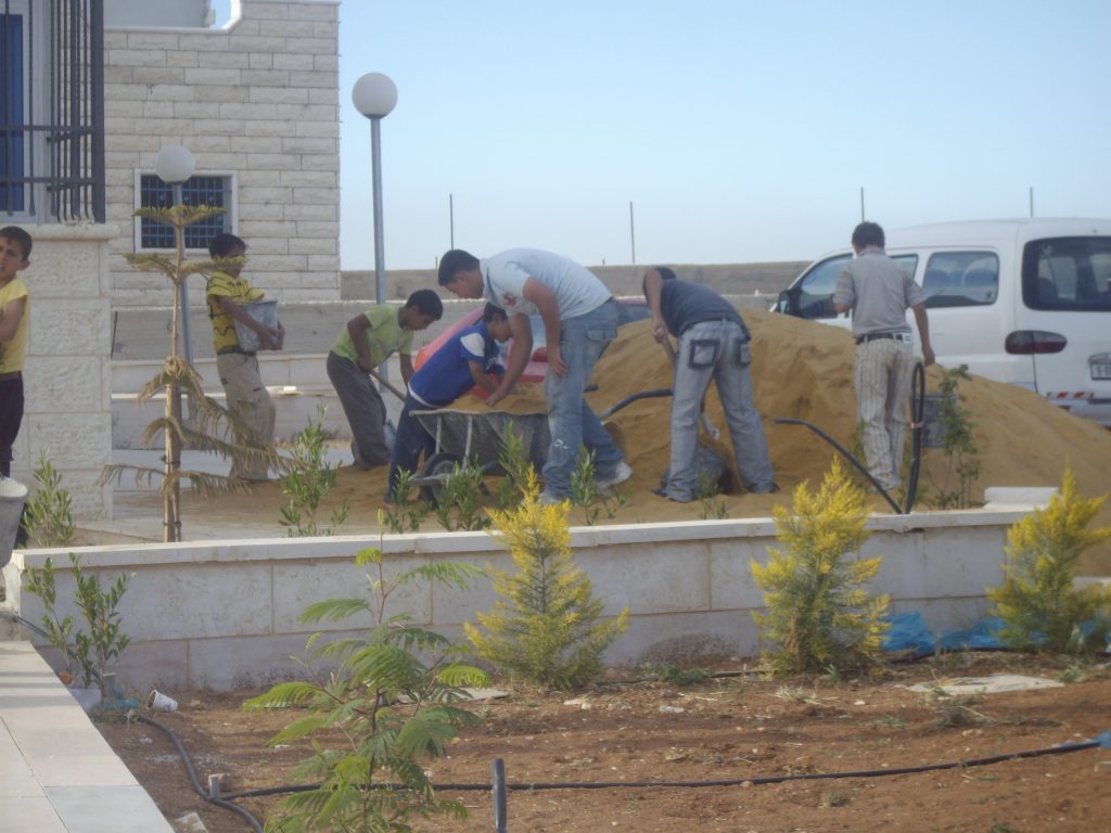 Beit Fajjar is an old industrial town outside of Bethlehem. It is the home to many rock quarries and used to be a very lucrative town that imported much of its stone to be used by marble masons in Italy. With the current restriction of movement within Palestine, most of the quarries are closed and the town has lost its main source of income. The donated municipality building is also the site of a disabled school. The playground/community space is behind this building and will serve the children of the disabled school as well as the town of Beit Fajjar.